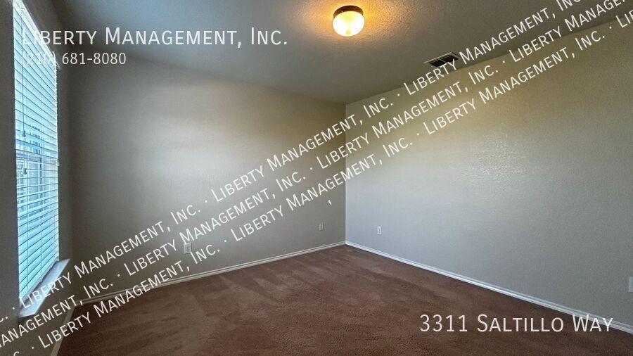 Spacious 4-bedroom, 2.5-bath home. The front room can be used as a formal dining area or an office. The island kitchen features a refrigerator, range, dishwasher, and microwave. Upstairs, a large loft provides a second living area. The primary bedroom is located downstairs, with an en suite bathroom that includes a separate tub and shower, as well as a walk-in closet. The fenced backyard offers a covered patio and privacy fencing.** Small Dogs Only, No Cats. Note: HOA Rule-NO Street Parking Allowed**