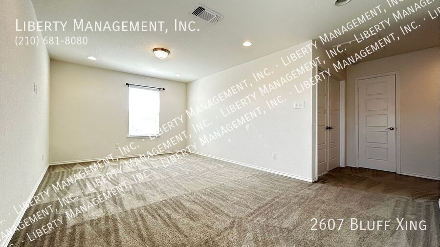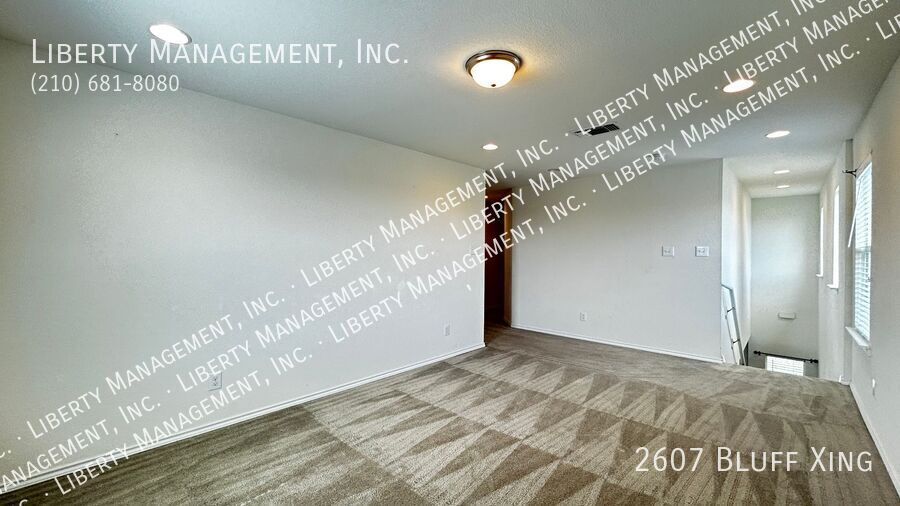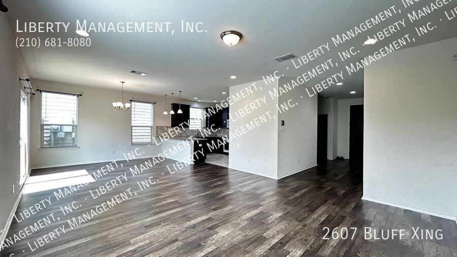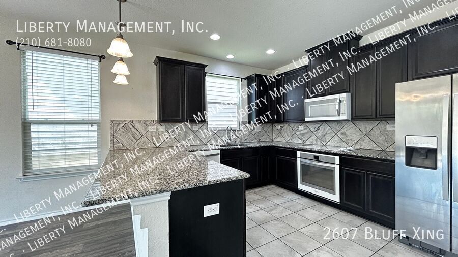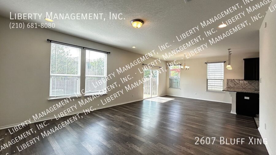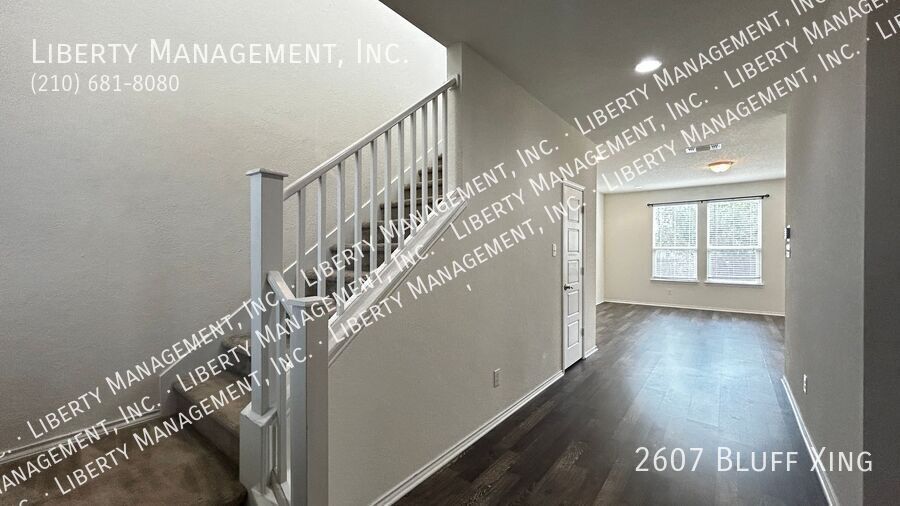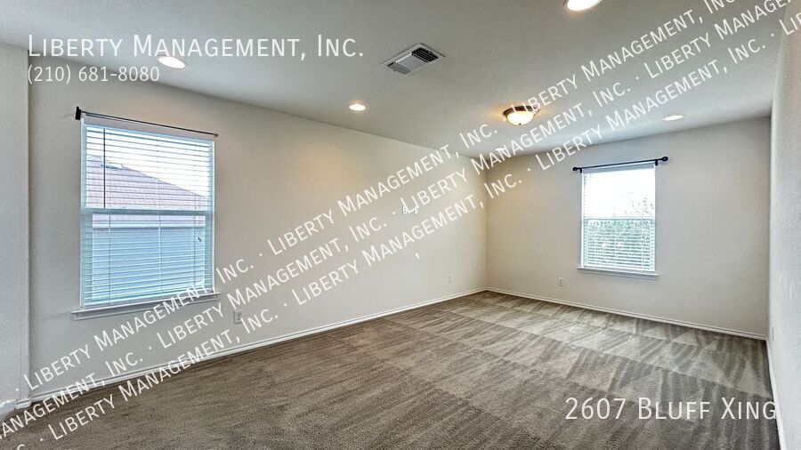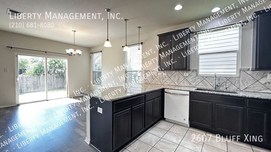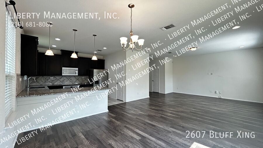$1650 for the 1st 6 months, then $1750 per month.* Beautiful 3 bedroom 2.5 bath home with SOLAR PANELS!!!! Save on electricity bills!! This beauty features an open floor plan with luxury vinyl plank flooring downstairs, as well as a downstairs Flex/ Office space. You will be very happy in your modern kitchen with granite countertops and lots of counter space. Once upstairs you will find a large 2nd living area(loft) as well as the primary suite and two other spacious bedrooms. The primary suite is especially spacious and welcoming with lots of natural light and an en suite with large walk in closet. This lovely home is within walking distance to the neighborhood park/ playground and less than 5 minutes to IH-10. Also an easy commute to Ft. Sam Houston, within 20 minutes, and only 15 minutes to downtown San Antonio.
