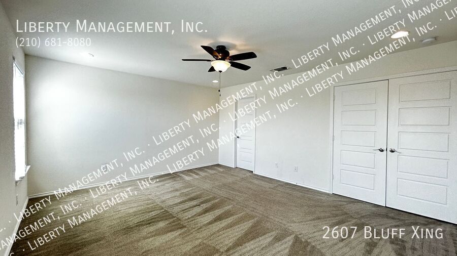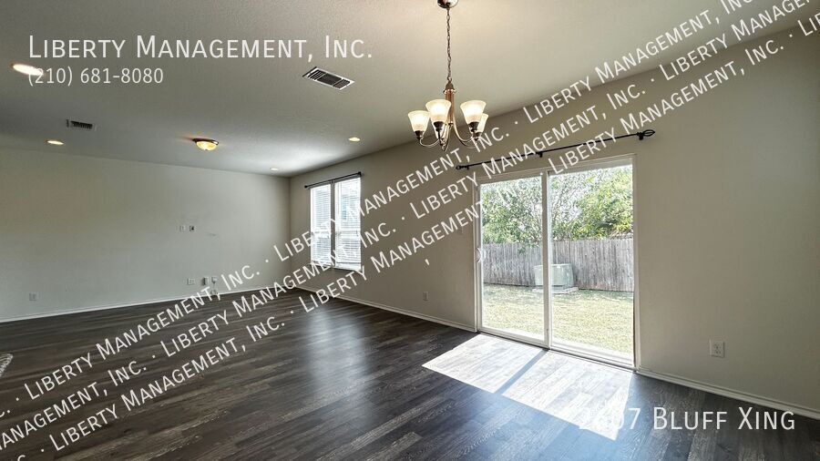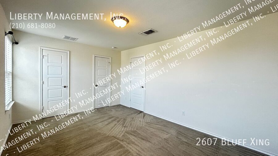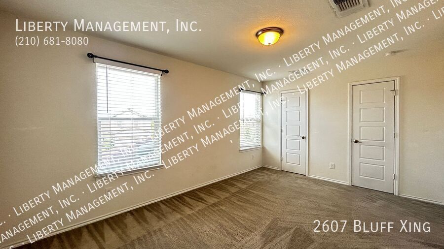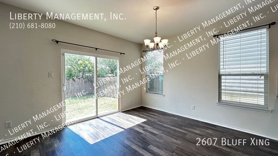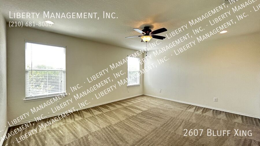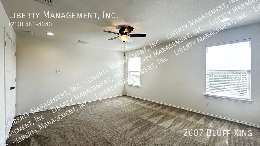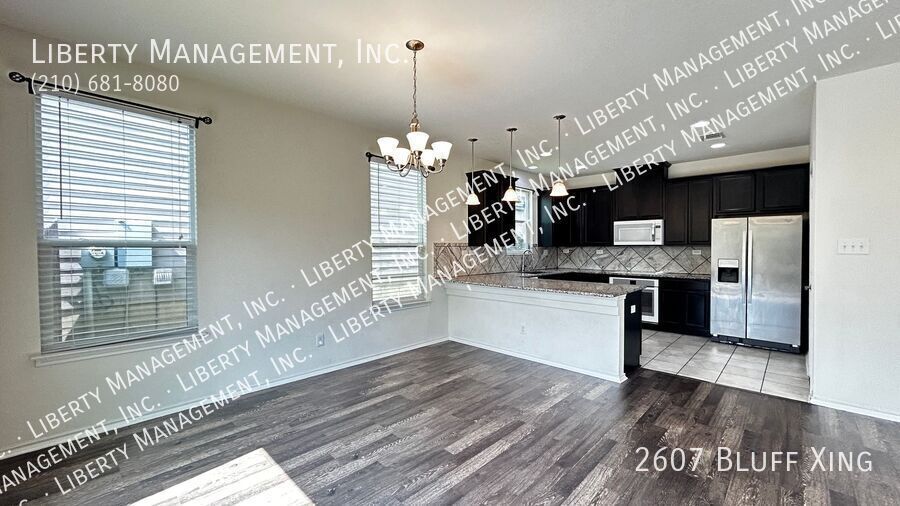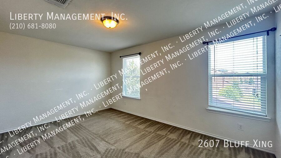 $1650 for the 1st 6 months, then $1750 per month.* Beautiful 3 bedroom 2.5 bath home with SOLAR PANELS!!!! Save on electricity bills!! This beauty features an open floor plan with luxury vinyl plank flooring downstairs, as well as a downstairs Flex/ Office space. You will be very happy in your modern kitchen with granite countertops and lots of counter space. Once upstairs you will find a large 2nd living area(loft) as well as the primary suite and two other spacious bedrooms. The primary suite is especially spacious and welcoming with lots of natural light and an en suite with large walk in closet. This lovely home is within walking distance to the neighborhood park/ playground and less than 5 minutes to IH-10. Also an easy commute to Ft. Sam Houston, within 20 minutes, and only 15 minutes to downtown San Antonio.