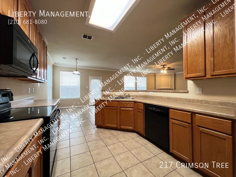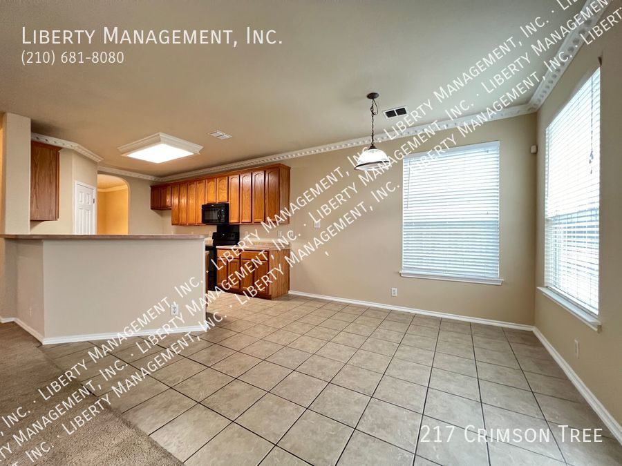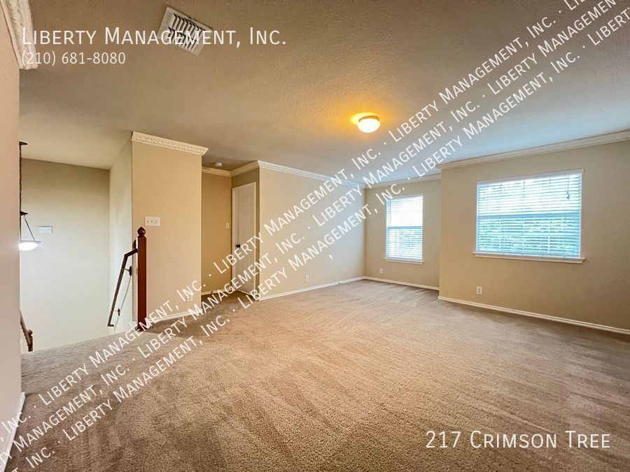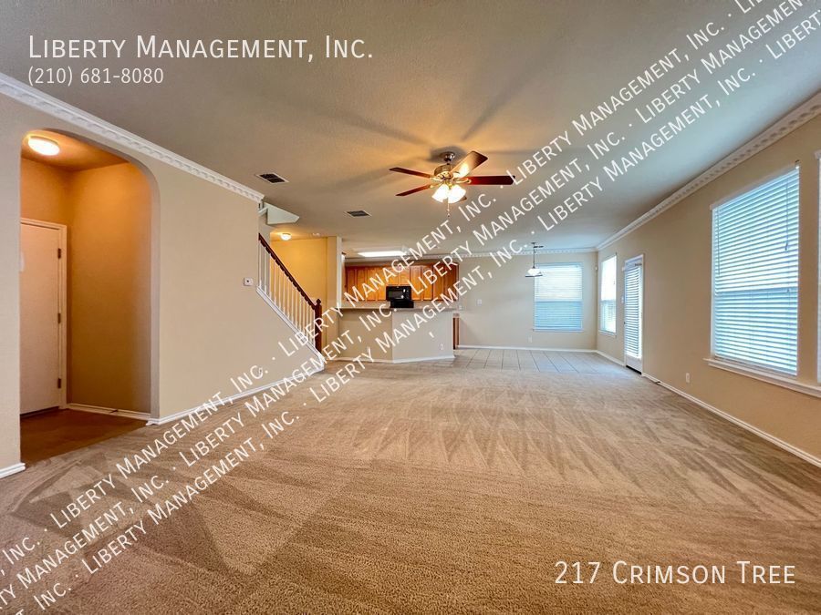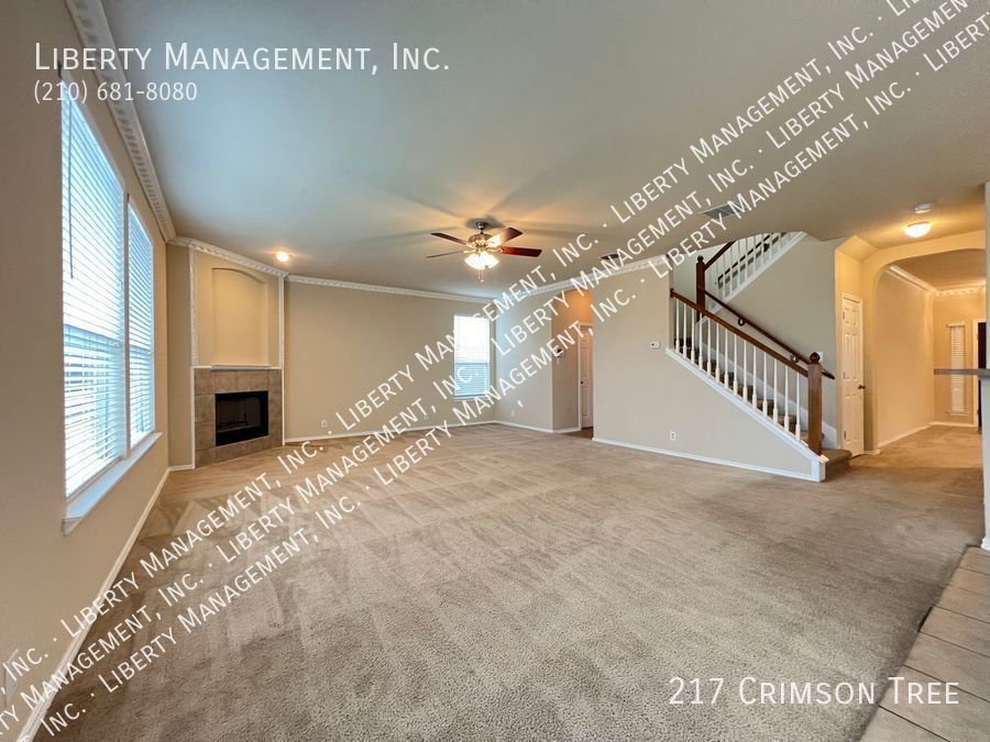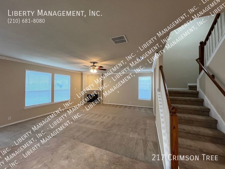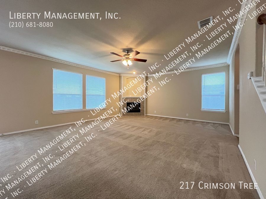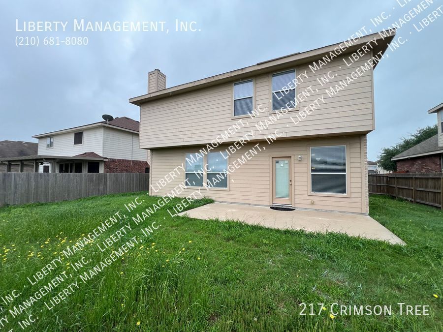 Spacious home in Falcon Ridge! This 2 Story, 2696 sq ft Home features neutral colors & blinds throughout. The floor plan encompasses 4 spacious bedrooms, 2.5 baths living/dining areas, spacious kitchen w/ a breakfast bar & plenty of cabinet space. It's expansive family room w/ wood burning fireplace opens up to a spacious rear backyard w/ privacy fence. Huge primary bedroom comes w/ dual closets & separate tub/shower. This home has quick access to I-35/410 freeway. Less than 6.5 miles to Randolph AFB & mins to restaurants, shopping, and entertainment!