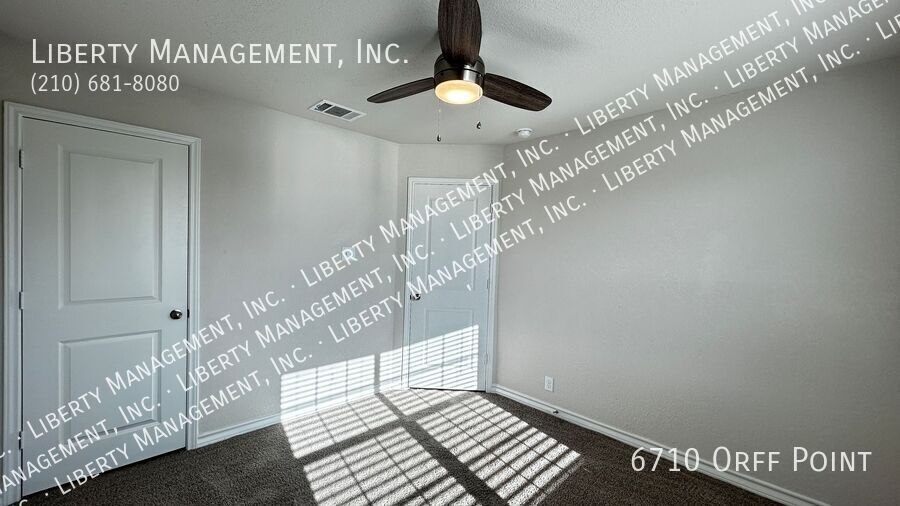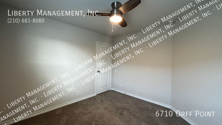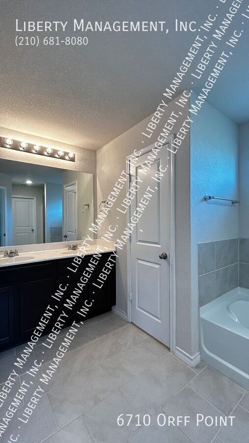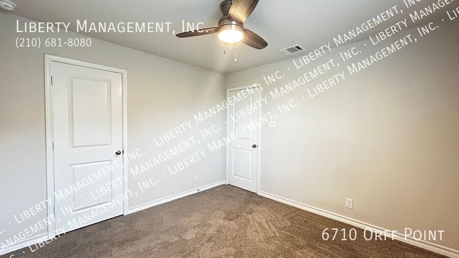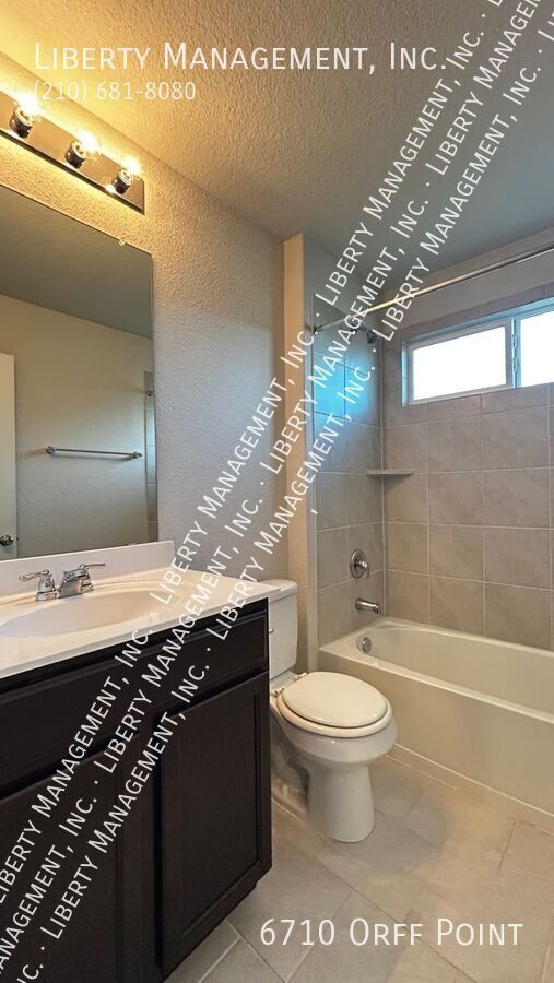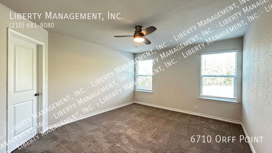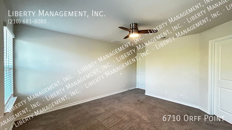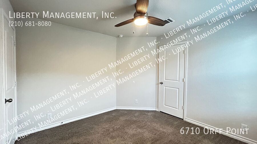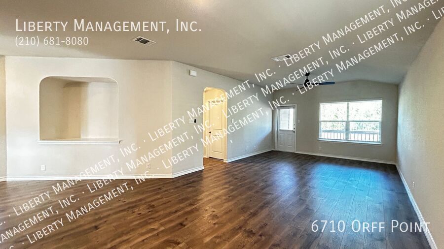 MOVE IN SPECIAL: 1 MONTH FREE* Welcome to your dream rental home near SeaWorld and Lackland Airforce Base! This stunning 4-bedroom, 2-bathroom single story home is located on a greenbelt in the Whisper Falls subdivision, a master planned community conveniently located off Highway 90. Experience the ultimate in resort-style living with amenities such as a pool, clubhouse, cabanas, playground, basketball court, and splash pads for kids. With major shopping and restaurants just a stone's throw away, you'll have everything you need right at your fingertips. The kitchen is an entertainer's delight, boasting ample cabinet space, granite counters, a huge island bar, stainless steel Whirlpool appliances, gas cooking, and LED canned recessed lights. The open floor plan features an oversized island bar overlooking the dining area and living room, making it perfect for hosting family and friends. Relax in the privacy of your spacious primary bedroom retreat, tucked away at the back of the house for ultimate tranquility. Enjoy a separate shower stall and a huge garden tub, a walk-in closet, and dual vanities. Every bedroom and the living room also has a ceiling fan for added comfort. Don't miss out on the chance to make this amazing rental home your own. *Owner will be adding a refrigerator with an approved applicant*
