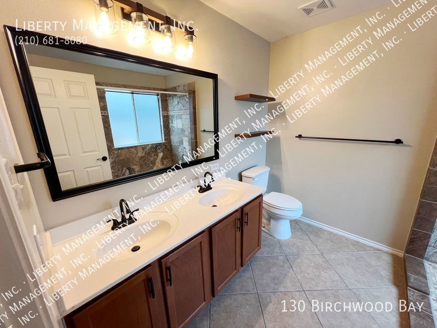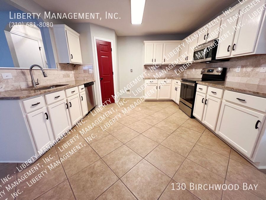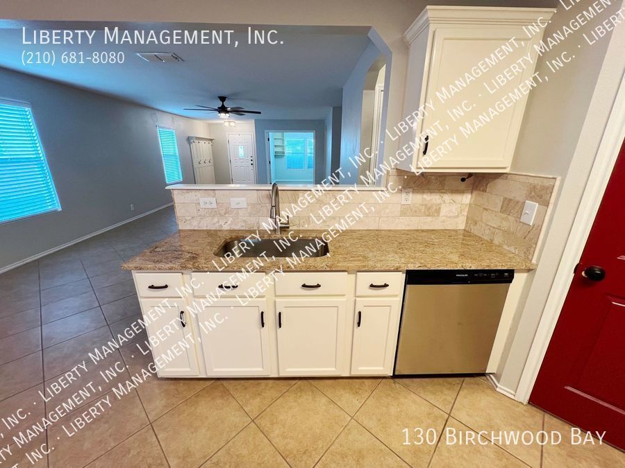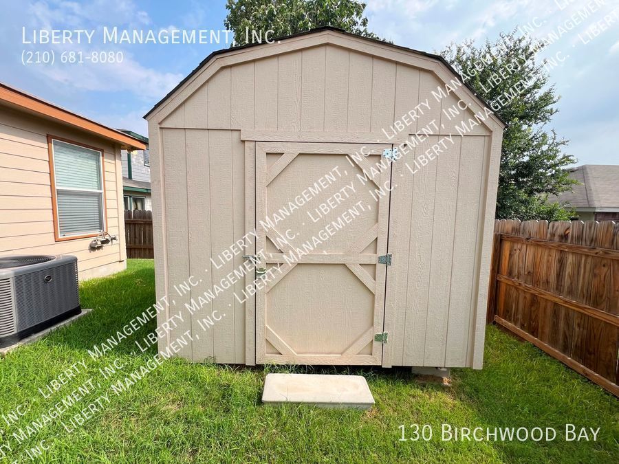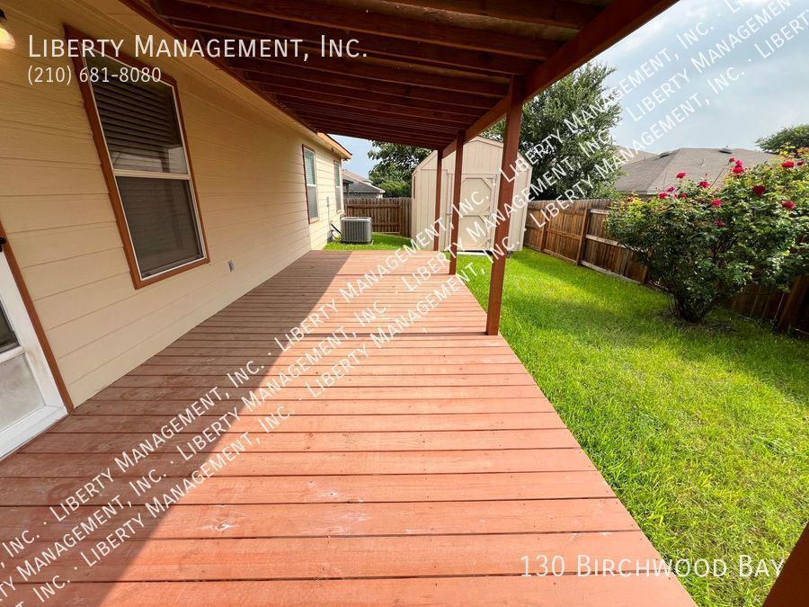 Located in the Villages of Westcreek near SeaWorld is this Single Story 1744 sq ft home that features 3 Bedrooms, 2 Bath, and Study with French doors. All Tile in the main areas, Carpets only in the bedrooms. Large Living Room. Kitchen with granite counters, Farmhouse Sink, Stove, Microwave, and Dishwasher. Primary bedroom with ceiling fan and walk-in closet. Primary bathroom with large shower, and dual sinks. Fenced yard with Large covered deck for entertaining, Large 10x10 ft Shed with 9 ft ceiling. Conveniently located in west San Antonio, just off Loop 1604, with quick access to Northside schools. HOA Amenities include Two pools, a clubhouse, jogging trails, children's playgrounds, sports courts for tennis, basketball, soccer field, and baseball field. Close to Lackland AFB, great dining, shopping, entertainment, and major employers like Citibank, Microsoft, Wells Fargo, Chase, and major hospitals: Christus Santa Rosa and Baptist Hospital.