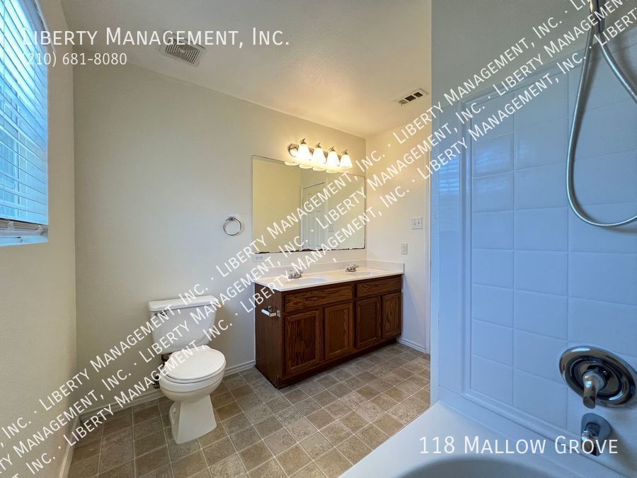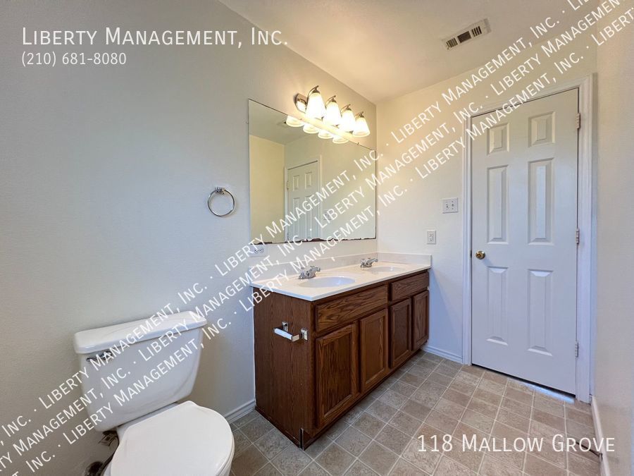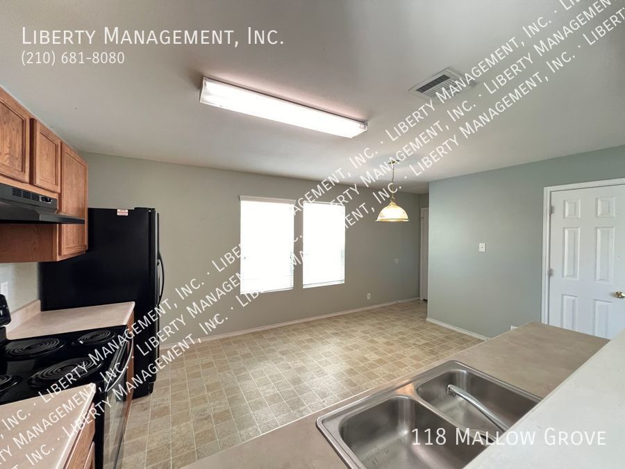 3 bed, 2.5 bath 1625 Sq Ft home. Open kitchen with eat-in area. 12x8ft patio perfect for BBQs, fenced yard. Master bedroom, split from other 2 bedrooms for privacy, w/ full bath, dual vanities, shower/garden tub combo, walk-in closet. Loft/Game Room. Northside Elementary and Middle schools just around the corner. Near Lackland, Sea World, 151, 1604. Fridge, Washer, and Dryer will be removed and are NOT included.