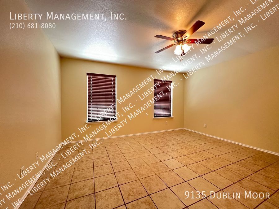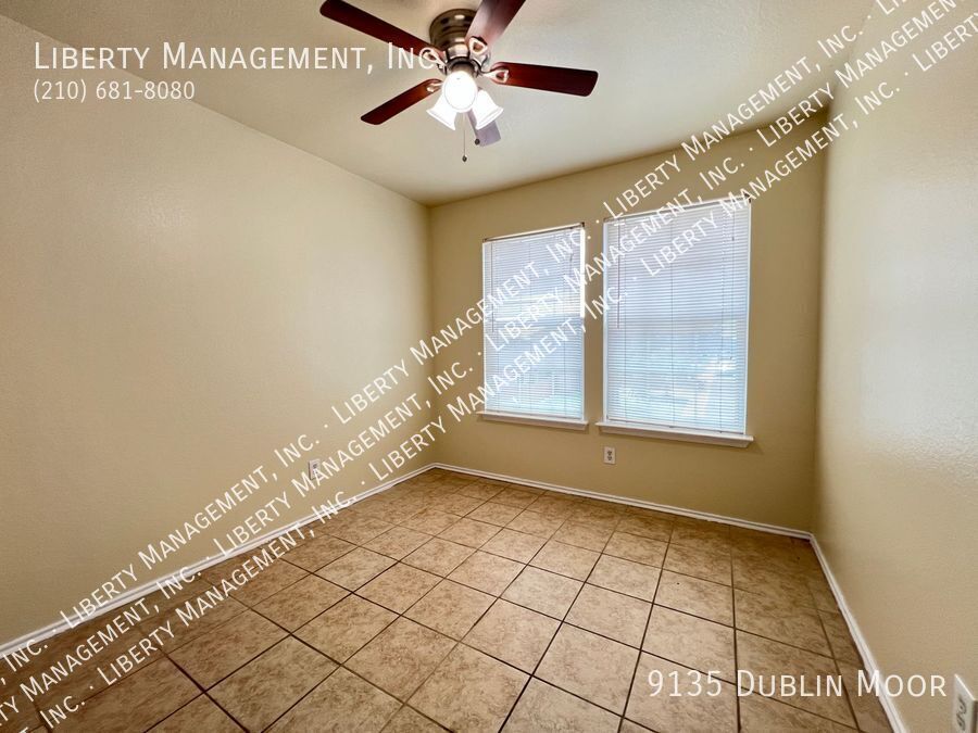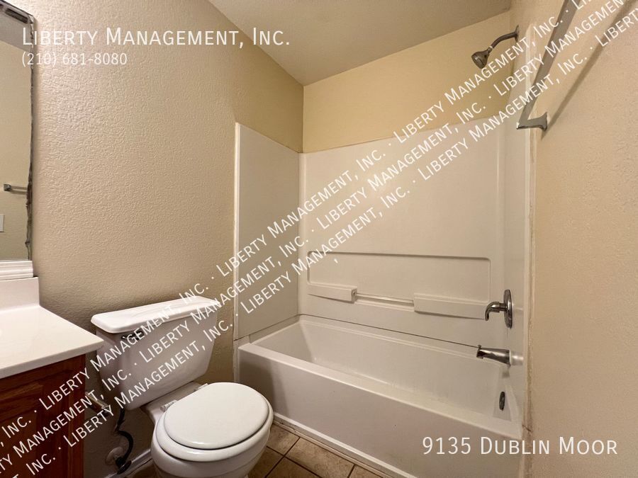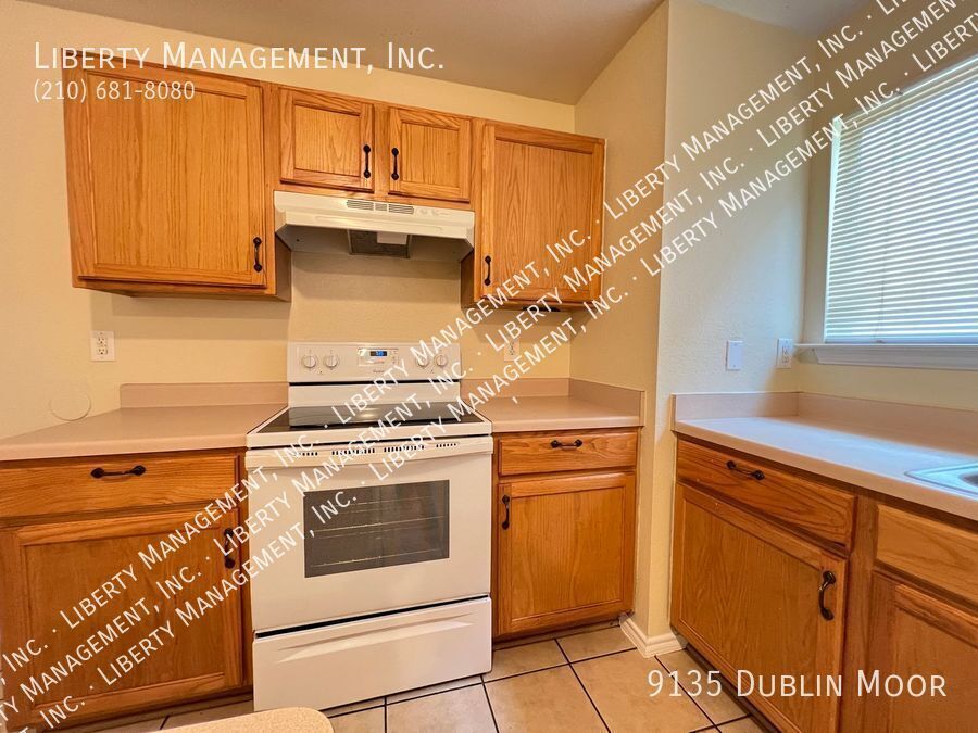 *** 1 WEEK FREE *** Charming 4 Bed/2.5 Bath home features 1644 sq ft generous living space. Entry way opens up to a Large Living Room. Island, Flat-top Stove,Dishwasher, & Breakfast Nook highlights the functional kitchen. Master Bedroom comes w/Ceiling Fan,Walk-in Closet, & Shower/Tub Combo w/Dual Sinks. Greenbelt,Huge Covered Patio Area, & yard adorns the backyard space. Quick access to 1604 & just minutes to UTSA, Six Flags, & La Cantera. No carpets, house has tiles throughout.
