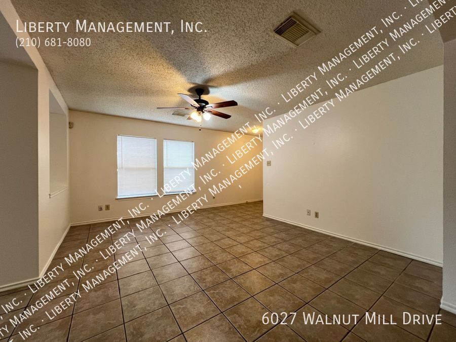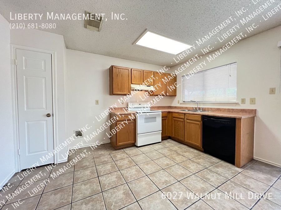 MOVE IN SPECIAL: 2 WEEKS FREE* Single-story home with 3 bedrooms and 2 bathrooms. The home features no carpet throughout, an eat-in kitchen with a flat-top stove, dishwasher, and a primary bedroom with a ceiling fan, walk-in closet, and full bath. Home includes a two-car garage with garage door opener. Conveniently located near Fort Sam Houston, Randolph AFB, I-35, and I-10.
