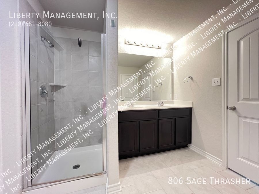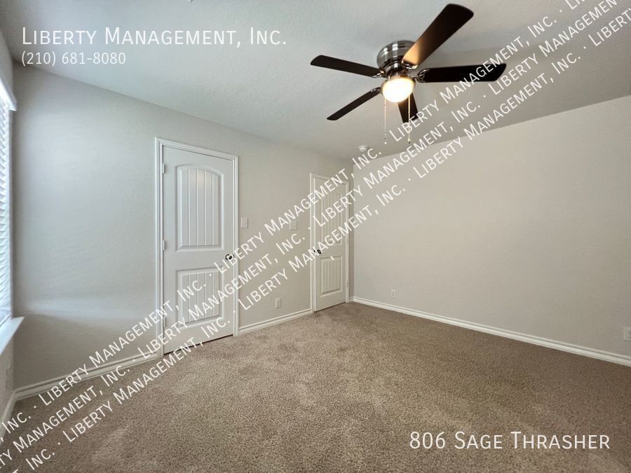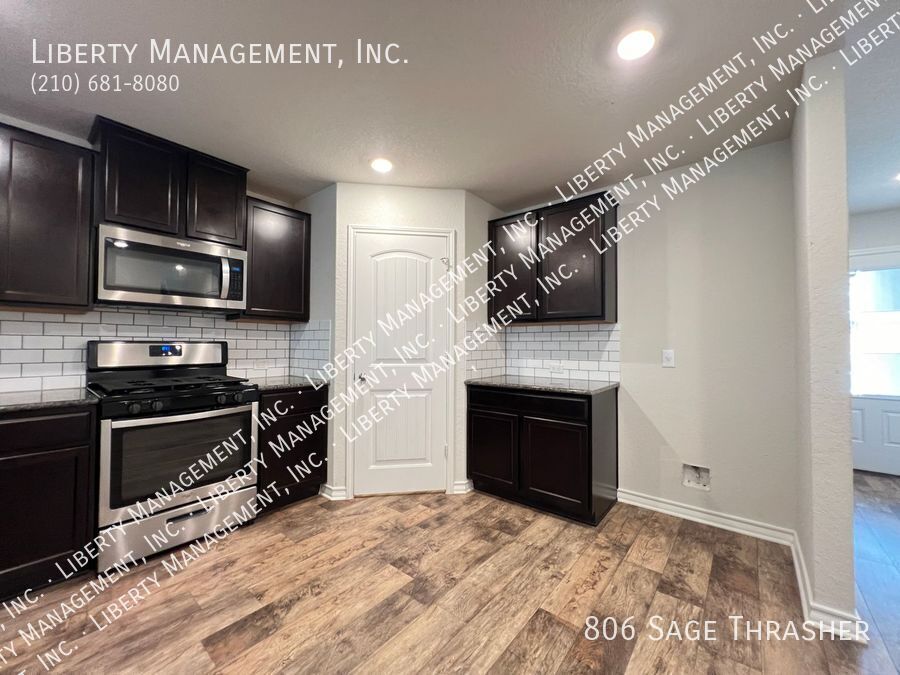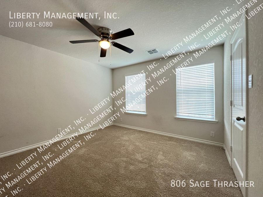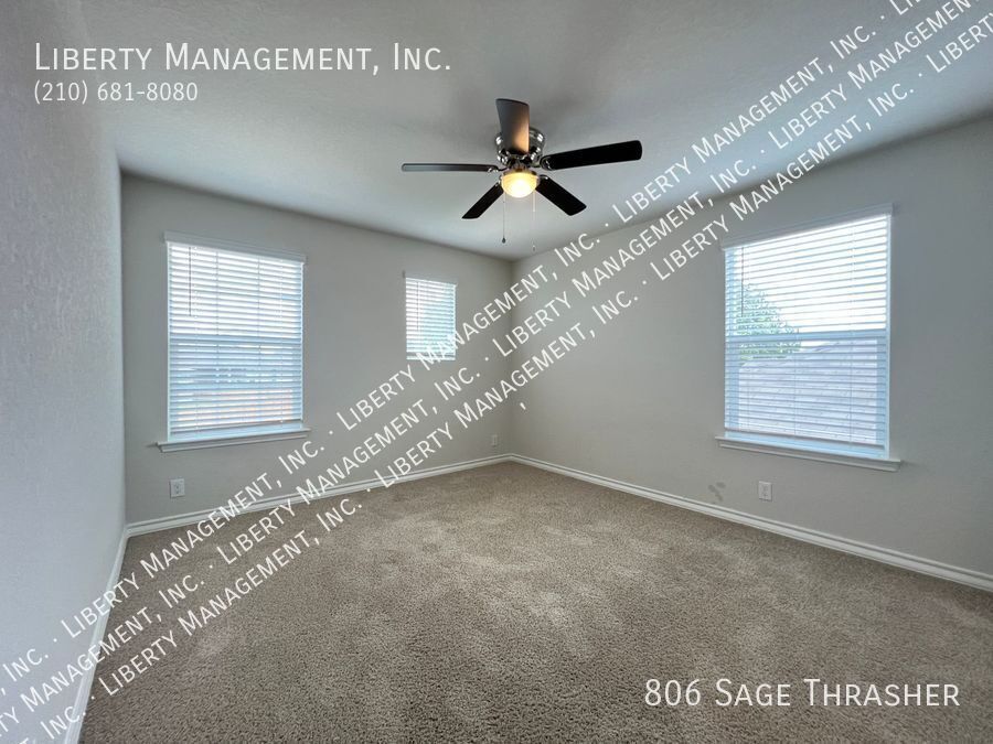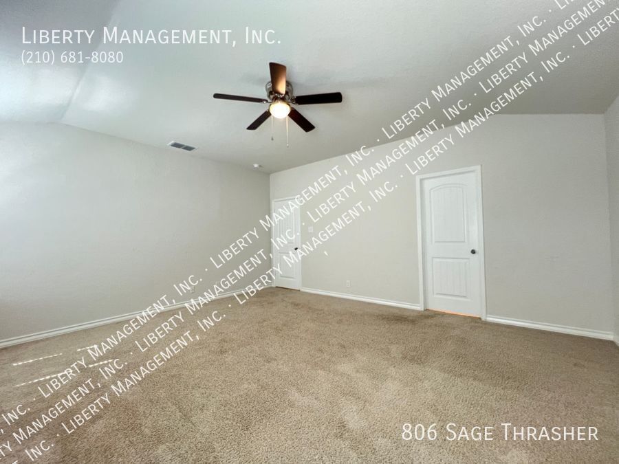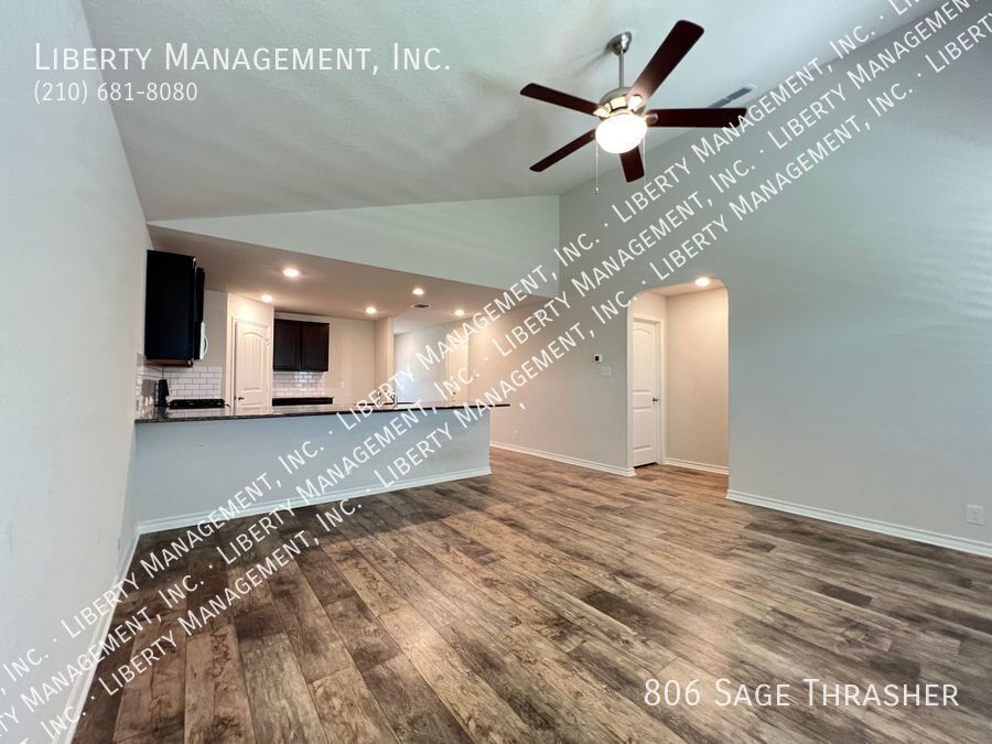 Beautiful 4 Bedroom, 2.5 Bath Home on a Greenbelt featuring a formal dining, and a huge game room upstairs. This gem's floor plan offers an inviting entry way that leads to formal dining room and kitchen with island bar, stainless steel kitchen appliances, granite counters, recessed lights, plenty of cabinet space, & eat-in area. Home has neutral colors, blinds, and ceiling fans throughout. Primary comes come with ceiling fan, walk in closet, separate tub/shower stall , & dual vanity. This home's deck & good-sized backyard is an entertainer's delight. Quick access to 90 & 211. Just minutes to Lackland AFB, SeaWorld, shopping, and restaurants.