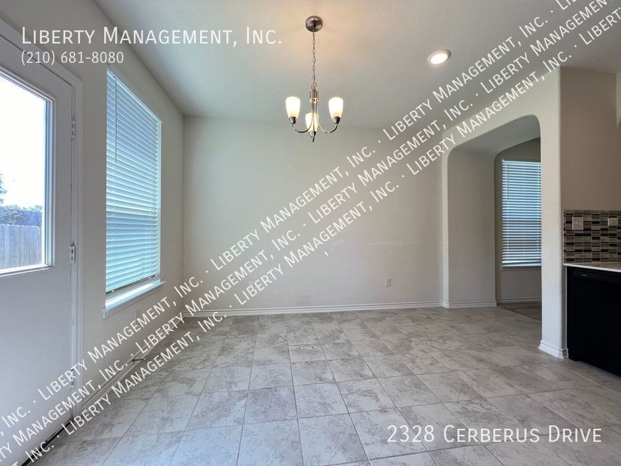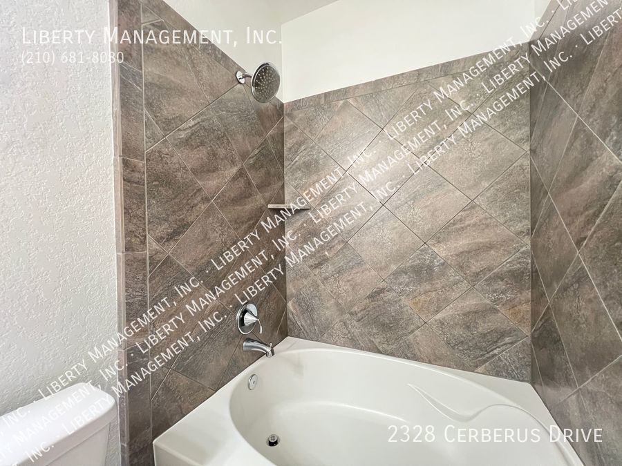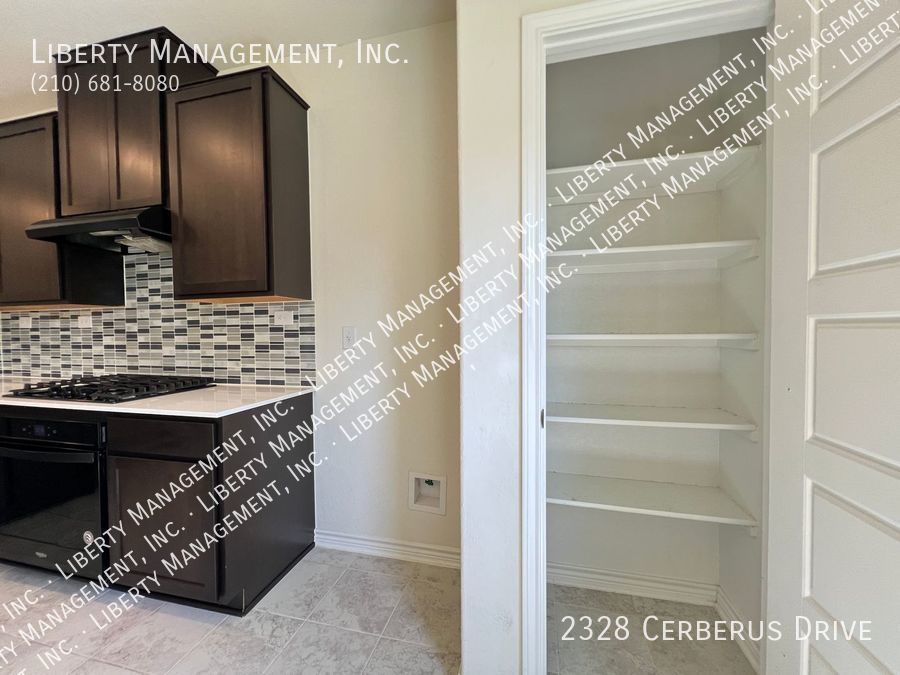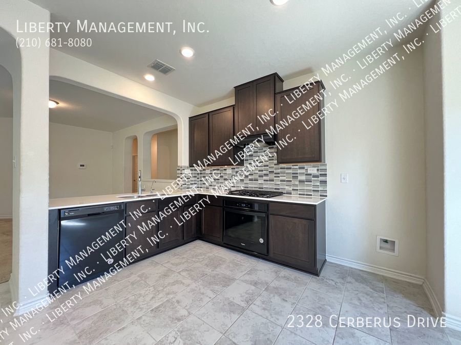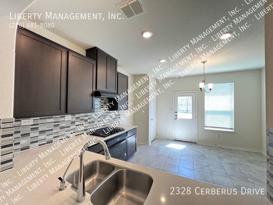 3 Bedrooms and 2 bathrooms on a greenbelt. Ceramic tiles in wet areas and carpets in all bedrooms. This house comes with neutral paint and blinds throughout. Kitchen boasts silestone counters, mosaic tile backsplash, stove, dishwasher, and plenty of cabinets for storage. Masters bedroom has walk in closet, double vanity, and shower/tub combo. Enjoy a restful afternoon at this home's fenced backyard overlooking greenbelt scenery. With quick access to Highway 211, 90 and 1604. Just minutes to Lackland AFB, SeaWorld, restaurants, and shopping area.