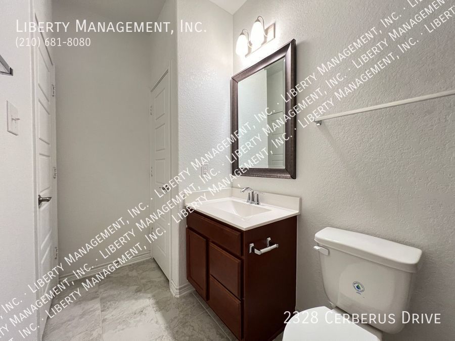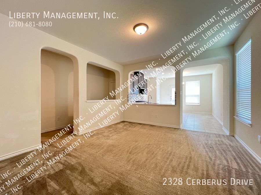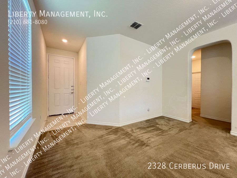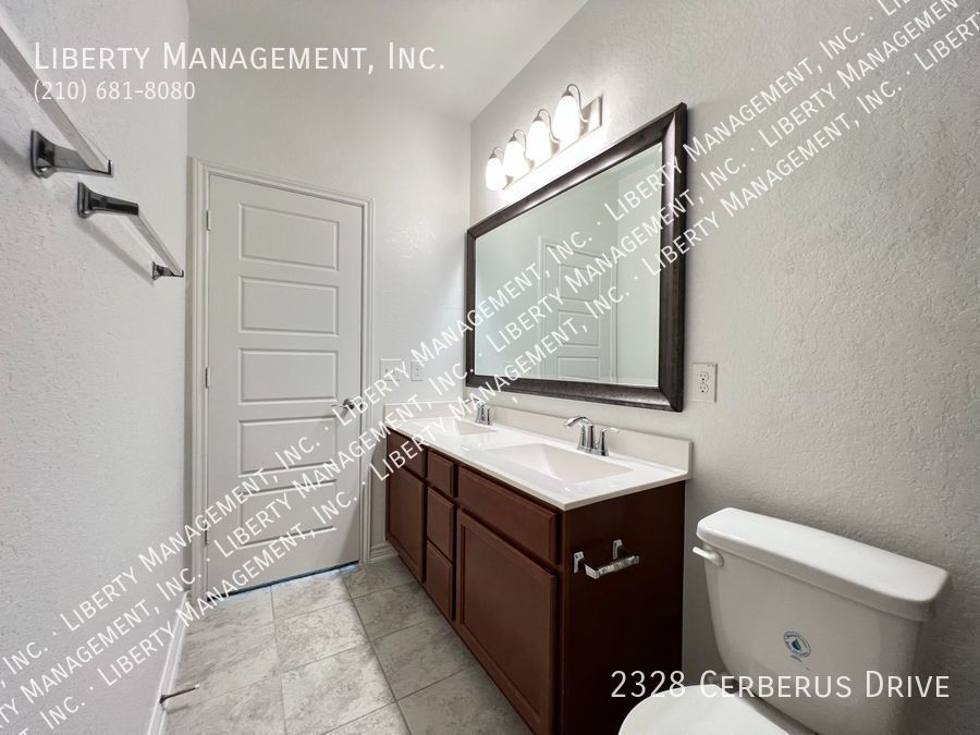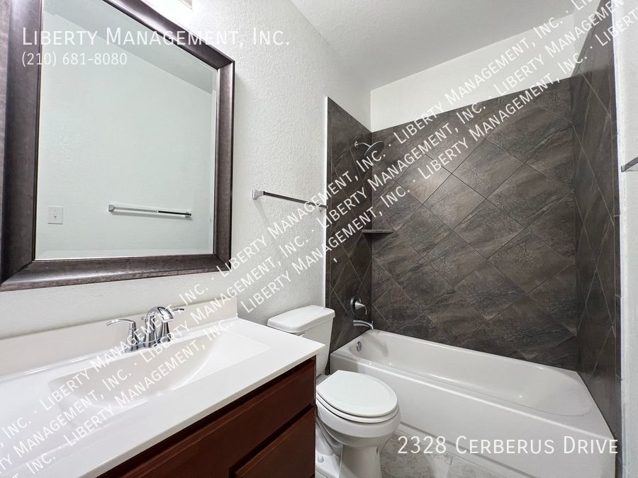 3 Bedrooms and 2 bathrooms on a greenbelt. Ceramic tiles in wet areas and carpets in all bedrooms. This house comes with neutral paint and blinds throughout. Kitchen boasts silestone counters, mosaic tile backsplash, stove, dishwasher, and plenty of cabinets for storage. Masters bedroom has walk in closet, double vanity, and shower/tub combo. Enjoy a restful afternoon at this home's fenced backyard overlooking greenbelt scenery. With quick access to Highway 211, 90 and 1604. Just minutes to Lackland AFB, SeaWorld, restaurants, and shopping area.