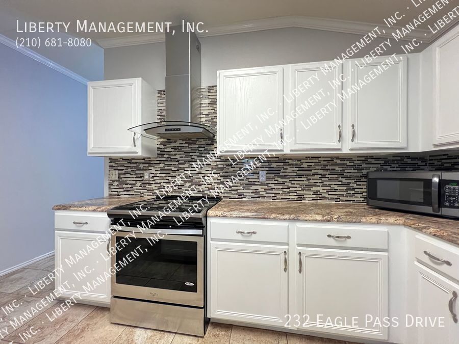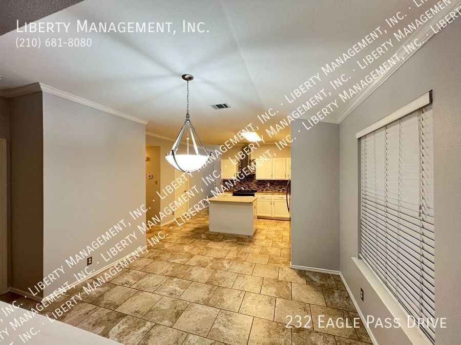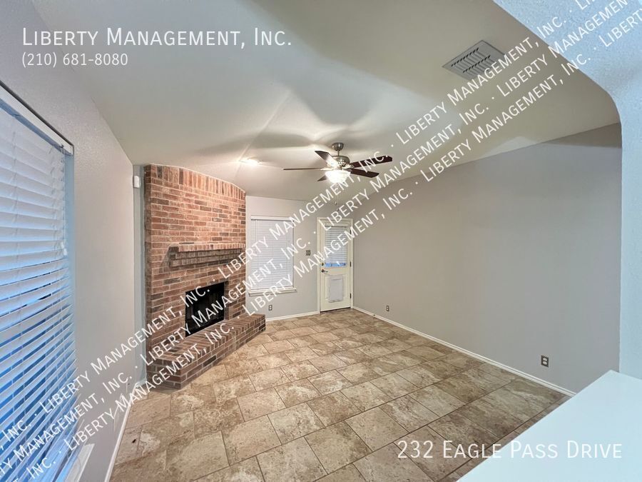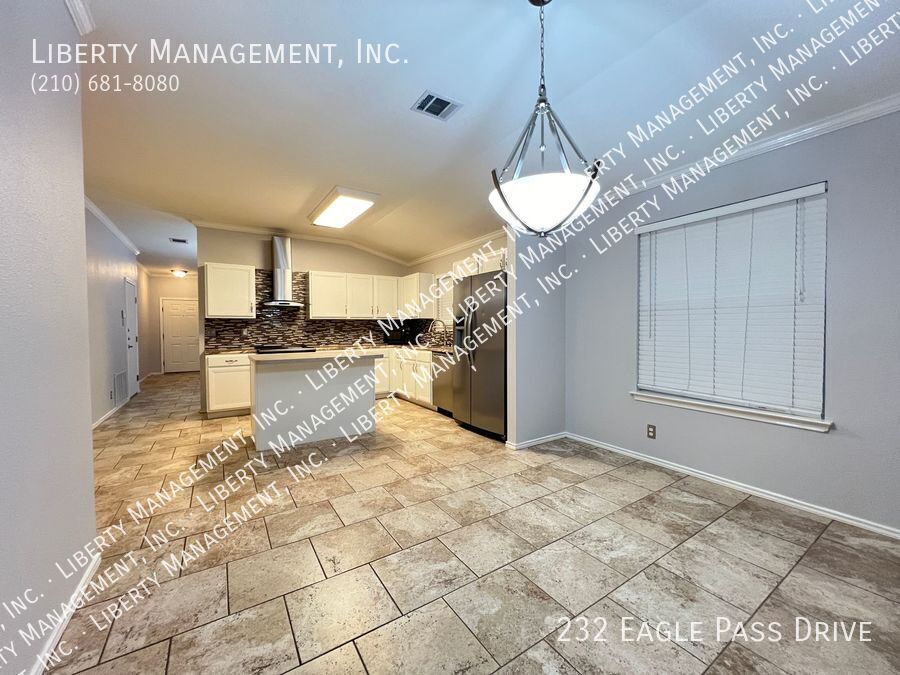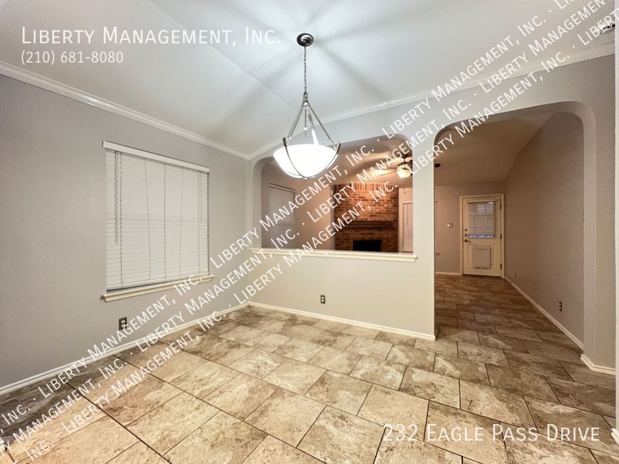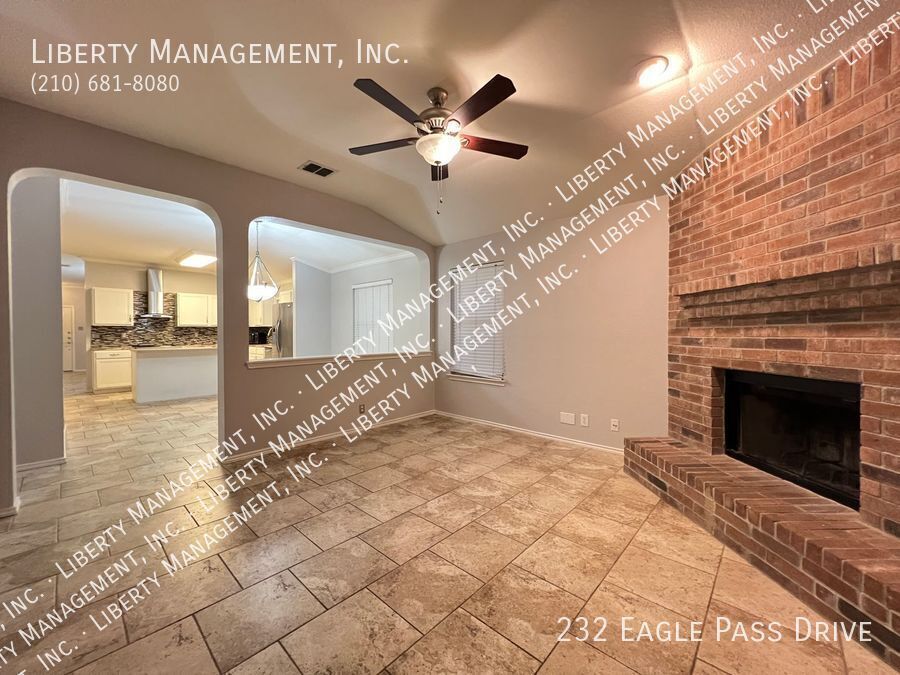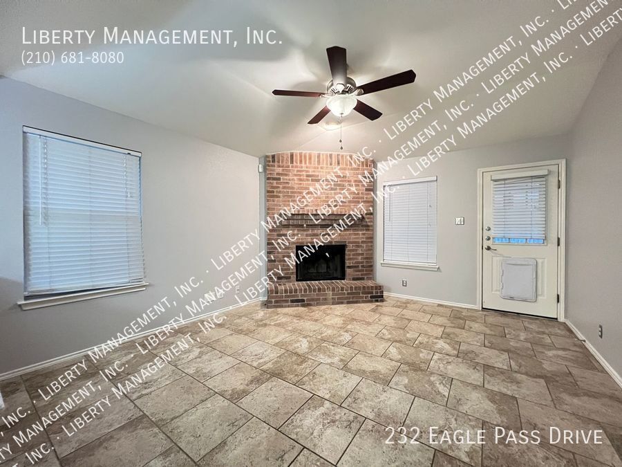 Nestled in the great community of DOVE CROSSING near Schlitterbahn, this single story rental home features 1668 sq. Ft., FRESHLY PAINTED 3 bedrooms, 2 bathrooms, 2-car garage, and a great sized yard perfect for outdoor entertaining. Adorned with neutral color, ceilings fans, blinds, beautiful ceramic tiles and wood laminate, this home will not fail to impress. NO CARPETS!!! Its entry way opens to the formal dining room then an expansive family room adorned with wood burning brick fireplace past it. This gem is set up for entertainment with its incredible spacious kitchen, center island with built in seating area, Stainless Steel appliances, beautiful mosaic back splash, and plenty of cabinets for storage. Tucked into the corner of the house for some privacy, the Master bedroom is truly a retreat space with its gorgeous walk-in shower, oversized garden tub, vanity, and a large walk-in closet. The backyard space has covered patio perfect for your weekend and holiday entertaining. Just minutes to Buccees and Schiltterbahn. With Quick access to I-35