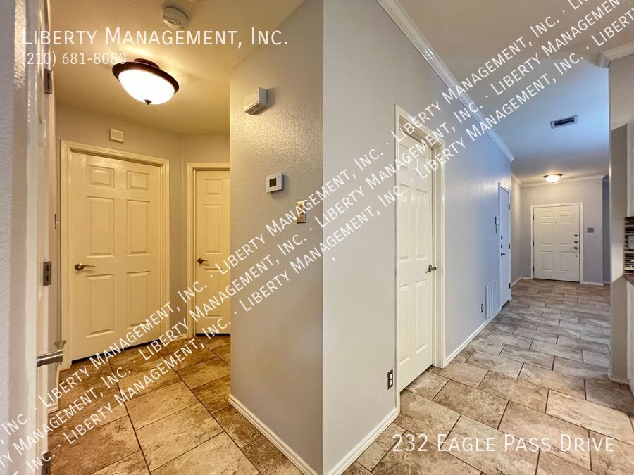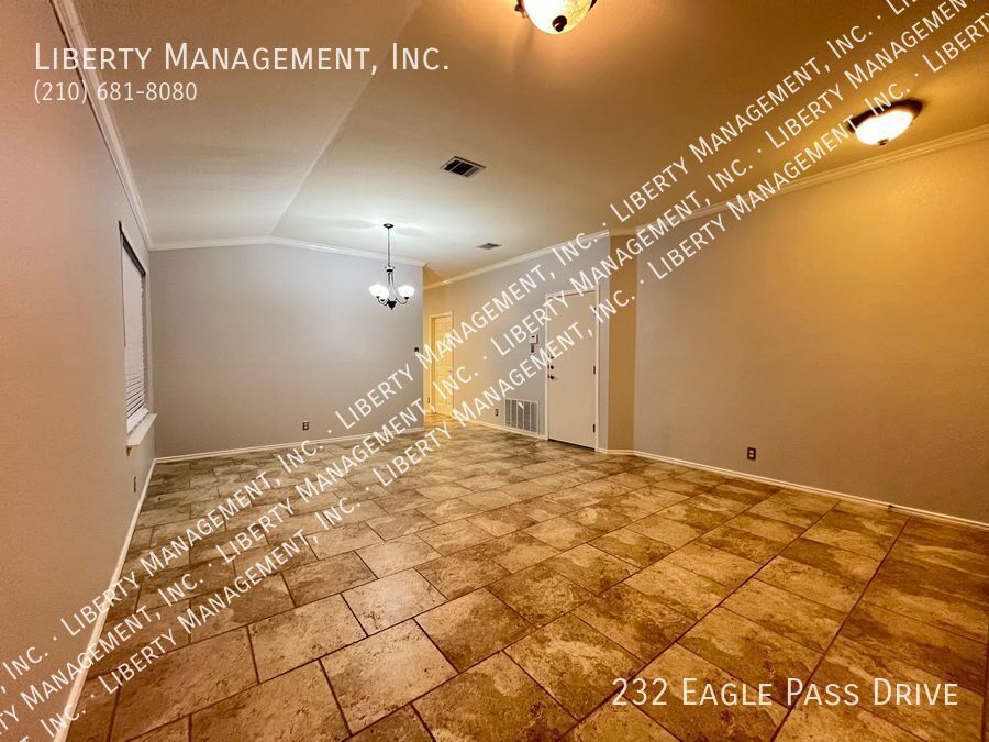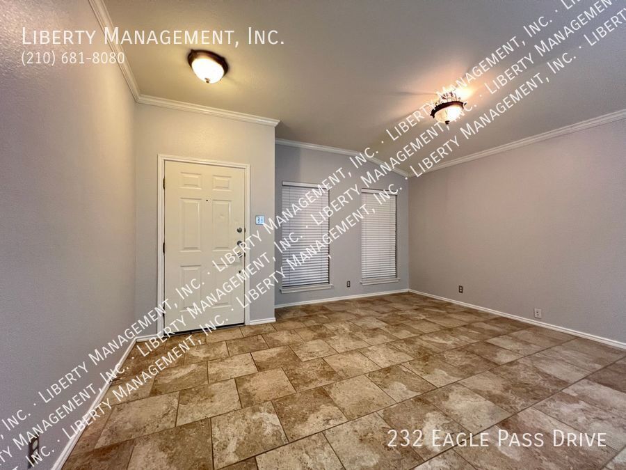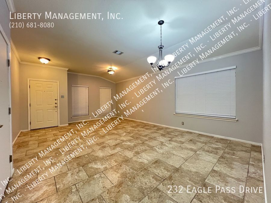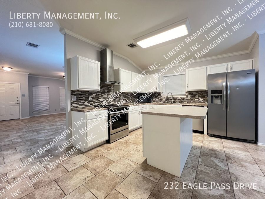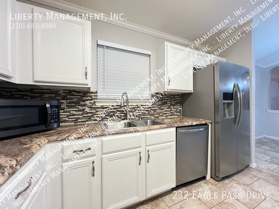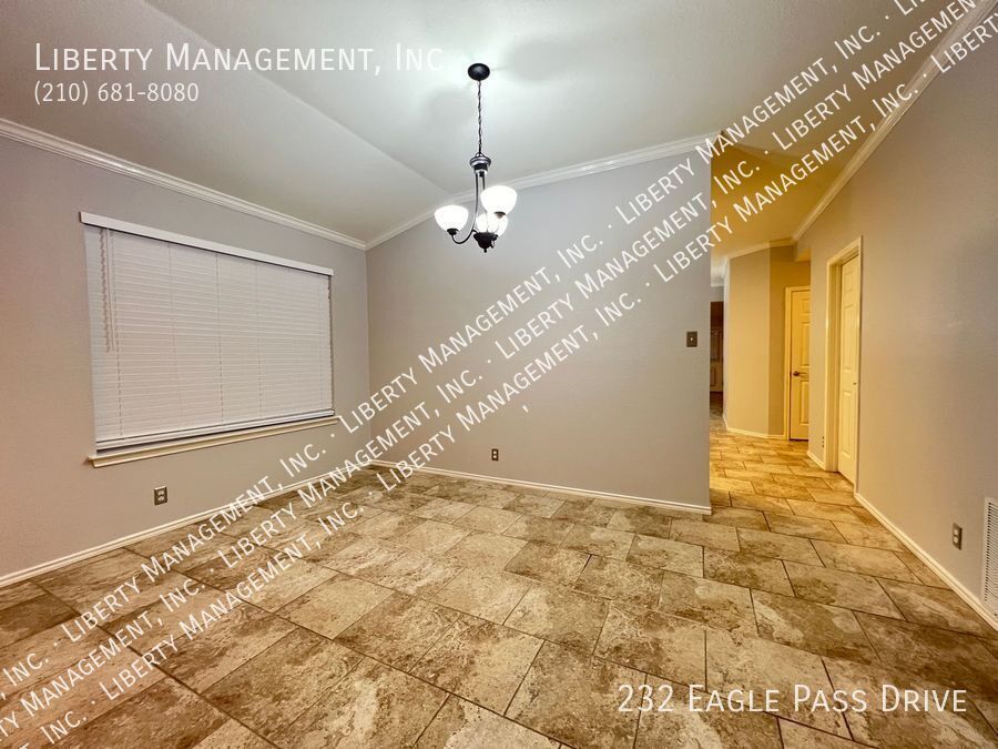 Nestled in the great community of DOVE CROSSING near Schlitterbahn, this single story rental home features 1668 sq. Ft., FRESHLY PAINTED 3 bedrooms, 2 bathrooms, 2-car garage, and a great sized yard perfect for outdoor entertaining. Adorned with neutral color, ceilings fans, blinds, beautiful ceramic tiles and wood laminate, this home will not fail to impress. NO CARPETS!!! Its entry way opens to the formal dining room then an expansive family room adorned with wood burning brick fireplace past it. This gem is set up for entertainment with its incredible spacious kitchen, center island with built in seating area, Stainless Steel appliances, beautiful mosaic back splash, and plenty of cabinets for storage. Tucked into the corner of the house for some privacy, the Master bedroom is truly a retreat space with its gorgeous walk-in shower, oversized garden tub, vanity, and a large walk-in closet. The backyard space has covered patio perfect for your weekend and holiday entertaining. Just minutes to Buccees and Schiltterbahn. With Quick access to I-35