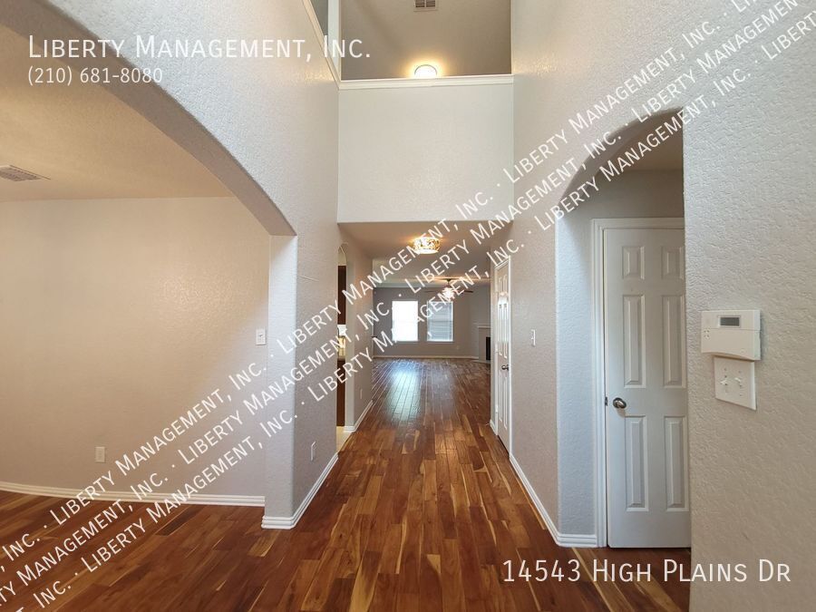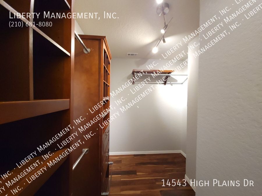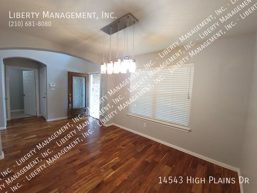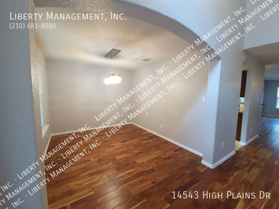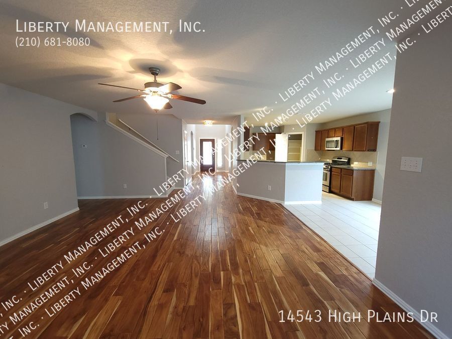 This beauty features 4 bedrooms with 3.5 baths, high ceilings, and gorgeous wood flooring throughout the home. NO CARPET! In the kitchen, you will find granite countertops, stainless steel appliances, and a walk in pantry. There is also a dining room and a loft. The primary suite is downstairs and has its own en suite including a large walk in closet with beautiful custom shelving. The other 3 bedrooms are upstairs. Ceiling fans in all rooms! This one is located in the wonderful neighborhood of Kalllison Ranch. Neighborhood amenities include 2 pools, 2 playgrounds, and a dog park. Elementary school and middle school are both in walking distance. (NISD schools) There are also lots of nearby shopping and restaurants in popular Alamo ranch. This lovely home is a must see!
