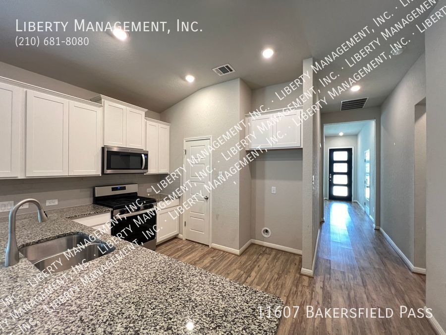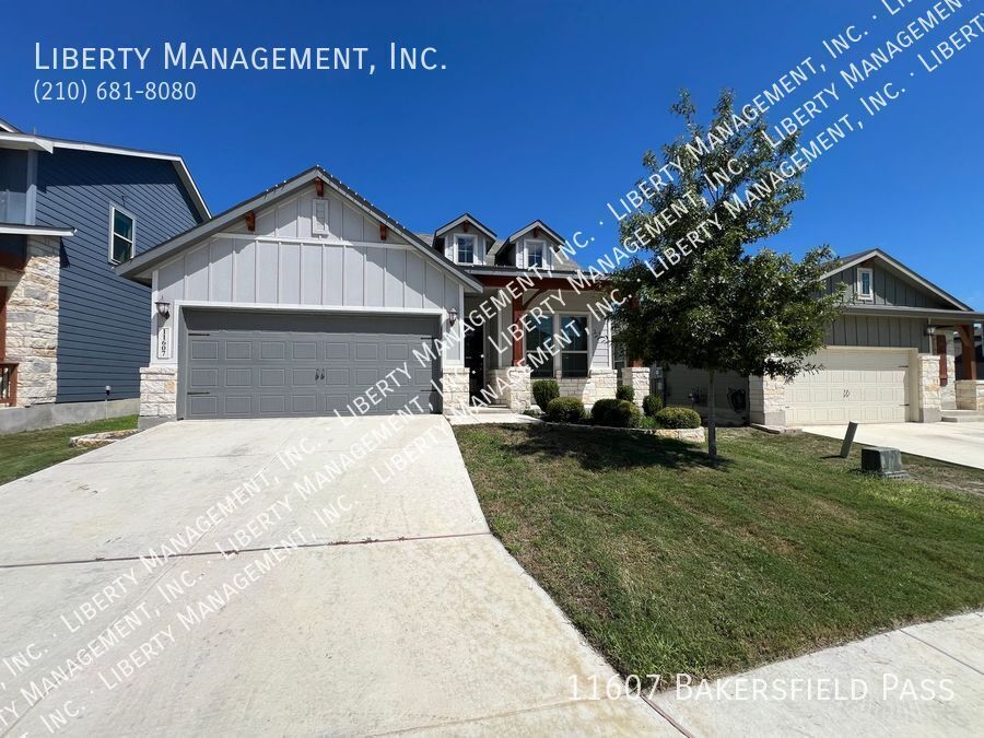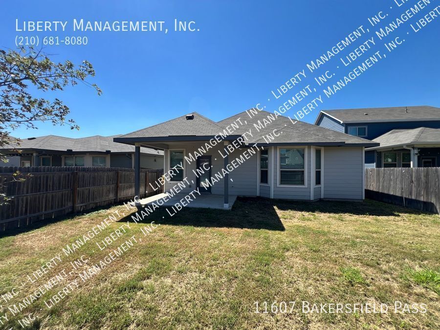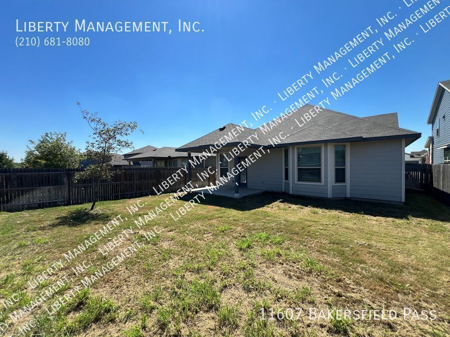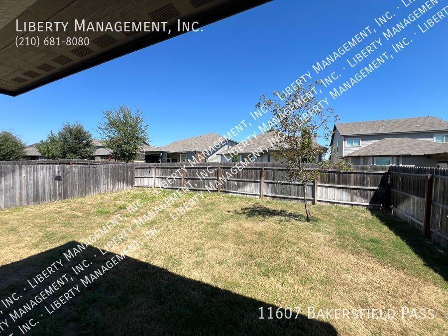 Built in 2019, this beautiful turnkey home near Lackland AFB comes with 10 ft ceilings, generous living space and large backyard great for entertaining. This single story stunning home features 1853 sq ft living space, 3 bedrooms, 2 bathrooms, and vinyl planks throughout except in bedrooms. Its inviting entry way opens to its gorgeous living room/dining room combo. The home's gourmet style kitchen boasts stainless steel appliances, granite counters, recessed lights, white cabinetry, and island bar with built in seating. The grand master suite is nestled in the corner of the home for optimum privacy. It comes with walk in closet, dual vanities, and oversized tub/walk in shower. Outdoor entertaining is a breeze with its expansive backyard, covered patio, and fenced yard. HOA amenities include pool, playground, and park. With quick access to 1604, 211, and 90. Close to shopping and restaurants. Minutes to Lackland AFB, Citibank, Microsoft, Wells Fargo, Chase, Nationwide Insurance, Christus Sta. Rosa, and Baptist Hospital.