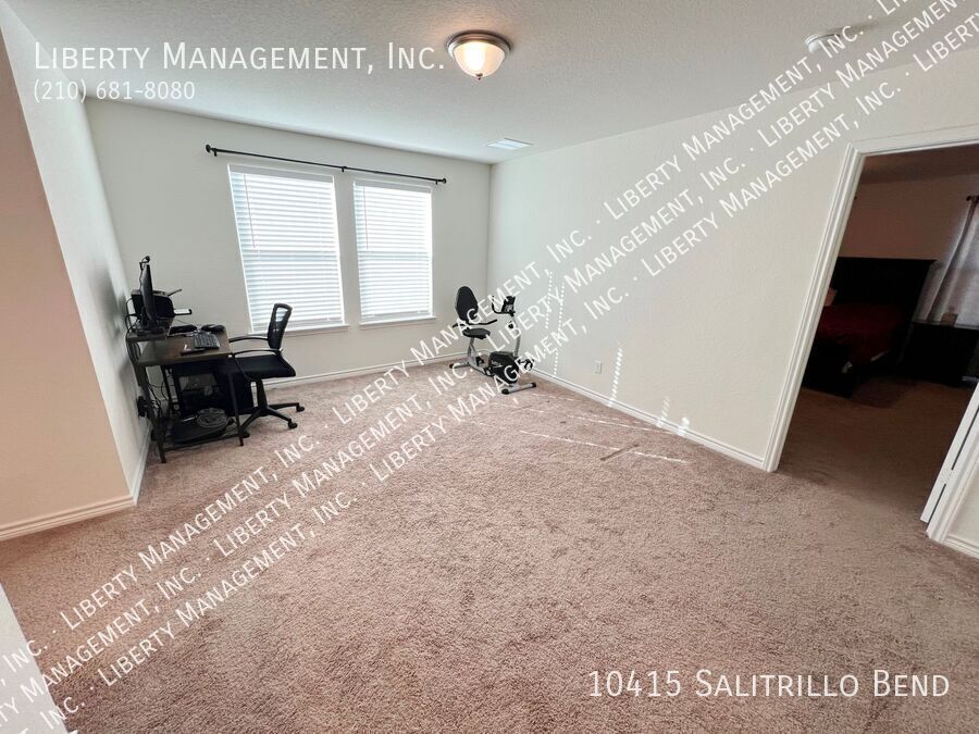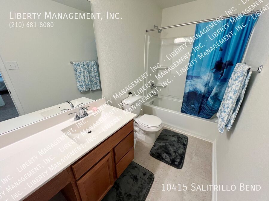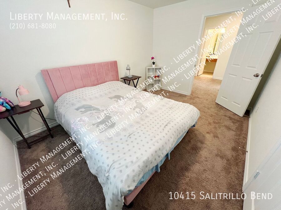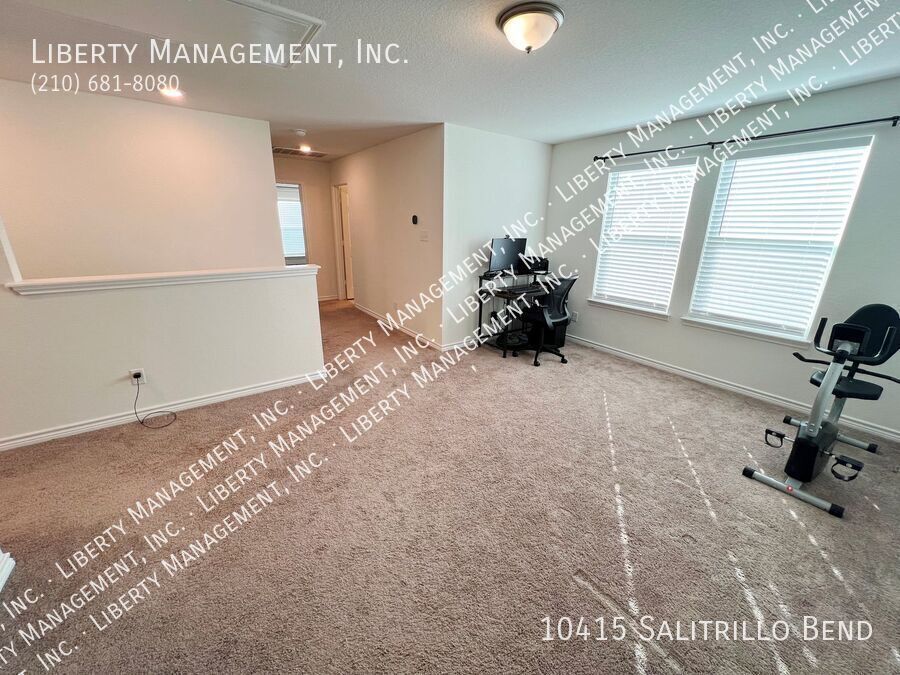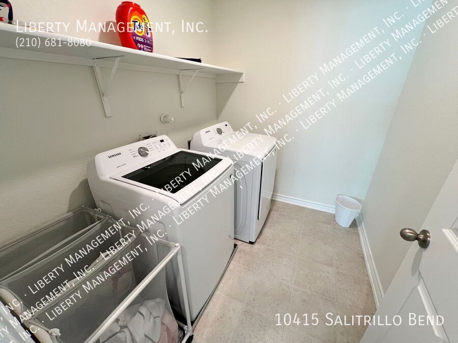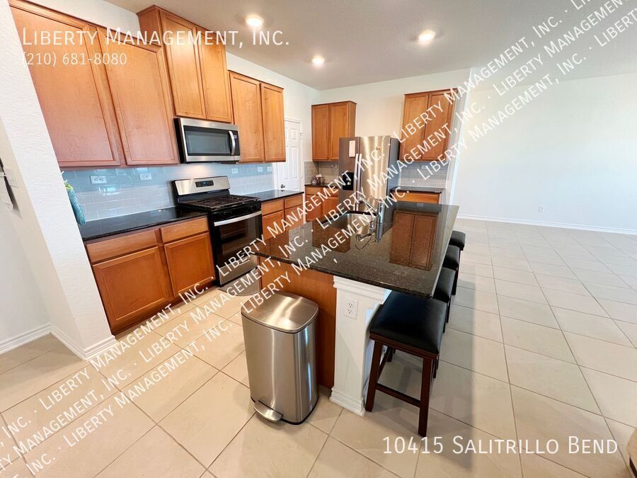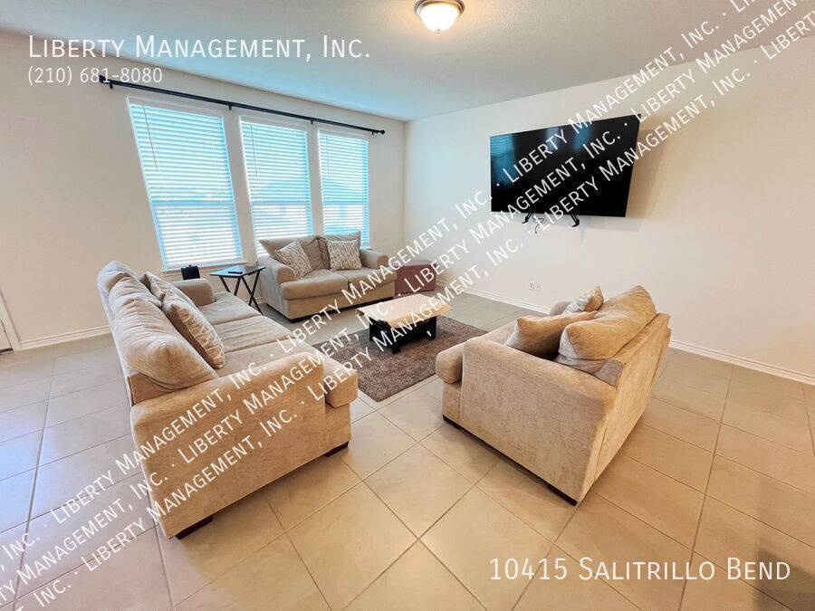 4 Bed, 2.5 Bath, 2347 sq ft Home in Willow Point. Open floor plan with all Tile floors downstairs. Kitchen with Granite counters, Gas Stove, Microwave, Fridge, Dishwasher, Breakfast Bar, Walk-in Pantry. Washer and Dryer included. Large Living Room/Dining Combo. Large Game Room and 4 Bedrooms and Utility Room Upstairs. Large Primary Bedroom with Walk-in Closet. Primary Bath with Shower/Garden Tub combo, Dual Sinks. Large Fenced Backyard. 2 Car Garage with Opener, Water Softener, Sprinkler system. Close to IH-10, 1604, Randolph AFB
