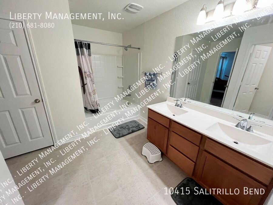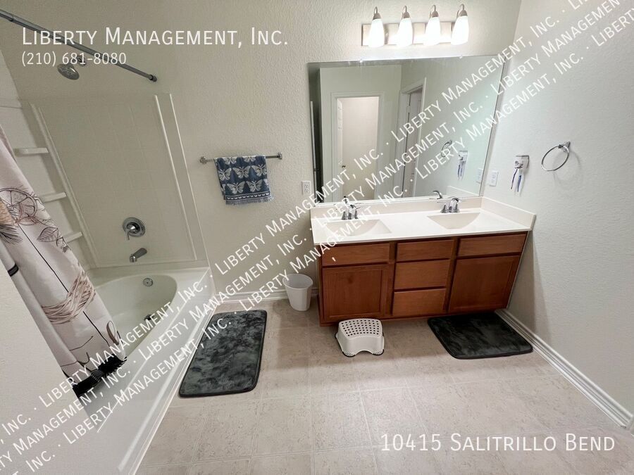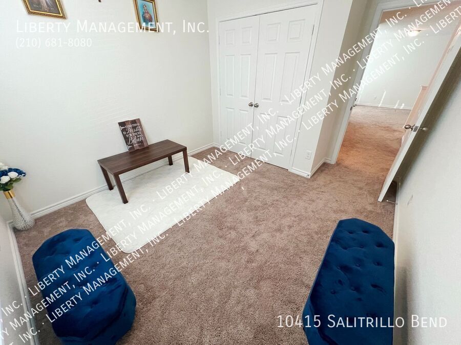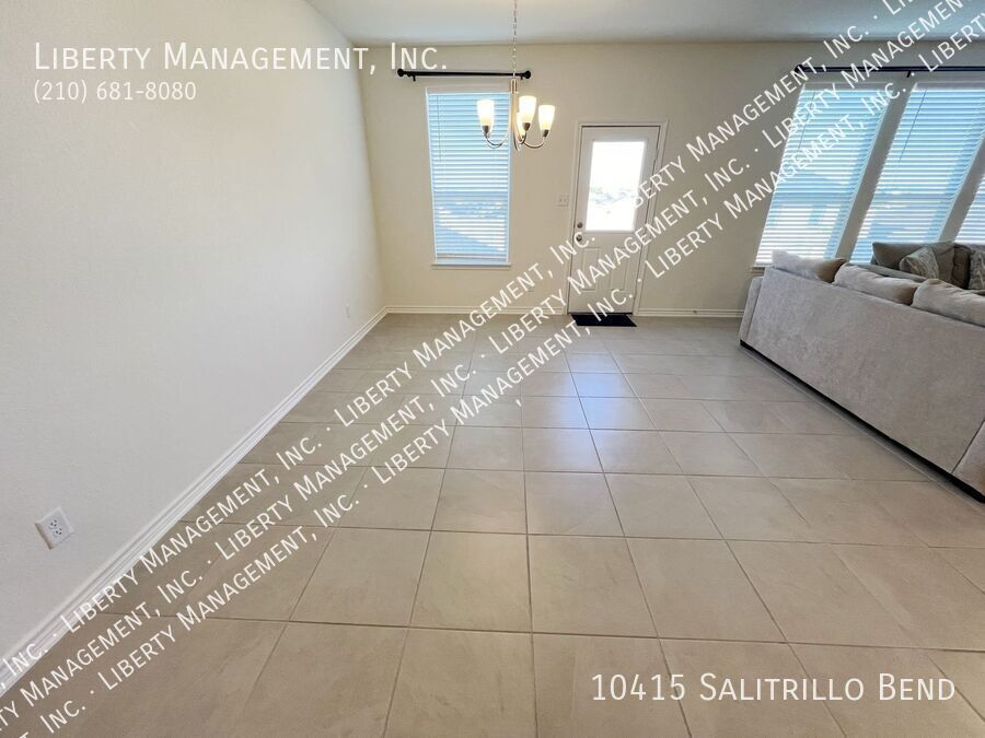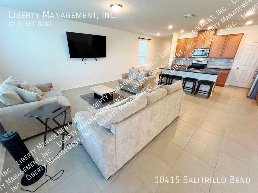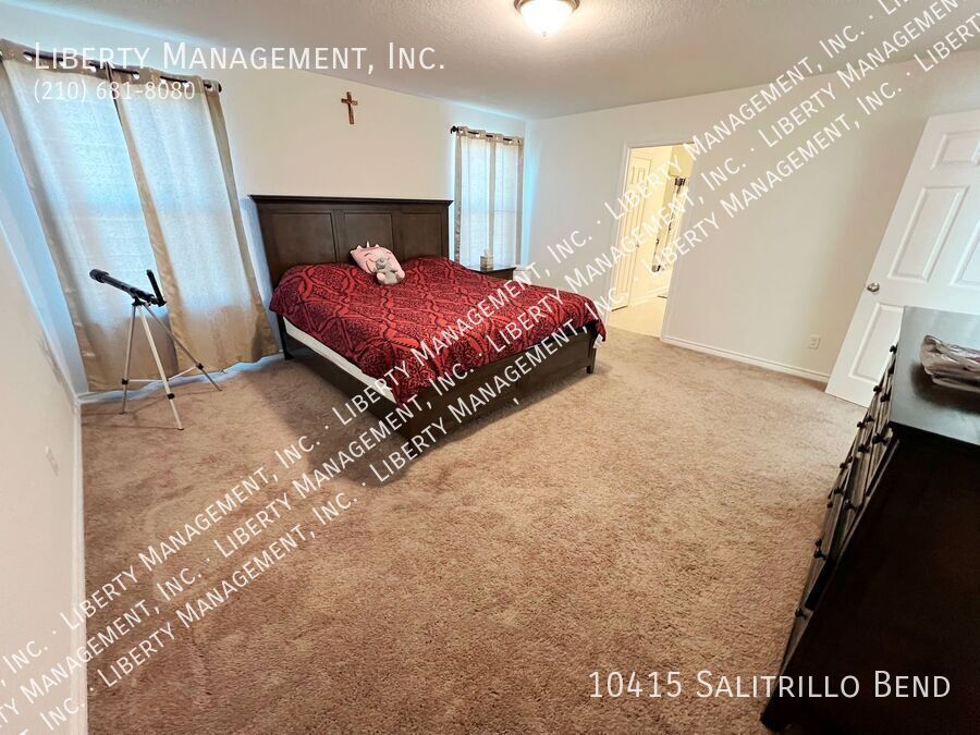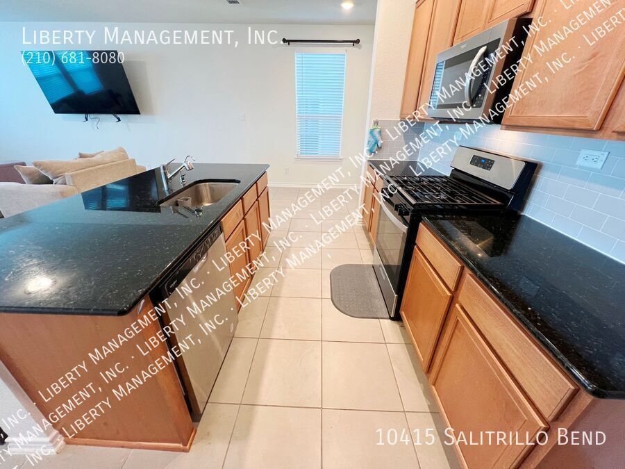 4 Bed, 2.5 Bath, 2347 sq ft Home in Willow Point. Open floor plan with all Tile floors downstairs. Kitchen with Granite counters, Gas Stove, Microwave, Fridge, Dishwasher, Breakfast Bar, Walk-in Pantry. Washer and Dryer included. Large Living Room/Dining Combo. Large Game Room and 4 Bedrooms and Utility Room Upstairs. Large Primary Bedroom with Walk-in Closet. Primary Bath with Shower/Garden Tub combo, Dual Sinks. Large Fenced Backyard. 2 Car Garage with Opener, Water Softener, Sprinkler system. Close to IH-10, 1604, Randolph AFB