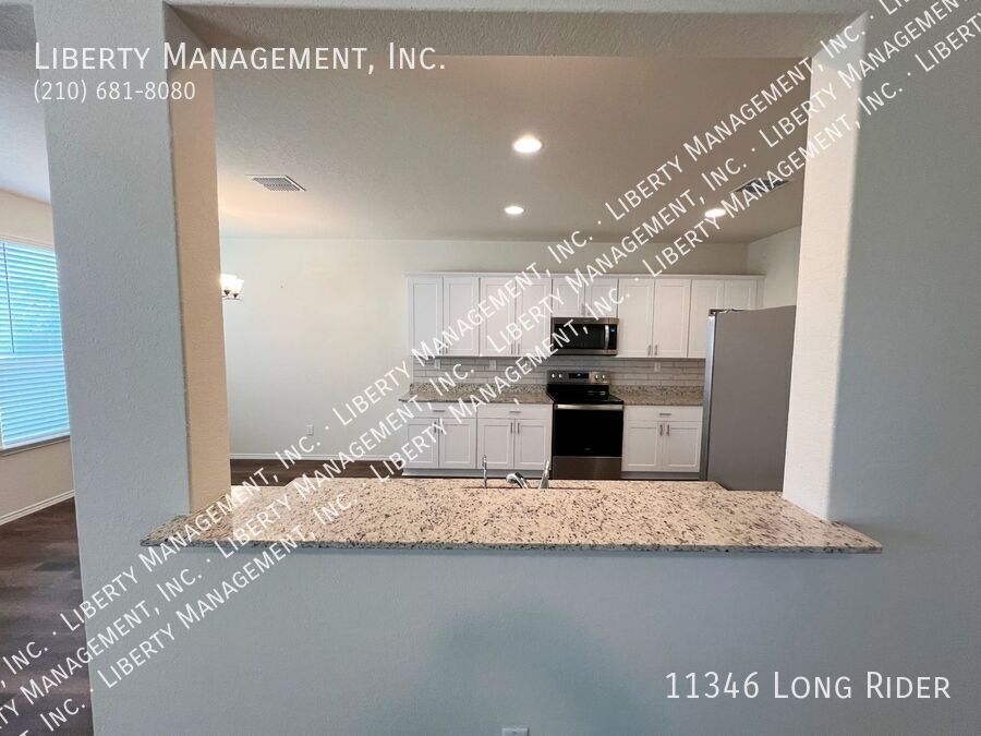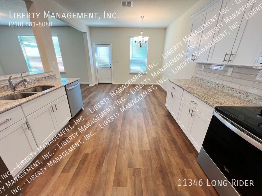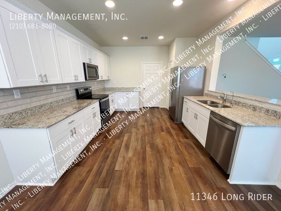 4 Bed, 2.5 Bath 1838 sq ft Home in Davis Ranch. Large Living Room. Kitchen with Granite Counters, Breakfast Bar. Stainless Appliances including Flat-top Stove, Microwave, Dishwasher. Primary Bedroom with Ceiling Fan, Walk-in Closet. Primary Bath with Large Shower, Dual Sinks. Fenced Yard, 2 Car Garage with Opener. Community amenities include a Swimming Pool, Playground, and Picnic Area. Top NISD schools within the neighborhood. Easy access to Hwy 211, 1604, Shopping.