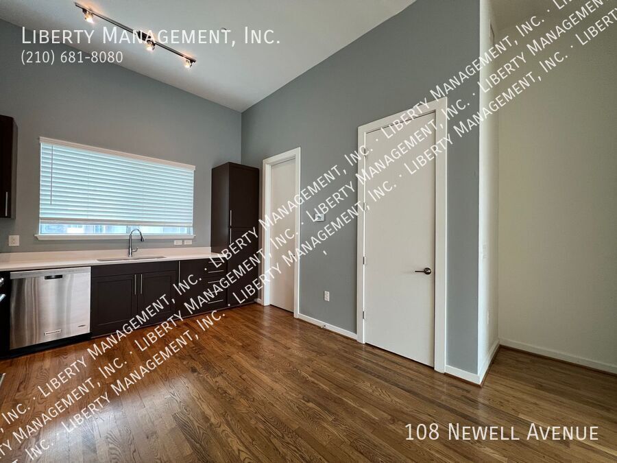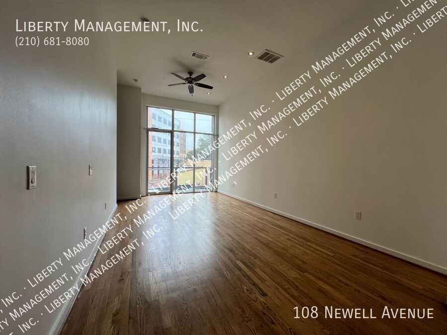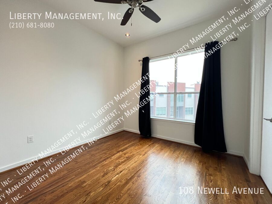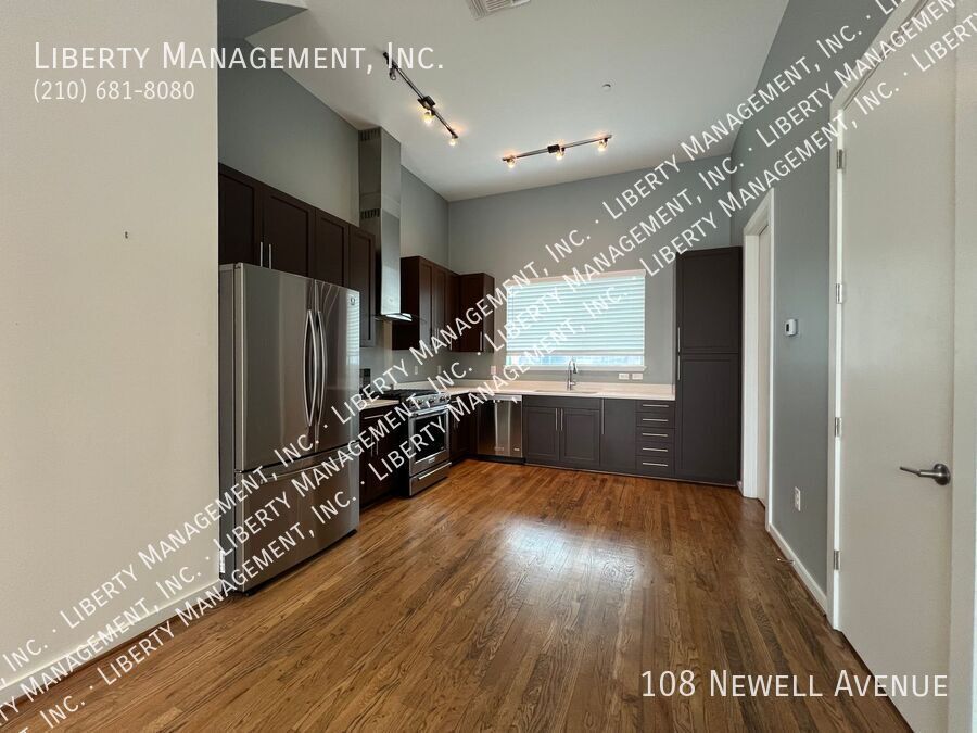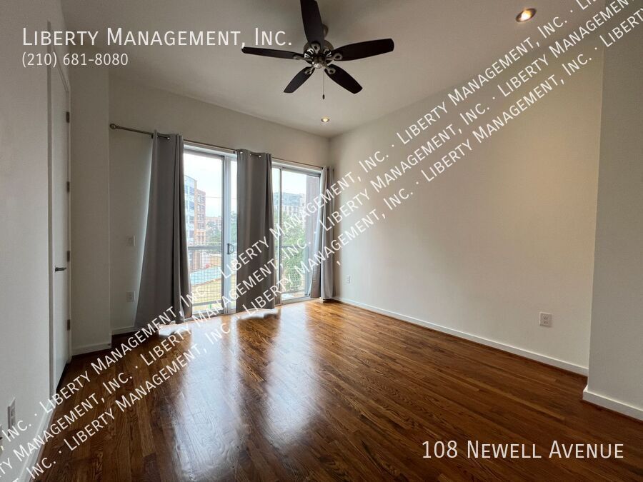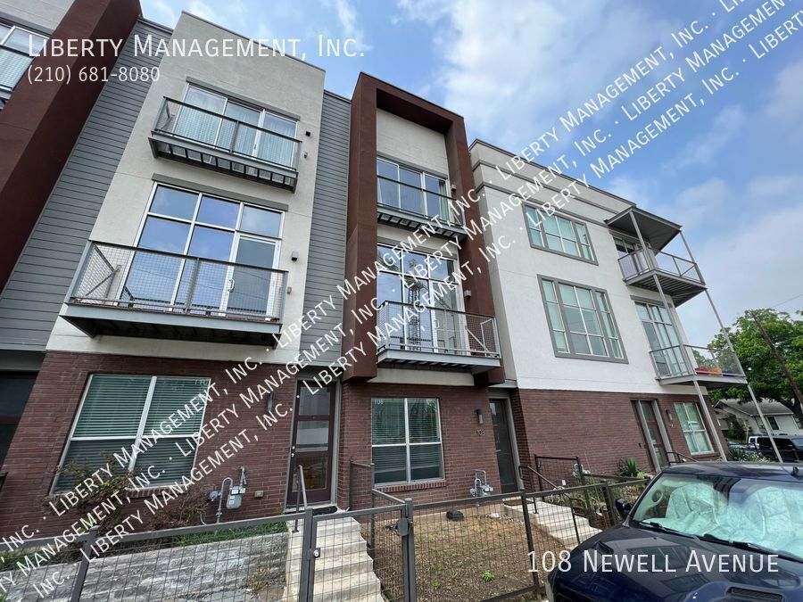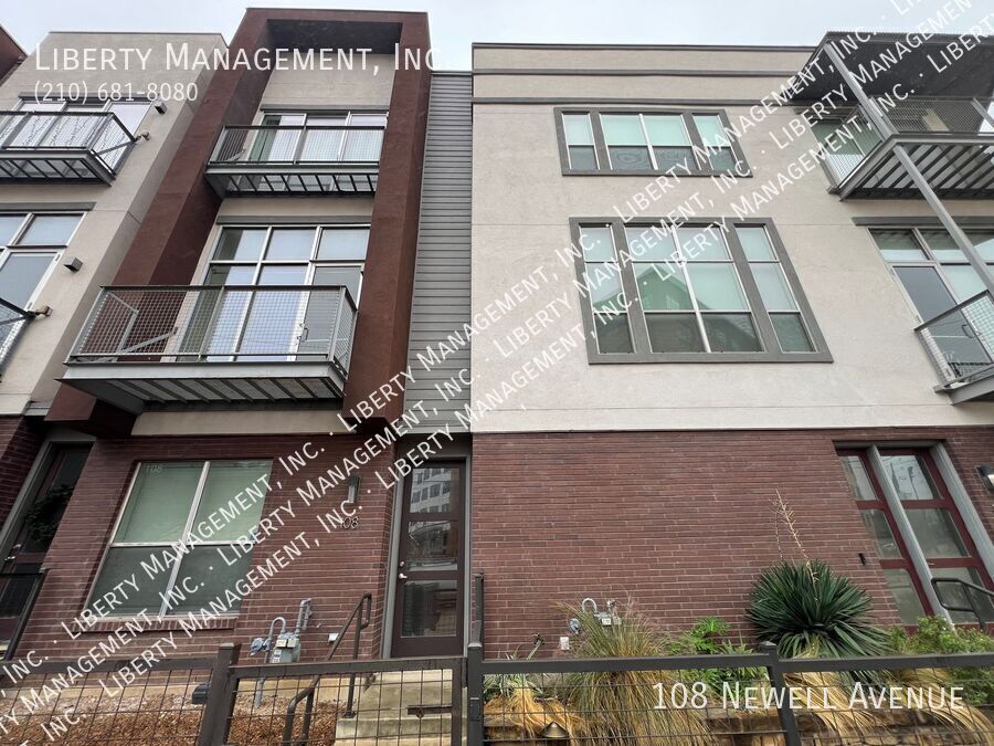 In the heart of Pearl District is this contemporary, chic, 2 bedroom, 3.5 bathroom townhouse with Riverwalk views! Through a frosted glass door is a functional entryway dressed in polished concrete that extends into a bonus room. Hardwood floors sweep the stairs and into an open gourmet kitchen, equipped with stainless steel appliances and sleek Corian countertops. The adjacent living room enjoys high ceilings, floor-to-ceiling windows, and a private balcony. Bedrooms are located on the 3rd floor for optimal privacy. Wake up to a breathtaking view in a dreamy primary bedroom that features a Juliette balcony and an en-suite bathroom with custom tile work. This home also includes an expansive attached garage. The city's dining and shopping mecca are at your doorstep. This location is less than a block from the Pearl, Riverwalk access and provides easy access to 35 and 281.