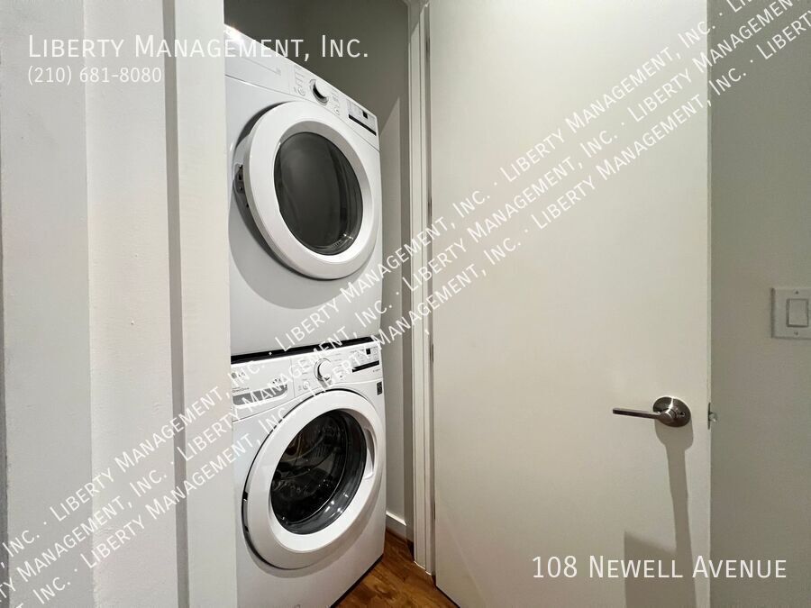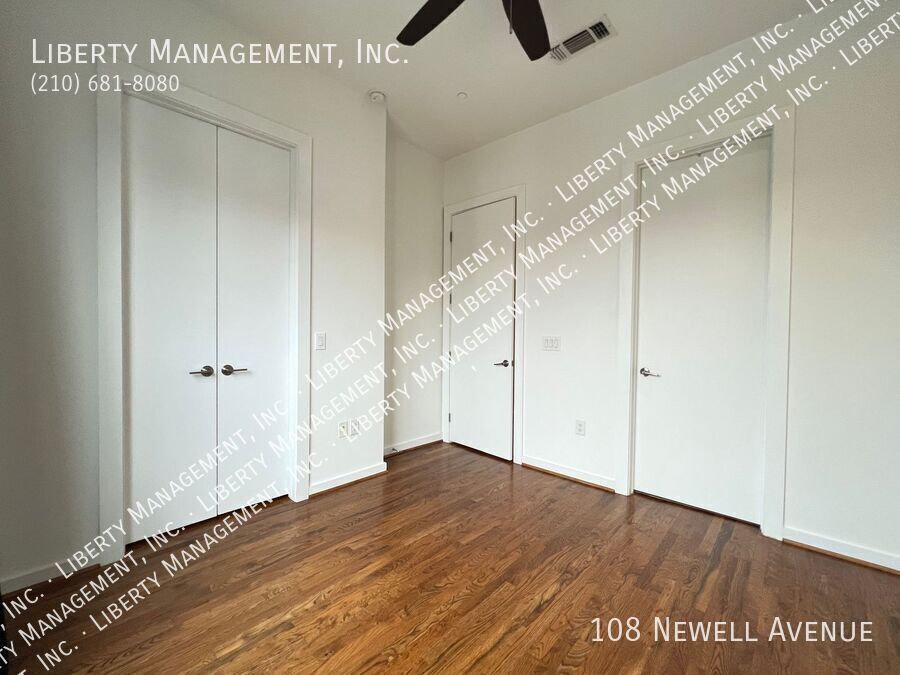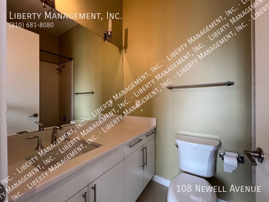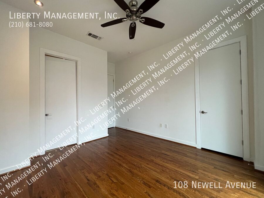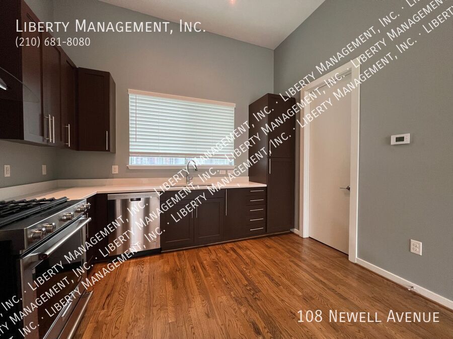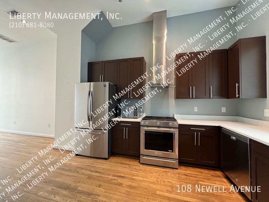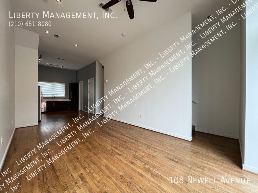 In the heart of Pearl District is this contemporary, chic, 2 bedroom, 3.5 bathroom townhouse with Riverwalk views! Through a frosted glass door is a functional entryway dressed in polished concrete that extends into a bonus room. Hardwood floors sweep the stairs and into an open gourmet kitchen, equipped with stainless steel appliances and sleek Corian countertops. The adjacent living room enjoys high ceilings, floor-to-ceiling windows, and a private balcony. Bedrooms are located on the 3rd floor for optimal privacy. Wake up to a breathtaking view in a dreamy primary bedroom that features a Juliette balcony and an en-suite bathroom with custom tile work. This home also includes an expansive attached garage. The city's dining and shopping mecca are at your doorstep. This location is less than a block from the Pearl, Riverwalk access and provides easy access to 35 and 281.