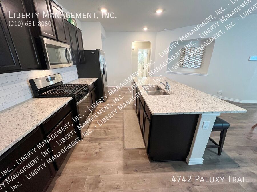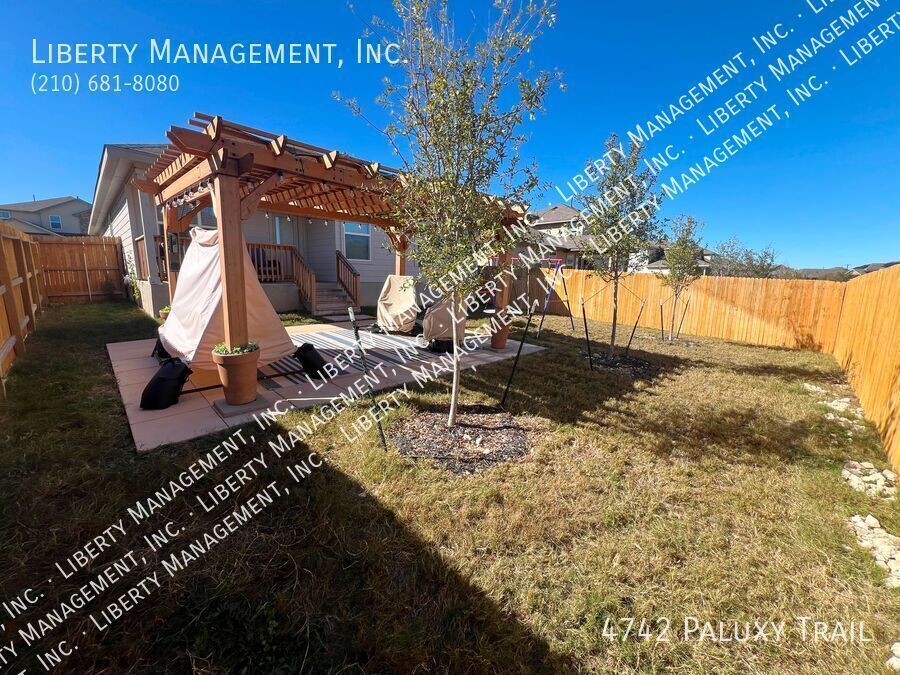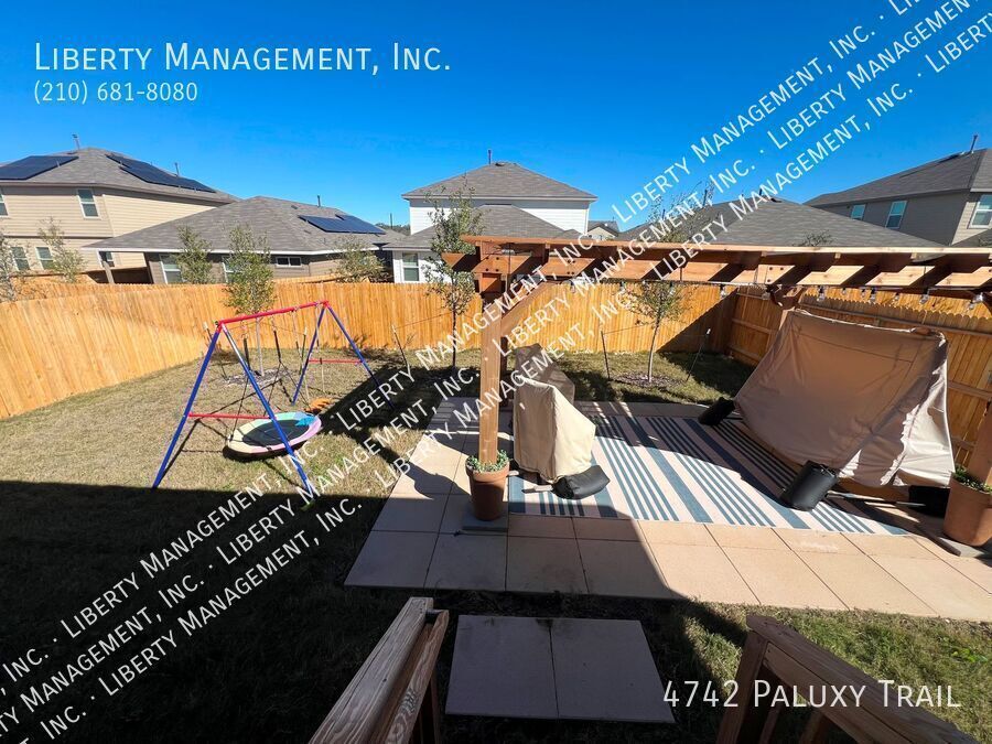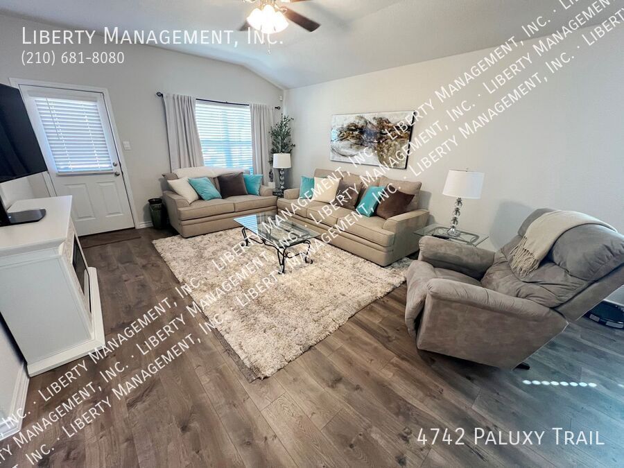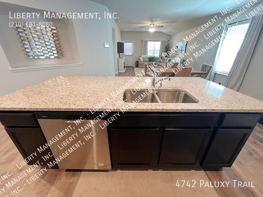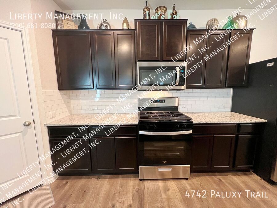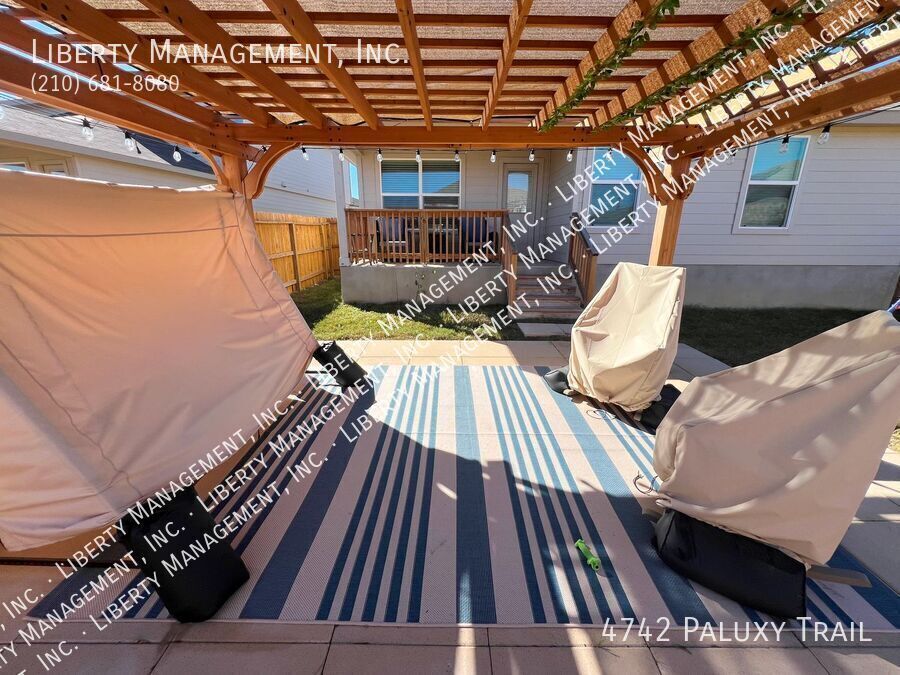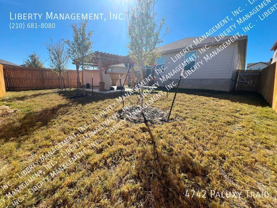 Single story 4 Bed, 2 Bath 1703 sq ft Home in Riverstone at Westpointe. Neutral colors and Ceiling Fans throughout. Large living/dining room combo. Kitchen comes with Granite Counters, Breakfast Bar, and a Walk-in Pantry. Stainless Steel appliances including Gas Stove, Microwave, and Dishwasher. 2-car garage with Opener. Fenced backyard with Covered Patio and Pergola. The Community Center comes with a Pool with Water Slides, Playground, Clubhouse and Fitness Center. Close to Lackland AFB, Seaworld/Aquatica Water Park, shopping, restaurants, and major employers. With quick access to 1604 and 151.