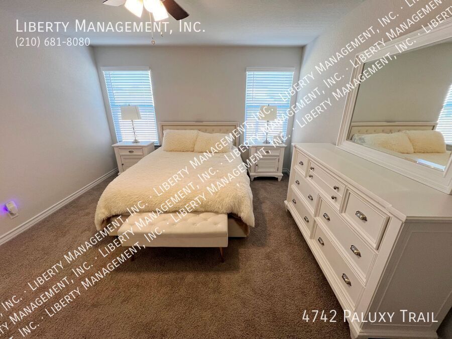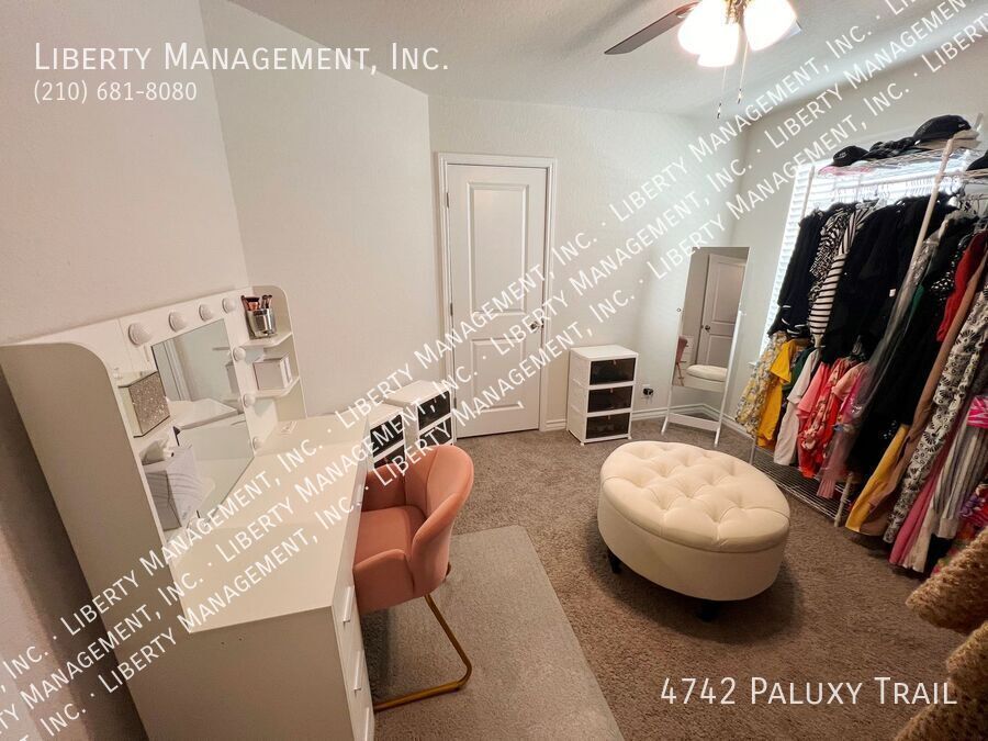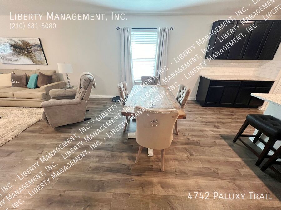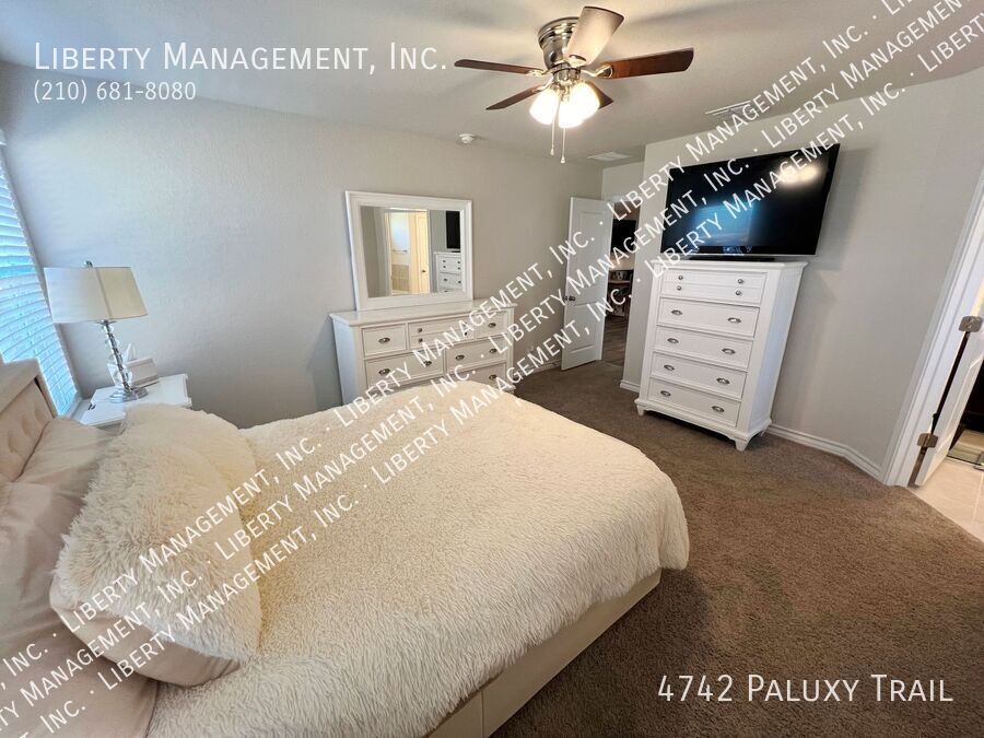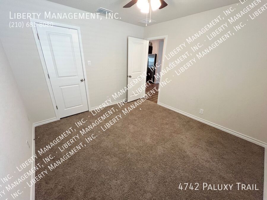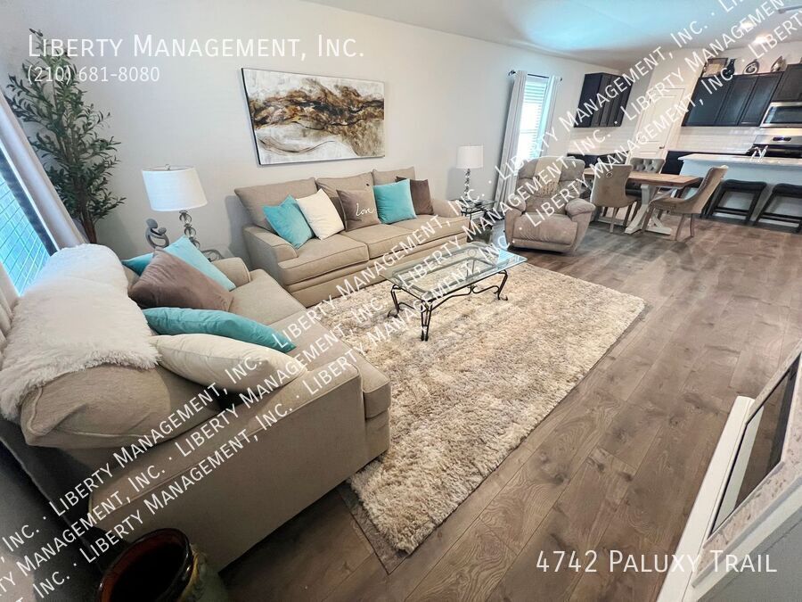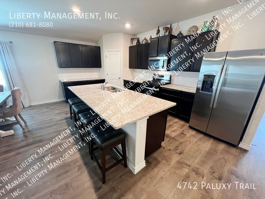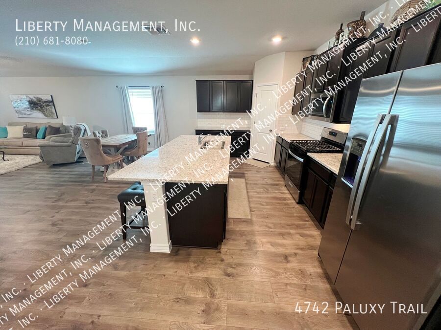 Single story 4 Bed, 2 Bath 1703 sq ft Home in Riverstone at Westpointe. Neutral colors and Ceiling Fans throughout. Large living/dining room combo. Kitchen comes with Granite Counters, Breakfast Bar, and a Walk-in Pantry. Stainless Steel appliances including Gas Stove, Microwave, and Dishwasher. 2-car garage with Opener. Fenced backyard with Covered Patio and Pergola. The Community Center comes with a Pool with Water Slides, Playground, Clubhouse and Fitness Center. Close to Lackland AFB, Seaworld/Aquatica Water Park, shopping, restaurants, and major employers. With quick access to 1604 and 151.