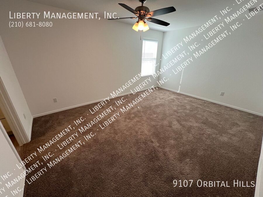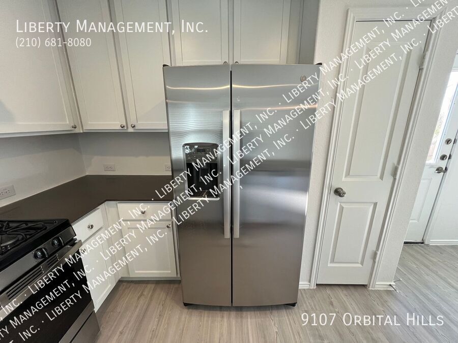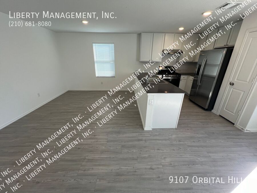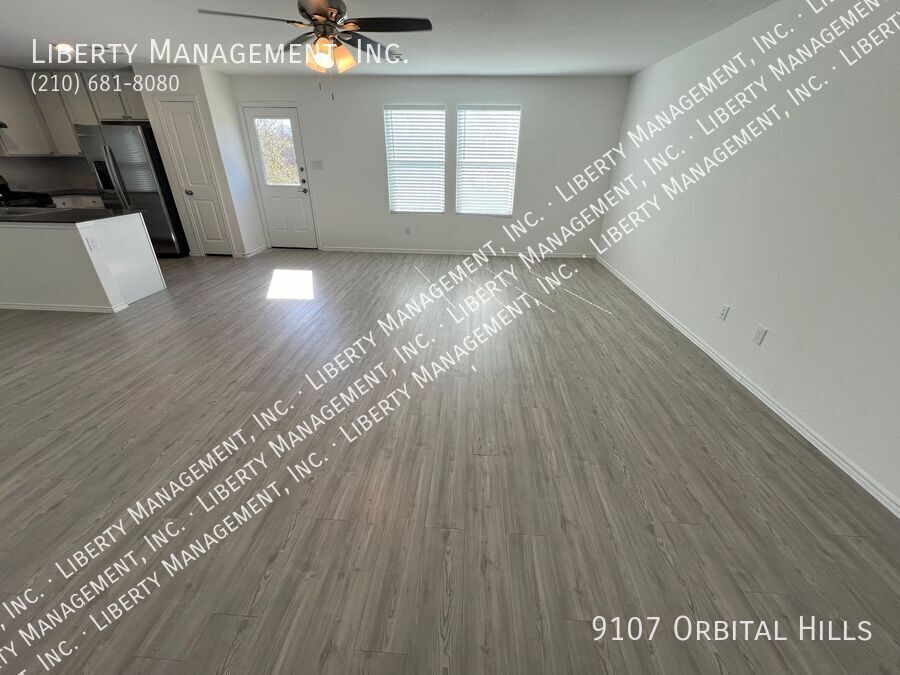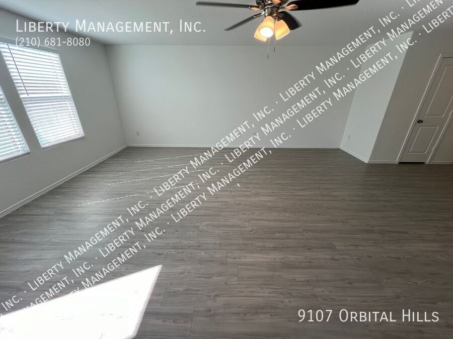 4 Bed 2.5 Bath 1950 sq ft Home on a Greenbelt and semi cul-de-sac. All Vinyl Plank downstairs. Large Living Room opens to the Dining Room and Kitchen. Quartz counters, Fridge, Gas Stove, Dishwasher. Large Game Room and 4 Bedrooms up, all with Ceiling Fans. Master Bedroom w/ Walk-in Closet. Master Bath w/Shower/Tub combo. Fenced Yard with no back neighbor. Two Car Garage w/Opener.