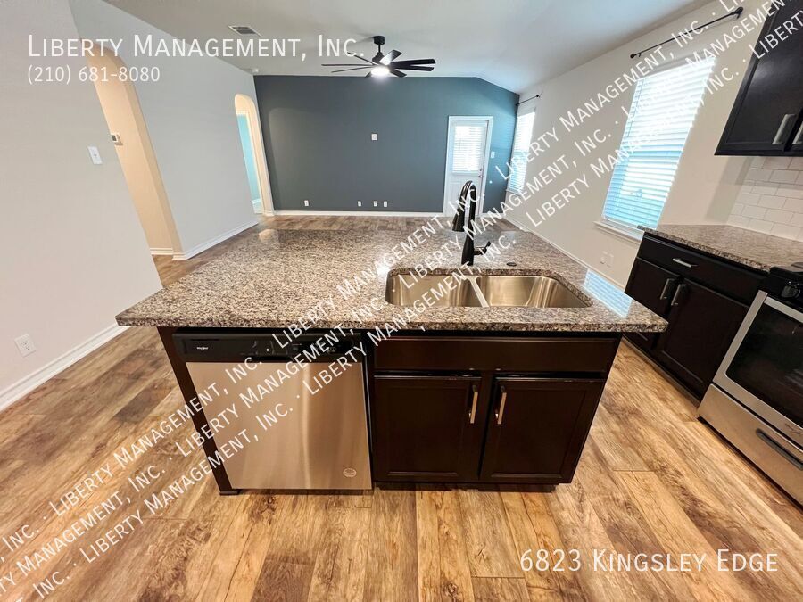 Welcome home to this Single-story 3 Bed, 2 Bath 1666 sq ft home in Whisper Falls. Ceramic tile everywhere except the bedrooms. Formal Dining Room. Open Kitchen with Granite Counters, Breakfast Bar, Gas Stove, Microwave, Dishwasher. Large Living Room. Primary Bedroom with Ceiling Fan, Walk-in Closet. Primary Bath with Separate Shower/Garden Tub, Dual Sinks. 2-car garage with Opener, EV Charger, Water Softener. Fenced backyard with Covered Patio. Experience the ultimate Resort-style living with amenities such as a Pool, Clubhouse, Cabanas, Playground, Basketball court, and Splash Pads. Plus, the community even has its own Lifestyle Director to help plan activities and events for residents. Easy access to Highway 90, 211, Lackland AFB, Shopping.