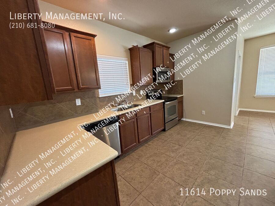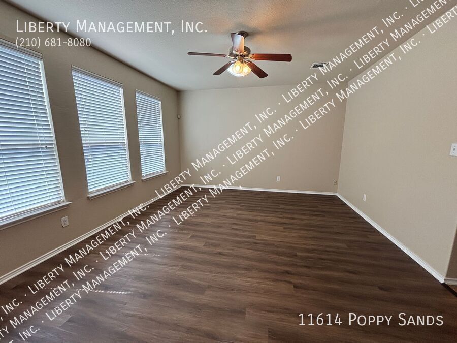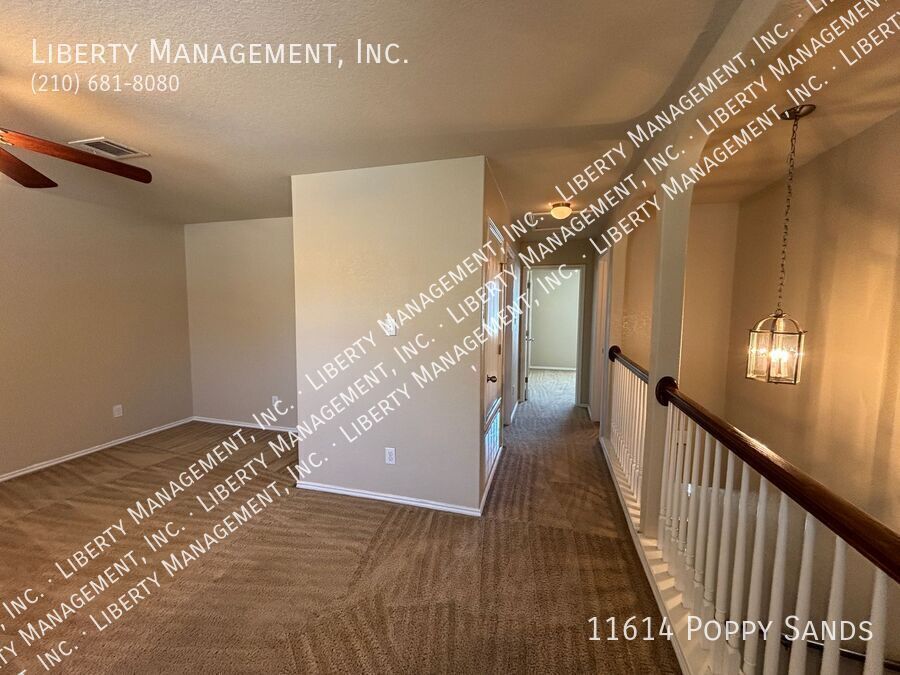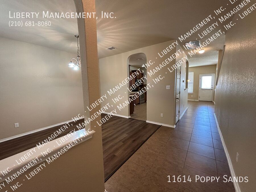 This charming 3-bedroom, 2.5-bath home in the Amhurst community features new flooring in the living room, dining room, and has been freshly painted. Upstairs, you'll find a versatile loft/game room. The kitchen includes a cozy eat-in dining space. The primary suite boasts a walk-in closet and an ensuite bathroom with a double vanity, garden tub, and separate shower. Enjoy outdoor entertaining in the nicely sized yard with a covered patio. Conveniently located near major highways, SeaWorld, shopping, and dining.
