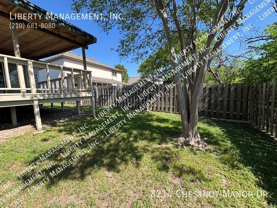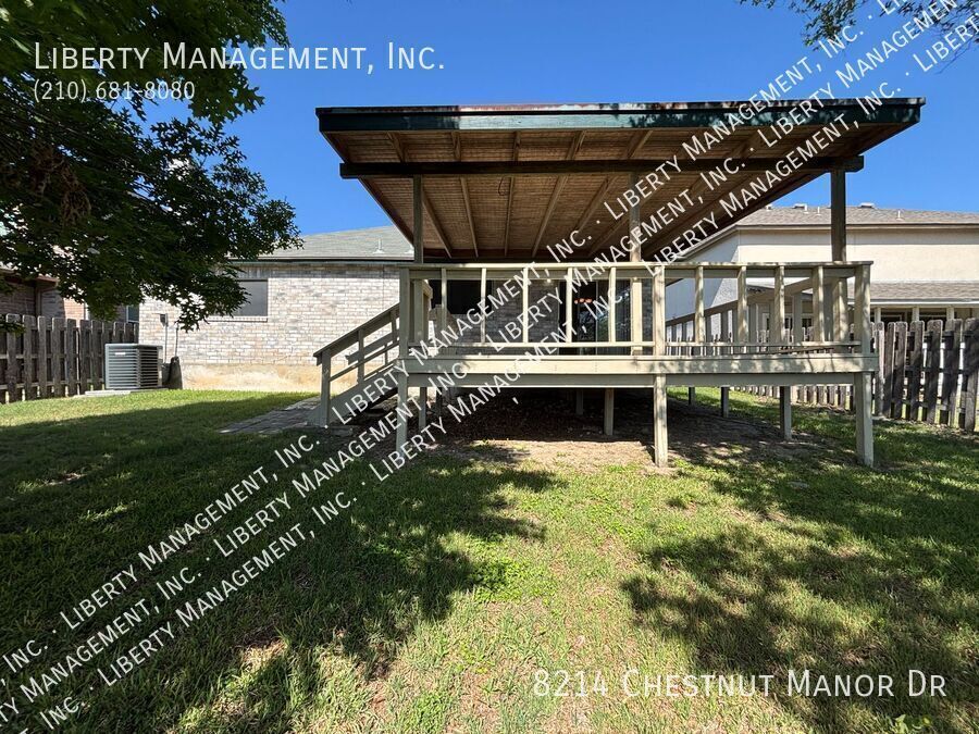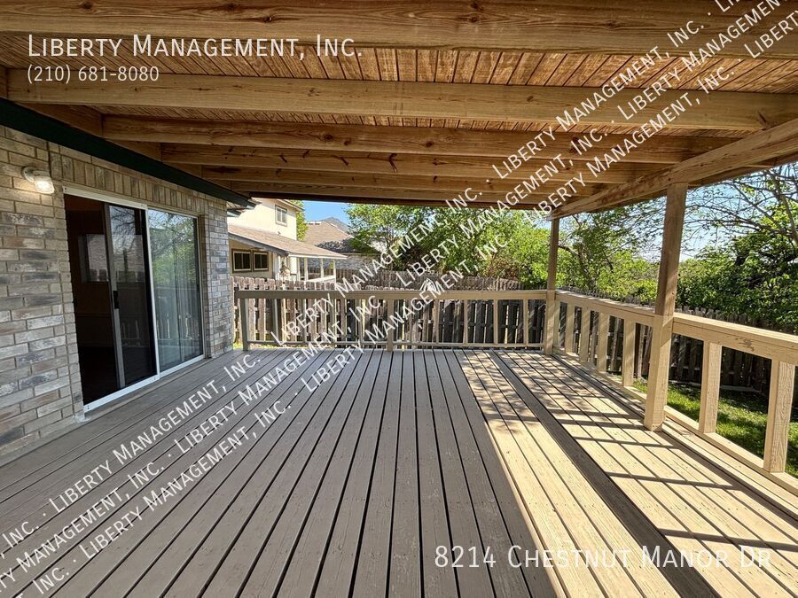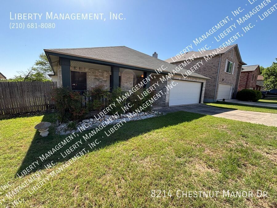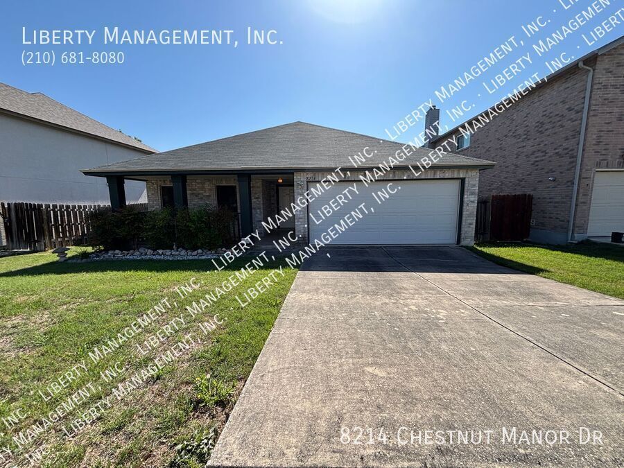 Check out this single-story home on a greenbelt near RANDOLPH AIR FORCE BASE. It features 3 bedrooms, 2 bathrooms, 2-car garage, 1551 Sq Ft living space, and an expansive deck perfect for outdoor entertaining. This home comes with neutral paint color, blinds, and beautiful luxury vinyl planks throughout, NO CARPETS! Its spacious kitchen boasts an island and cabinet for storage. Primary bedroom is tucked in the corner of the house for optimum privacy and comes with walk-in closet, dual vanity, and tub/shower combo. Just few minutes to Randolph AFB, restaurants, and shopping. The covered deck and huge yard are perfect for backyard entertaining. With quick access to 1604 and I-35.
