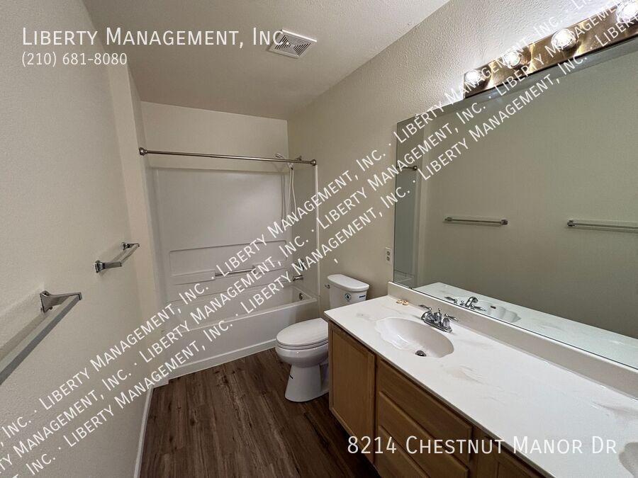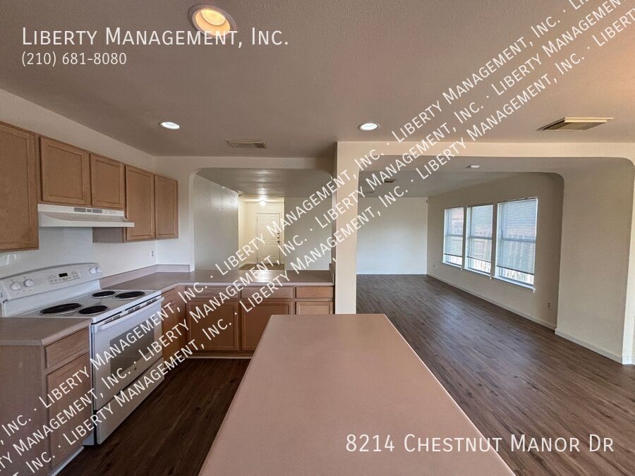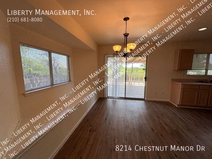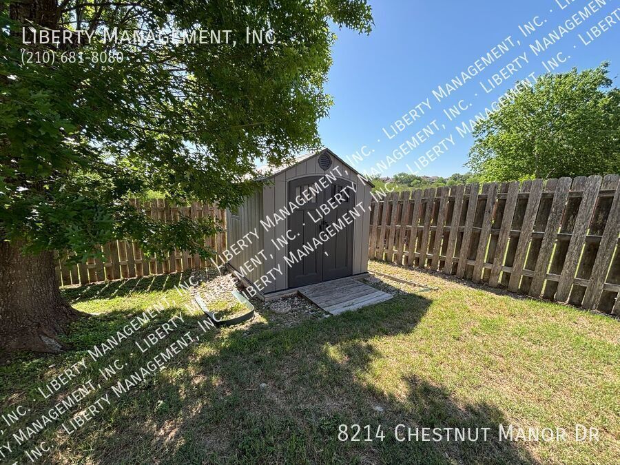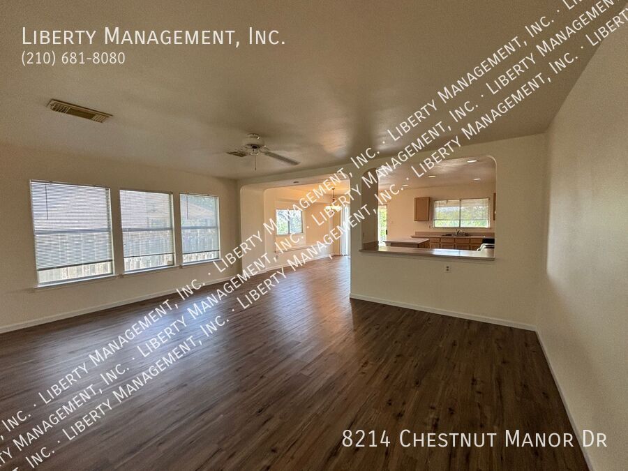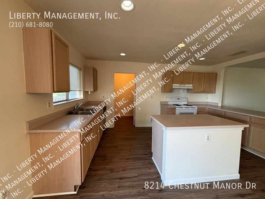 Check out this single-story home on a greenbelt near RANDOLPH AIR FORCE BASE. It features 3 bedrooms, 2 bathrooms, 2-car garage, 1551 Sq Ft living space, and an expansive deck perfect for outdoor entertaining. This home comes with neutral paint color, blinds, and beautiful luxury vinyl planks throughout, NO CARPETS! Its spacious kitchen boasts an island and cabinet for storage. Primary bedroom is tucked in the corner of the house for optimum privacy and comes with walk-in closet, dual vanity, and tub/shower combo. Just few minutes to Randolph AFB, restaurants, and shopping. The covered deck and huge yard are perfect for backyard entertaining. With quick access to 1604 and I-35.