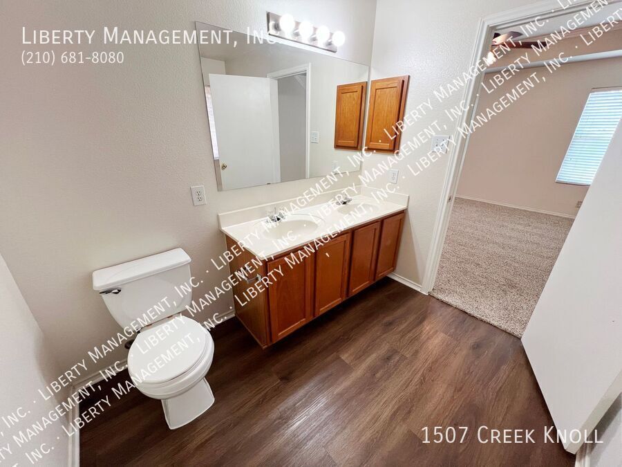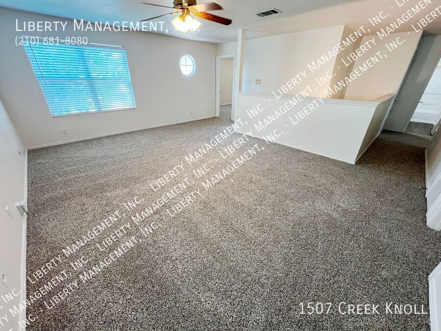 *** Move-in Special 2 Weeks Free Rent *** $1695 for the 1st 6 months, then $1795 per month. Spacious 4 Bed, 2.5 Bath home in Desirable Westcreek. Backs to Greenbelt. All New Luxury Vinyl Plank downstairs and in the bathrooms. New Carpets upstairs. Formal Dining Room/optional Study. Kitchen w/Breakfast Nook, Stove, Dishwasher. Large Living Room with Wood Burning Fireplace. Large Game Room upstairs. Primary Bedroom with Ceiling Fan, Walk-in Closet. Primary Bath with Separate Shower/Garden Tub, Dual Sinks. Fenced Yard with Patio. Two Car Garage w/Opener. Community Sports Park, Tennis, Basketball, Playground and Swimming pool just around the corner within walking distance. Easy access to 1604, 151, Sea World, Lackland AFB and major hospitals: Christus Santa Rosa and Baptist Hospital.