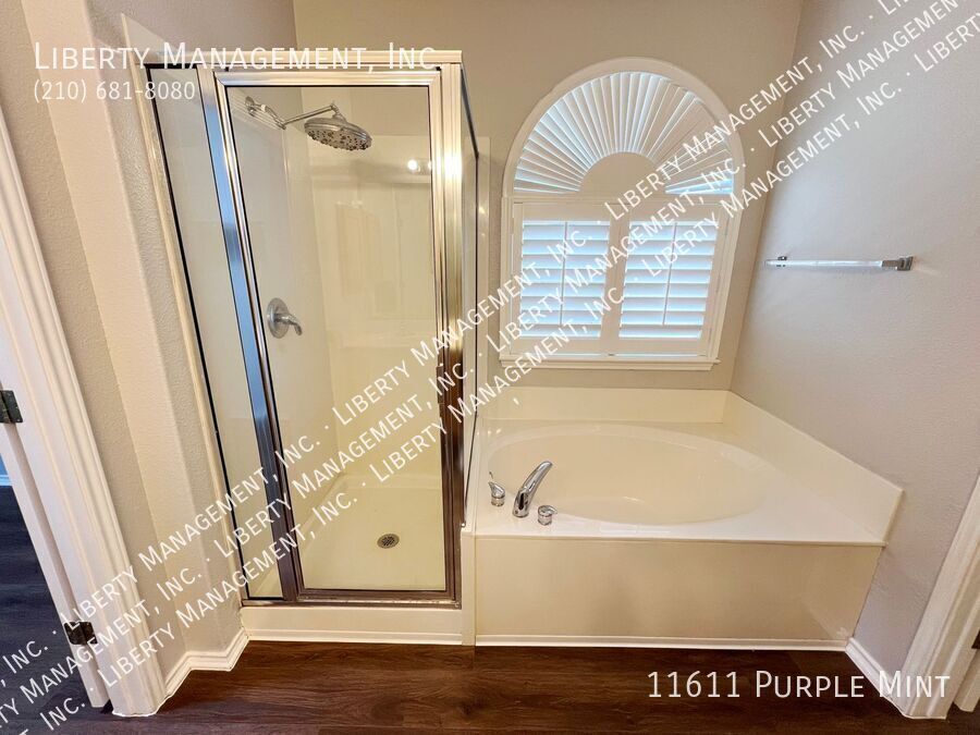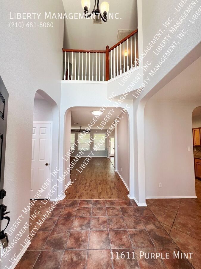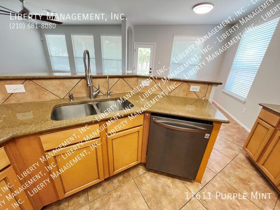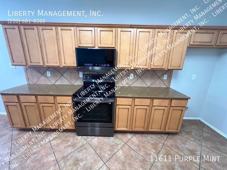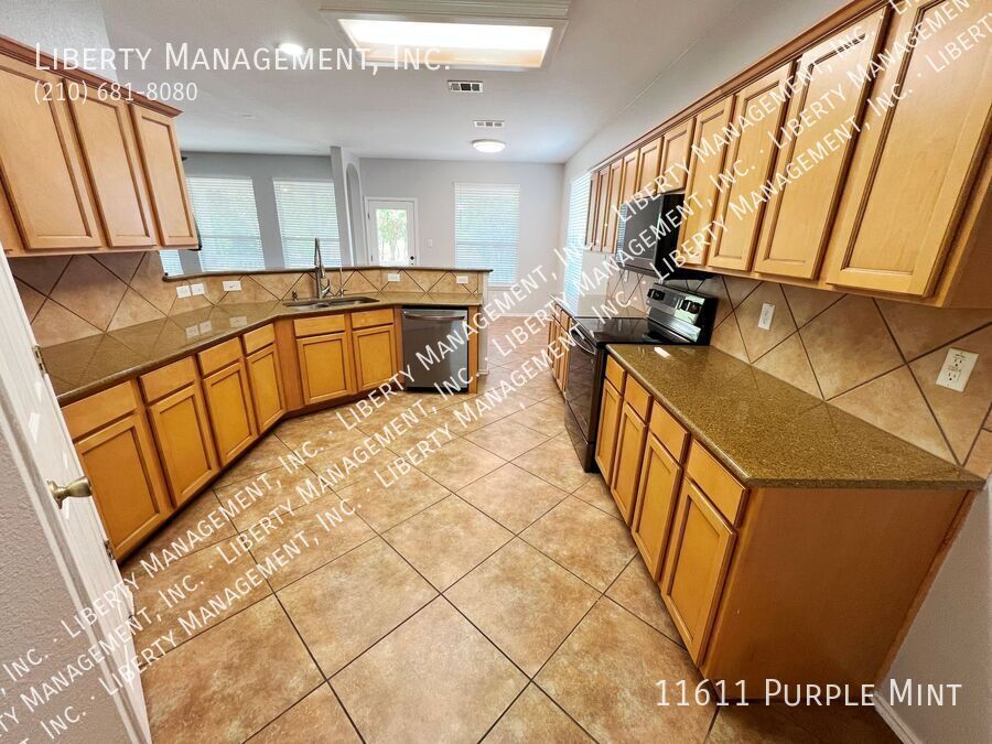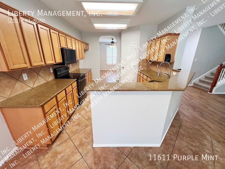 5 Bed 3.5 Bath 3233 sq ft Home on a Cul-de-sac and Greenbelt on almost 1/4 acre lot. Right next to the Dog Park, with the Community Pool and Playground within walking distance. New neutral Paint throughout. All Tile and Luxury Vinyl Plank floors downstairs. Formal Dining Room. Kitchen with Granite Counters, Breakfast Bar, Breakfast Nook, Walk-in Pantry, tons of cabinet space. Flat-top Stove, Microwave, Dishwasher. Large Living Room. Primary Bedroom down, with Ceiling Fan, Walk-in Closet. Primary Bath with Separate Shower/Garden Tub, Dual Sinks. Upstairs is a spacious Game Room, 4 Bedrooms, and 2 more Full Bathrooms. Bedrooms 2 and 3 share a Jack-n-Jill bathroom, each with their own sinks. Huge Fenced Backyard, Large Covered Patio with gate, Lots of Trees for natural shade, no back neighbor. 2 Car Garage with Opener, Water Softener. Northside Schools. Easy access to 1604, Hwy 90, Lackland, Shopping, and Costco.