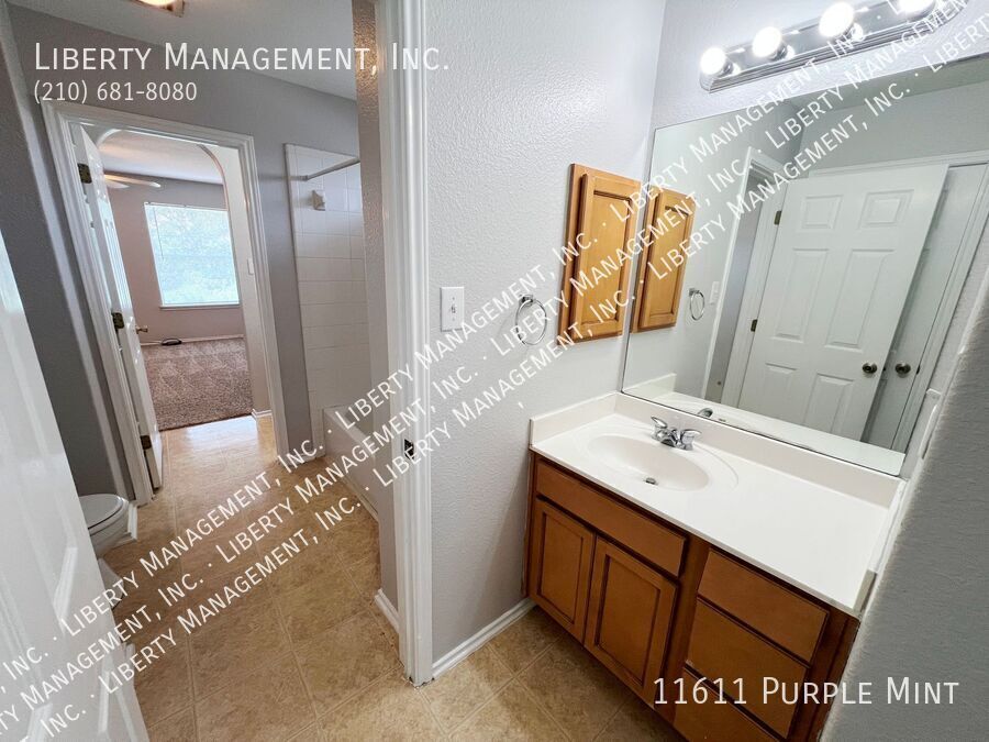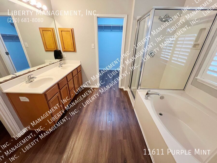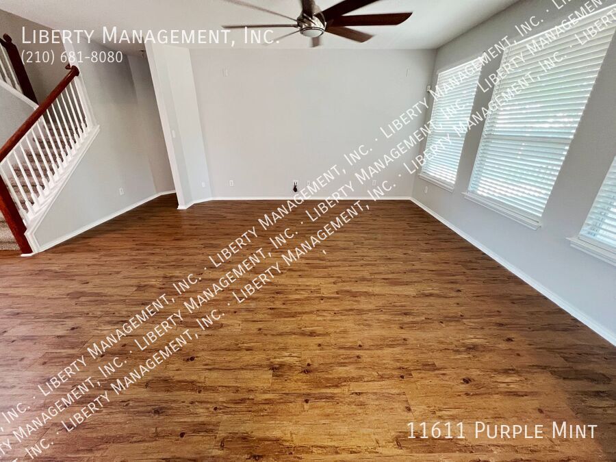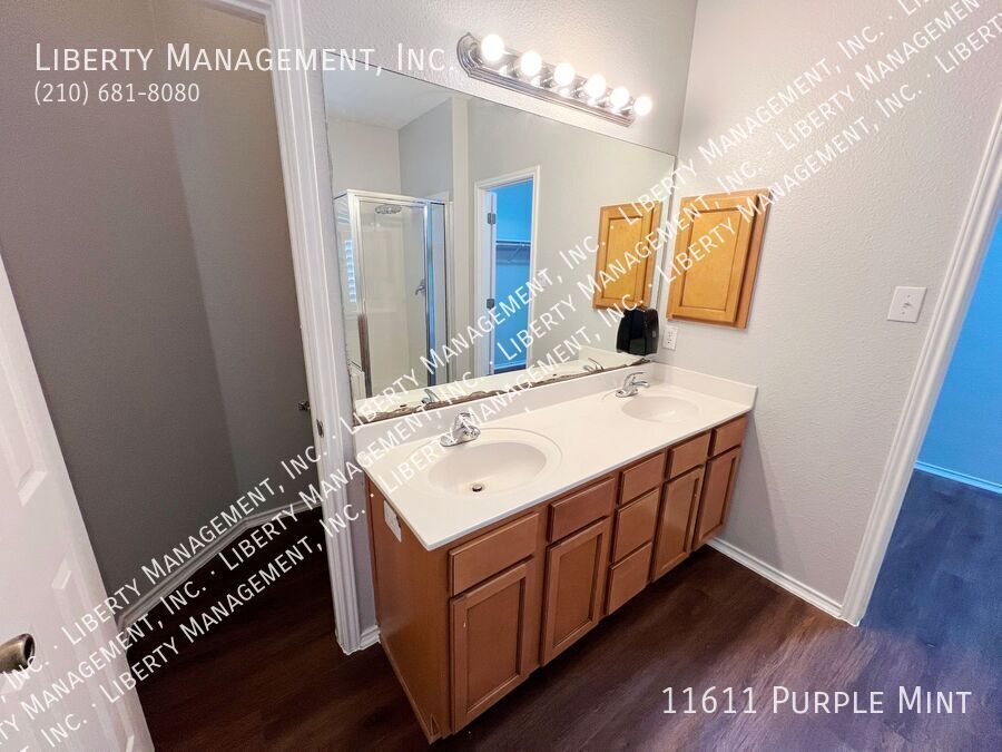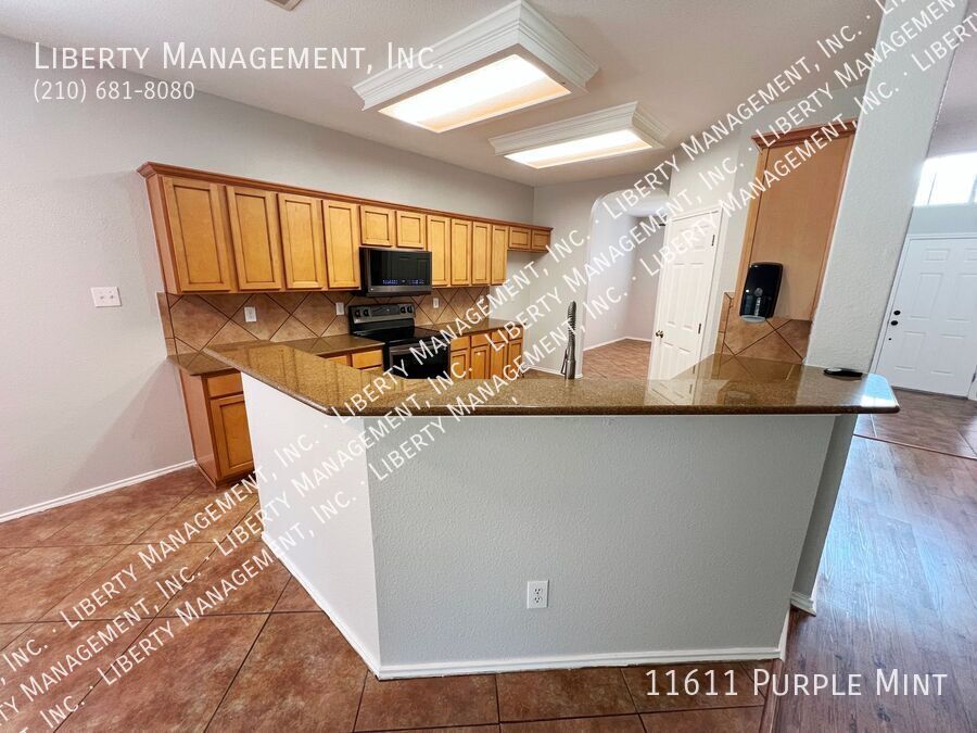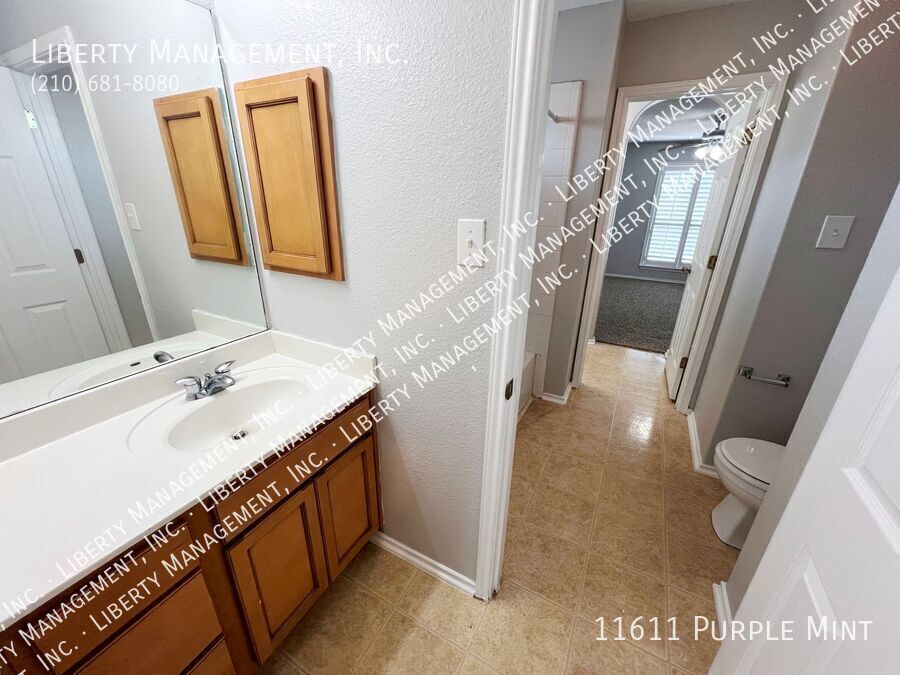 5 Bed 3.5 Bath 3233 sq ft Home on a Cul-de-sac and Greenbelt on almost 1/4 acre lot. Right next to the Dog Park, with the Community Pool and Playground within walking distance. New neutral Paint throughout. All Tile and Luxury Vinyl Plank floors downstairs. Formal Dining Room. Kitchen with Granite Counters, Breakfast Bar, Breakfast Nook, Walk-in Pantry, tons of cabinet space. Flat-top Stove, Microwave, Dishwasher. Large Living Room. Primary Bedroom down, with Ceiling Fan, Walk-in Closet. Primary Bath with Separate Shower/Garden Tub, Dual Sinks. Upstairs is a spacious Game Room, 4 Bedrooms, and 2 more Full Bathrooms. Bedrooms 2 and 3 share a Jack-n-Jill bathroom, each with their own sinks. Huge Fenced Backyard, Large Covered Patio with gate, Lots of Trees for natural shade, no back neighbor. 2 Car Garage with Opener, Water Softener. Northside Schools. Easy access to 1604, Hwy 90, Lackland, Shopping, and Costco.