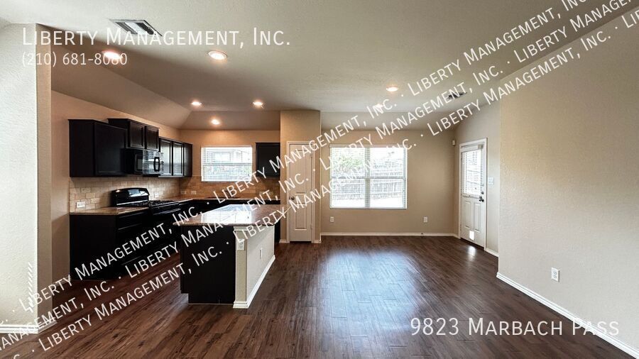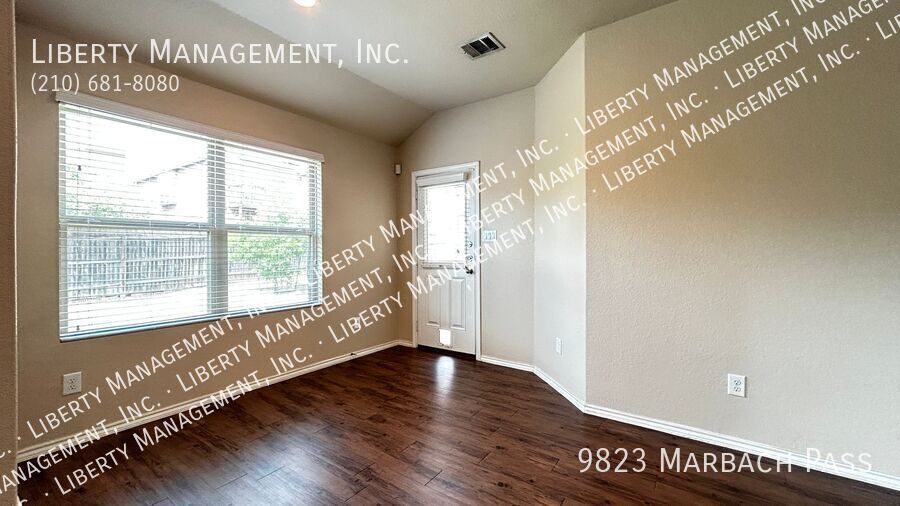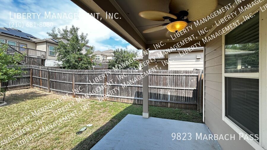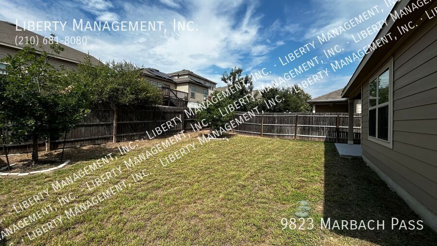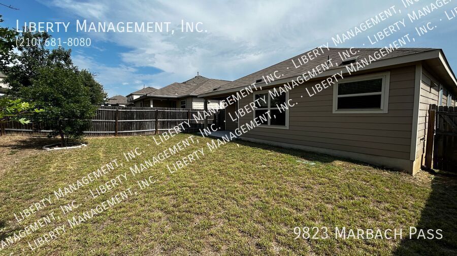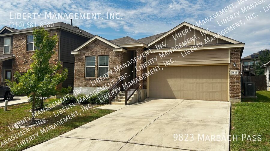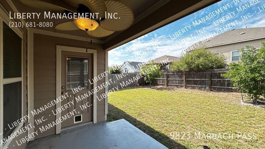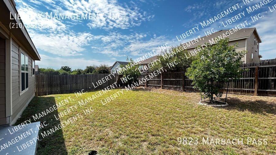 Come check out this beautiful single story rental home near Lackland AFB with carpet only in bedrooms, blinds, and neutral walls. This gem features 1576 sq ft living space, 3 bedrooms, 2 bathrooms, and 2-car garage. Its inviting entry way opens to a large living room and dining room combo perfect for entertaining. The kitchen boasts a large island bar with built in seating, gorgeous granite counters, canned recessed lights, and lots of cabinets for storage. The primary suite is nestled in the corner of the house for optimum privacy. Primary Bathroom includes a separate tub and shower, dual vanity, and large walk-in closet. Backyard entertaining is a breeze with this home's large, fenced yard. With quick access to 1604 and 90.