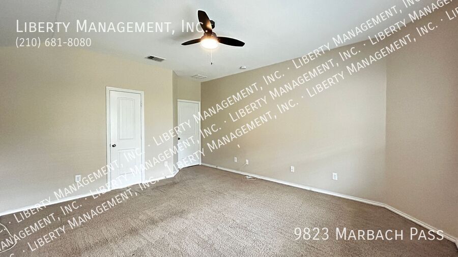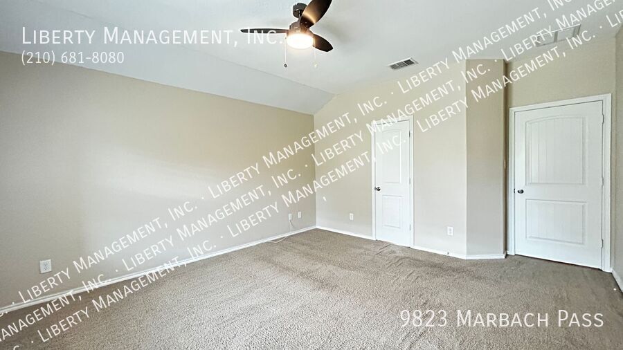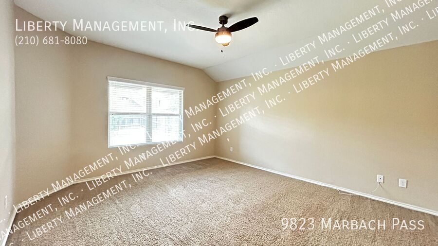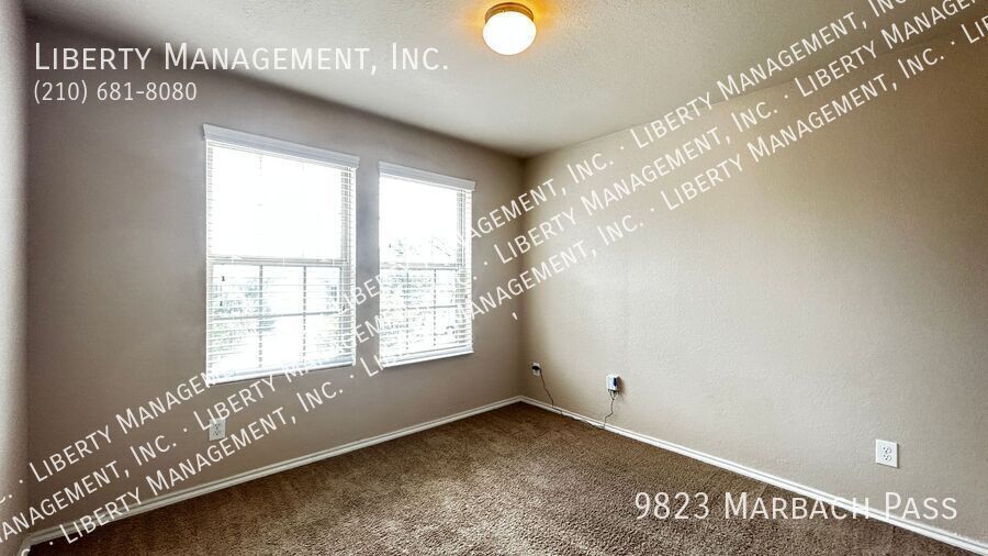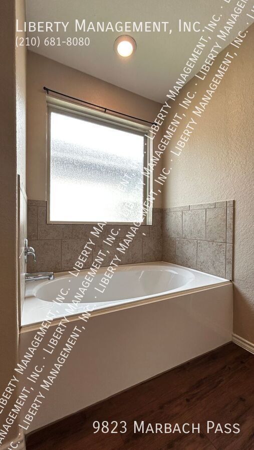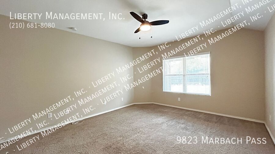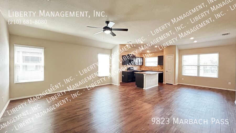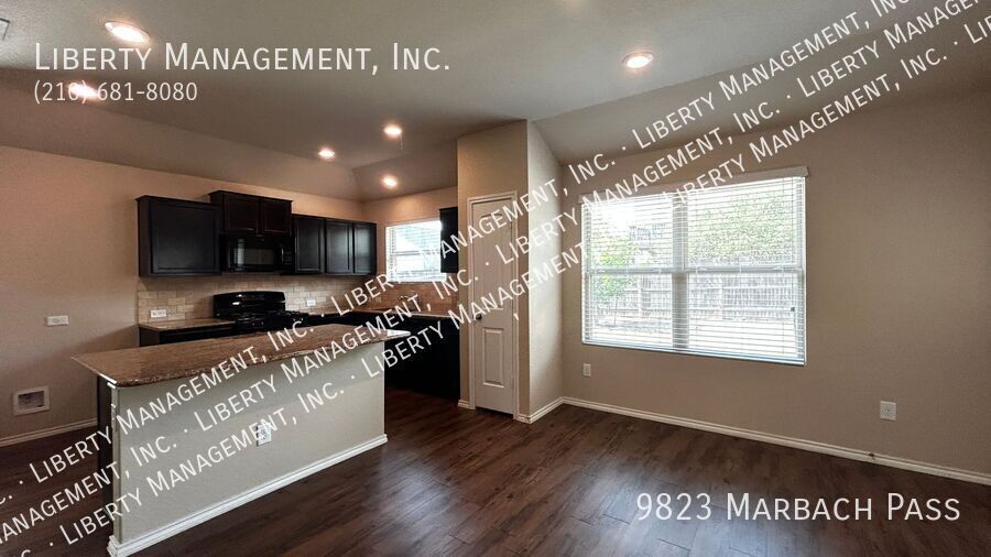 Come check out this beautiful single story rental home near Lackland AFB with carpet only in bedrooms, blinds, and neutral walls. This gem features 1576 sq ft living space, 3 bedrooms, 2 bathrooms, and 2-car garage. Its inviting entry way opens to a large living room and dining room combo perfect for entertaining. The kitchen boasts a large island bar with built in seating, gorgeous granite counters, canned recessed lights, and lots of cabinets for storage. The primary suite is nestled in the corner of the house for optimum privacy. Primary Bathroom includes a separate tub and shower, dual vanity, and large walk-in closet. Backyard entertaining is a breeze with this home's large, fenced yard. With quick access to 1604 and 90.