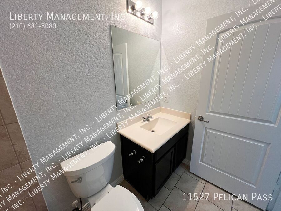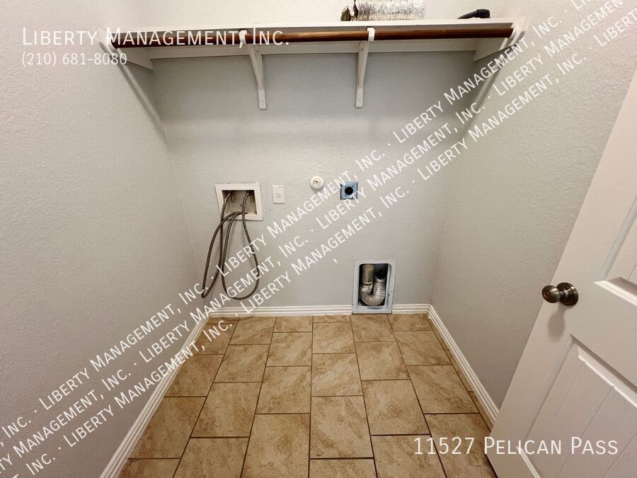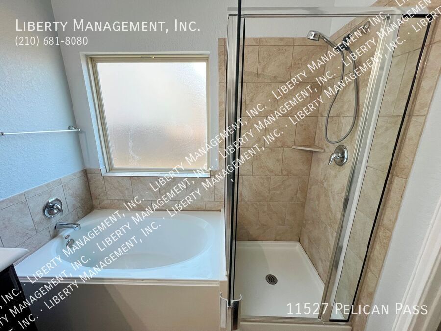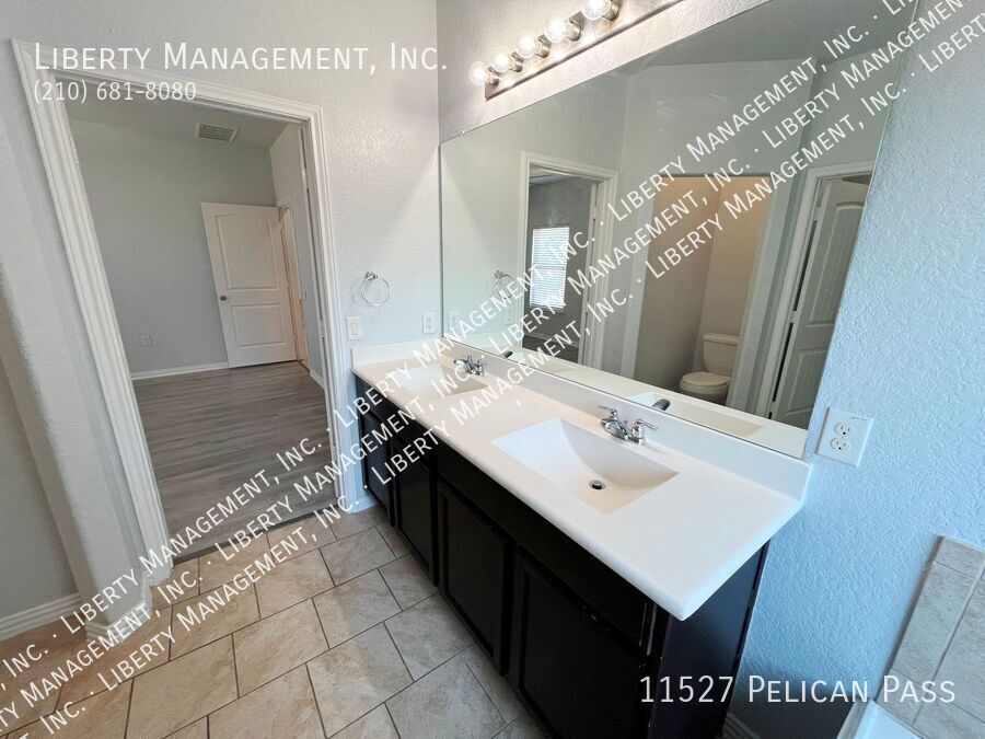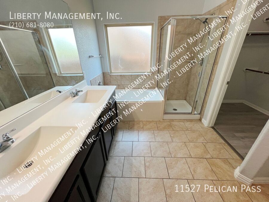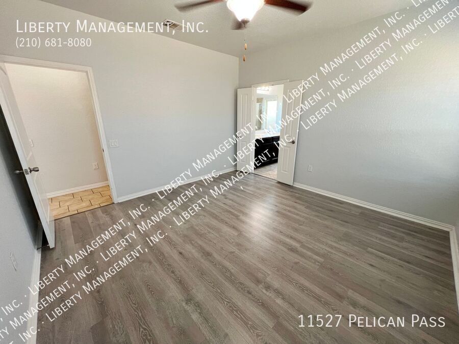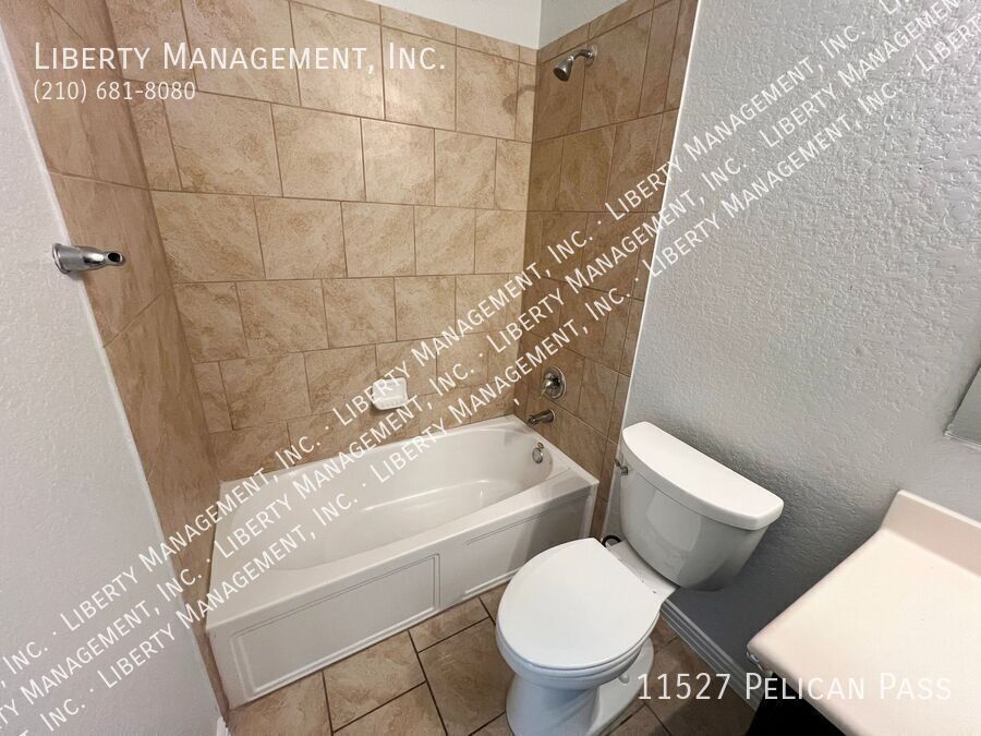 3 Bed 2 Bath 1309 sq ft Single Story Home on a Greenbelt. All Luxury Vinyl Plank and Tile floors, No Carpets! Living Room with Ceiling Fan. Kitchen with Granite counters, Breakfast Bar, Gas Stove, Microwave and Dishwasher. Primary Bedroom w/ Ceiling Fan, Walk-in Closet. Primary Bath with separate Shower/Garden Tub, Dual Sinks. 2 Car Garage, Gas Water heater. Fenced Yard with Covered Patio. Just minutes to 410, Brook City-Base, Lackland AFB! Community Pool and Playground. Elementary School in the subdivision.