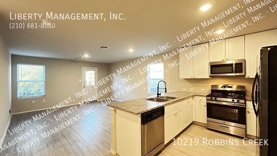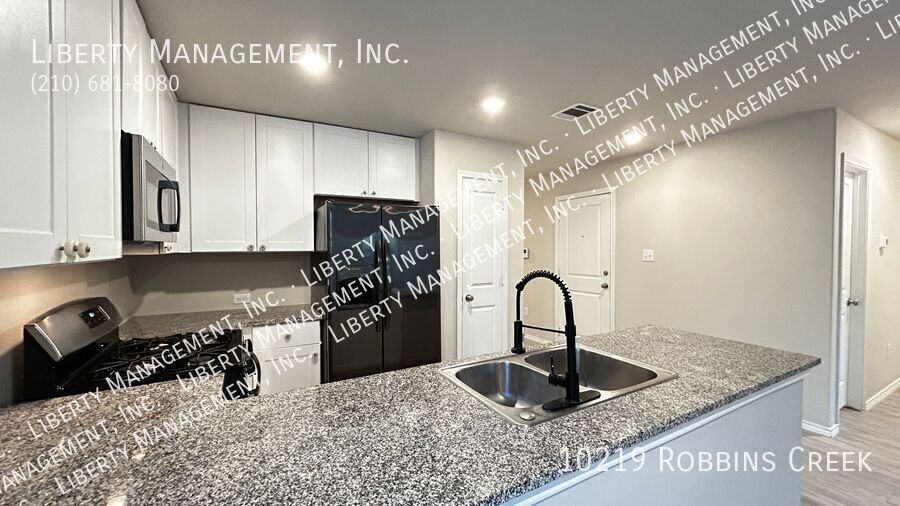 MOVE IN SPECIAL: 2 WEEKS FREE! * Adorable home with an open floorplan. Vinyl plank throughout main living areas and carpet only in bedrooms. Kitchen features granite countertops, stainless steel appliances and a refrigerator! Outside you will find privacy as this home is situated on a greenbelt lot with no backyard neighbors. Home is conveniently located off of Marbach Rd and easy access to loop 1604. Lackland AFB within 20 minutes, less than 10 minutes to HWY 151 and Sea World.