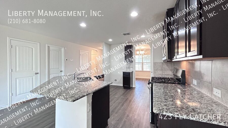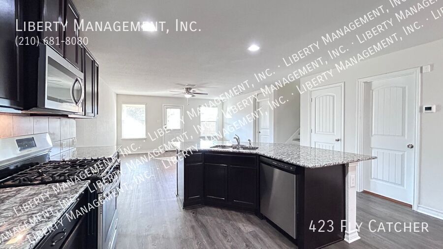 MOVE IN SPECIAL: 1 MONTH FREE!* 5 bedrooms/3.5 baths, featuring 2678 sq ft living space & oversized game room. Vinyl plank downstairs except in the primary bedroom. Its huge kitchen comes w/ an island, plenty of storage space, & stainless-steel appliances. This incredible gem has spacious Primary Bedroom downstairs with a double vanity, separate tub, and shower. Upstairs you will find 4 large sized secondary bedrooms & 2 full baths. This home's backyard is ready to entertain w/ its good sized covered patio & fenced yard. Minutes to Lackland/1604/90.