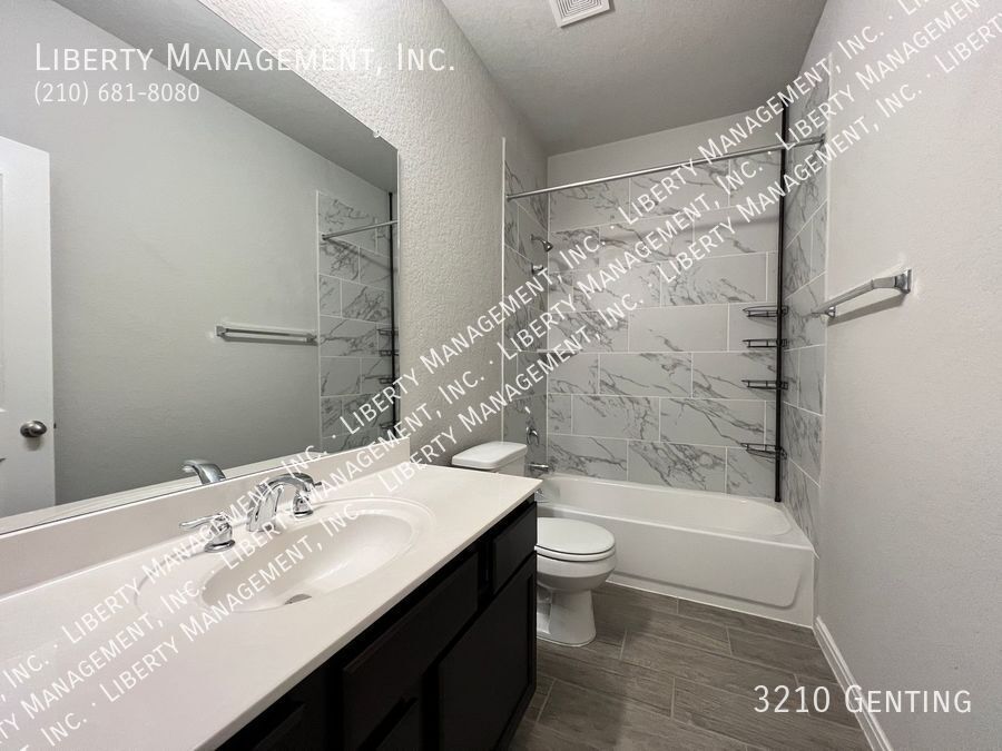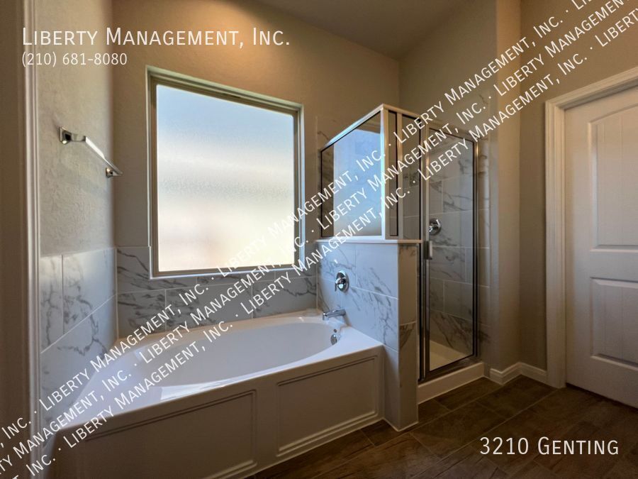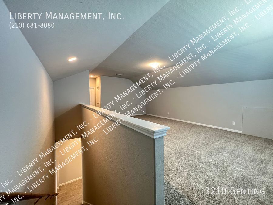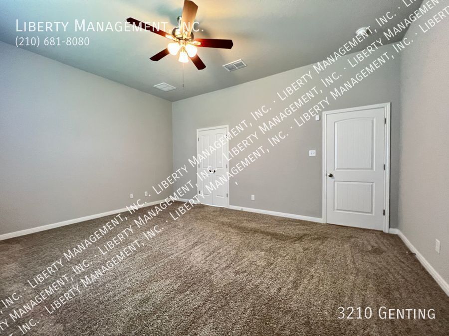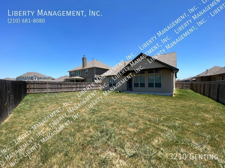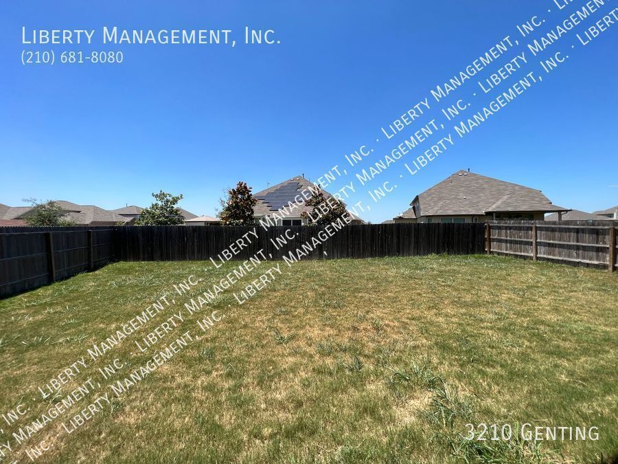 MOVE IN SPECIAL: 1 MONTH FREE!* Masterful design and modern touches are uniquely embodied in this 2-story 2740 sq ft gem with 4 spacious bedrooms, 3 full bathrooms, and a massive backyard perfect for entertaining. This home boasts 13ft ceilings in the living room, neutral paint, ceramic tiles in bathrooms and main areas except bathrooms, Ceiling fans, and blinds throughout. Its gourmet style kitchen overlooking the living room comes with corner walk in pantry, stainless steel appliances, gas cooking, vent hood, granite counters, mosaic backsplash tiles, canned recessed lights, and huge island bar with built in seating. The downstairs primary bedroom will not disappoint with its en suite featuring oversized tub, walk in shower, dual vanities, and walk in closet. Upstairs game room and bedroom with full bathroom are perfect for your guests. It's bright living room with walls of windows flows through the expansive rear backyard with privacy fences. Conveniently located halfway between Austin and San Antonio, this home has quick access to I-35 and easy drive from other major Texas cities. The city has several top tourist attractions bustling with visitors looking to escape the city life. Minutes to shopping and restaurants. Less than 5 miles to Schlitterbahn Water Park and Panther Canyon Nature Trail!