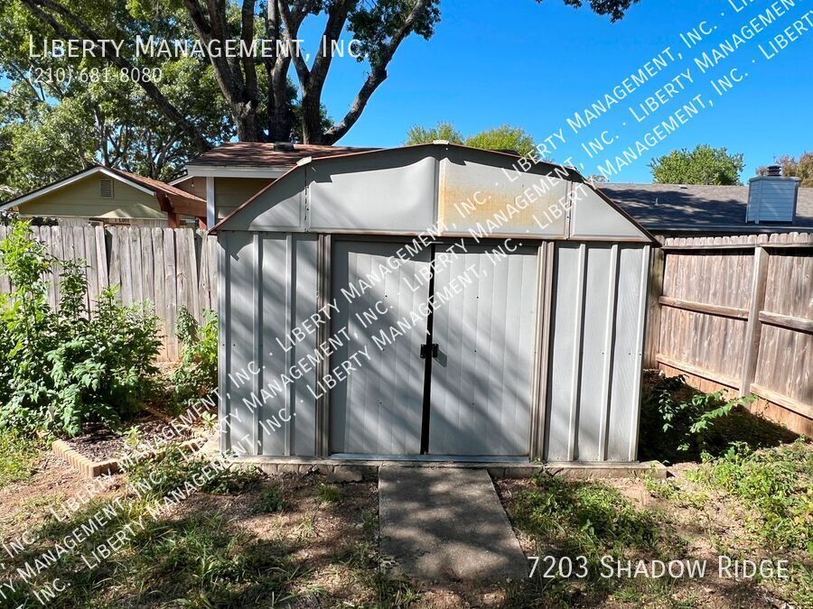 3 Bed 2.5 Bath 1629 Sq Ft Home on Corner Lot in Northwest Crossing. Large Living Room with Gas Fireplace. Kitchen with solid counters, Gas Stove, Dishwasher. Utility Area with Electric and Gas dryer connections. Large Primary Bedroom with Sitting Area, Ceiling Fan, Walk-in Closet. Primary Bath with Walk-in Shower, Dual Sinks. Large Fenced Yard with Patio, Mature Trees, Shed. 2 Car Garage with Opener. Community Pool, Tennis Courts, Playground. Great Northside schools. Near UTSA, 151, 1604, Shopping.