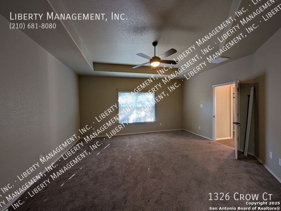 You will be super delighted with this gorgeous home in a gated neighborhood! The home has a true open space concept with tray ceilings throughout the home that add architectural charm and an open living room dining combo with granite countertops in the kitchen. Primary suite has a beautiful large walk in shower with tile backsplash as well as a separate garden tub and HUGE walk in closet. This beauty sits in the gated subdivision of Dove Creek and features four sides brick. This lovely home is also less than 20 minutes to Lackland AFB. There is also lots of nearby shopping and eateries within 5 minutes to Potranco and loop 1604.