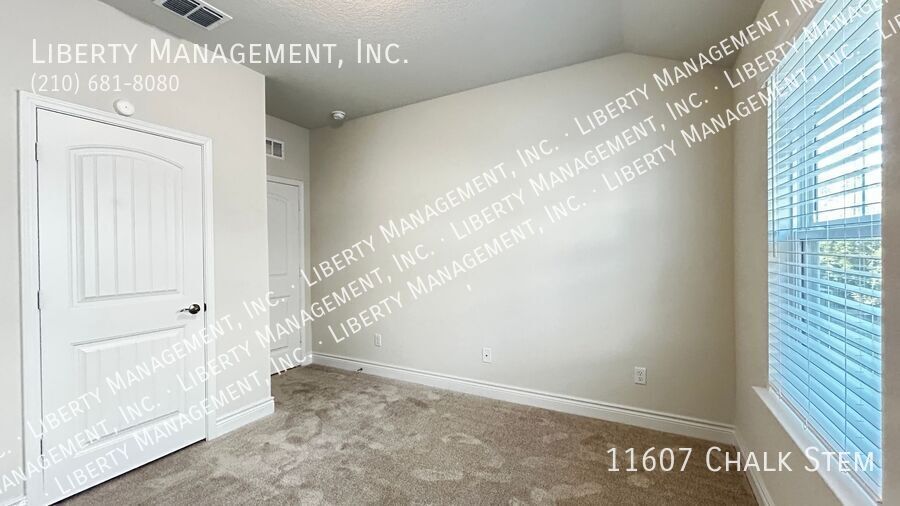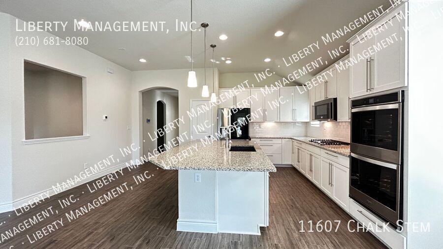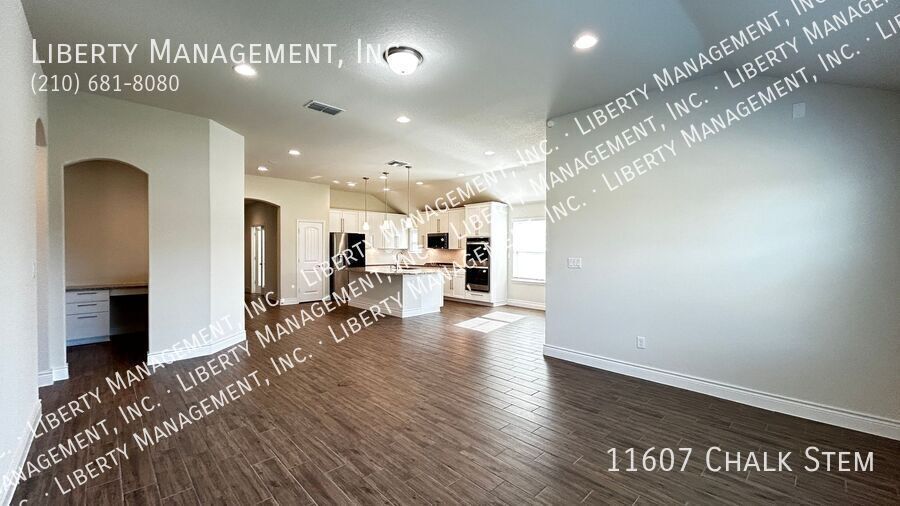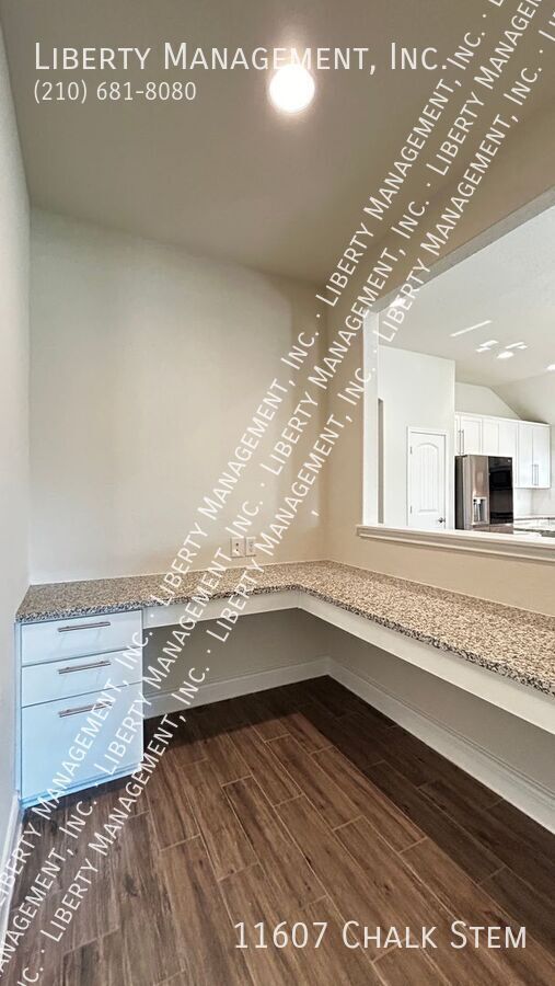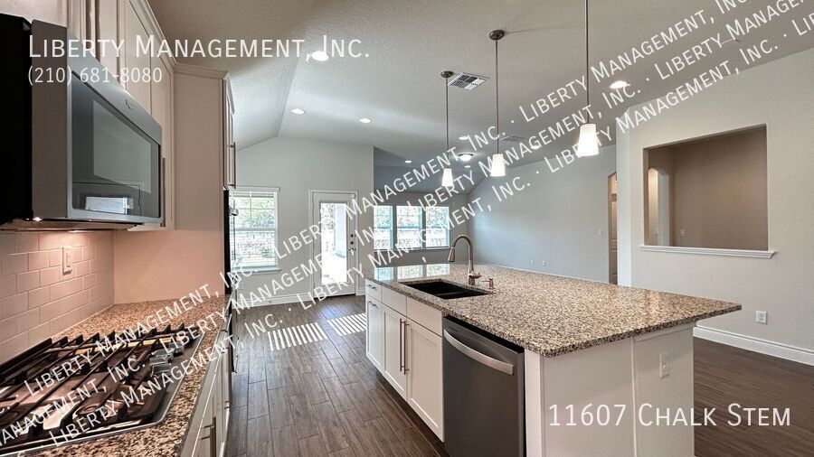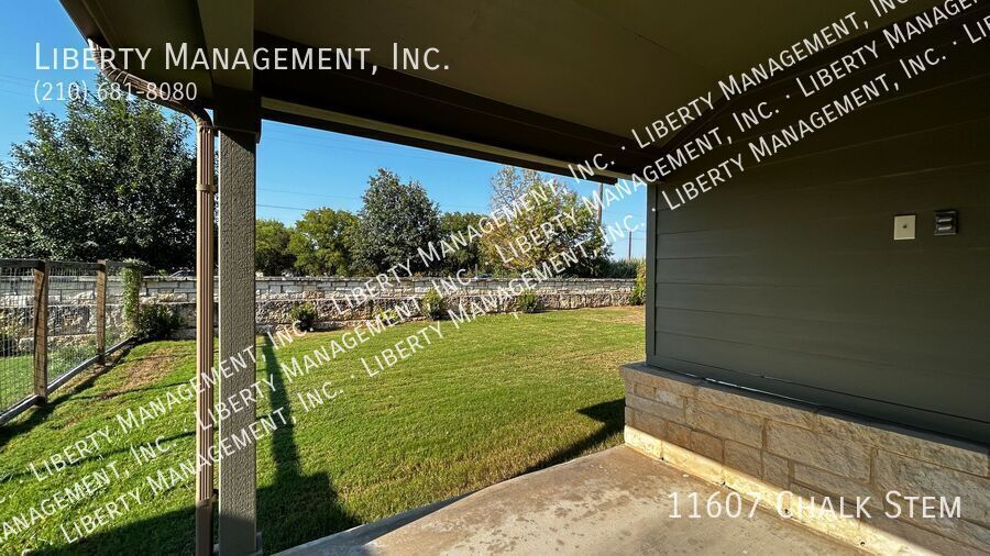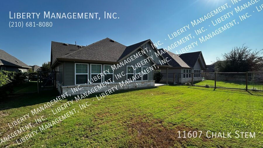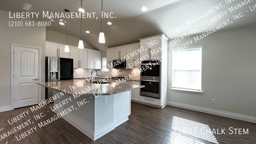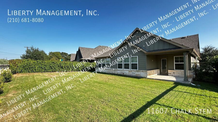 Beautiful 3 Bed 2 Bath 2142 sq ft Single Story home. 10 ft Ceilings, Neutral colors. Wood-like tile in the high-traffic areas. Bonus room that can be used as a formal office, dining, or game room. Open Kitchen with huge granite island and breakfast bar. Stainless appliances include Fridge, Double Oven, Gas Stove, Microwave, and Dishwasher. Additional built-in desk/study area off the Living Room. Primary Bedroom w/Large Walk-in Closet. Primary Bath with Dual Sinks and an oversized walk-in Spa Shower. Covered Patio, fenced backyard. Mud Bench at Garage entry. 2 Car Garage w/Opener. Newer housing community with pools, fishing pond, numerous pocket parks, and walking trails. About 2 minutes to Randolph AFB. Close to The Forum shopping center and convenient to both 1604 and IH-10.