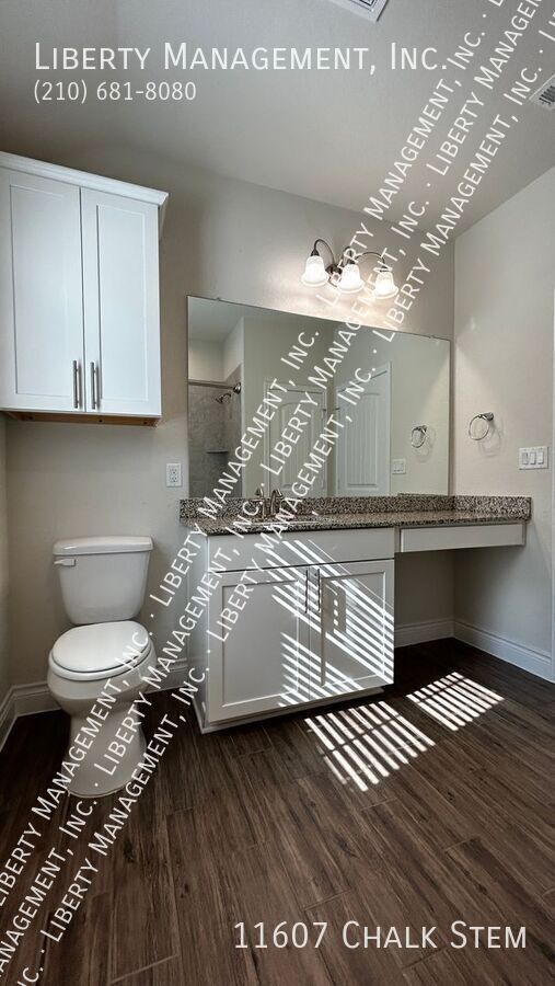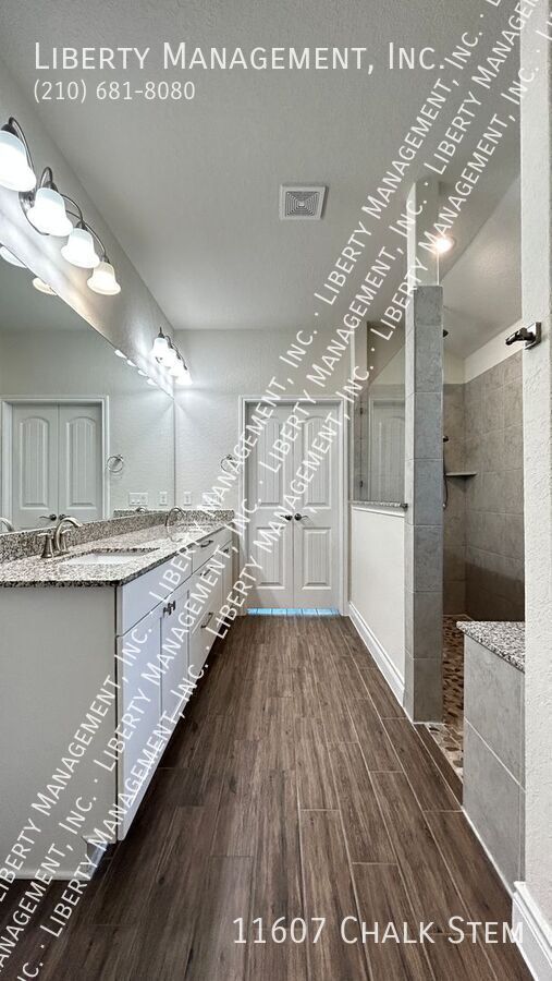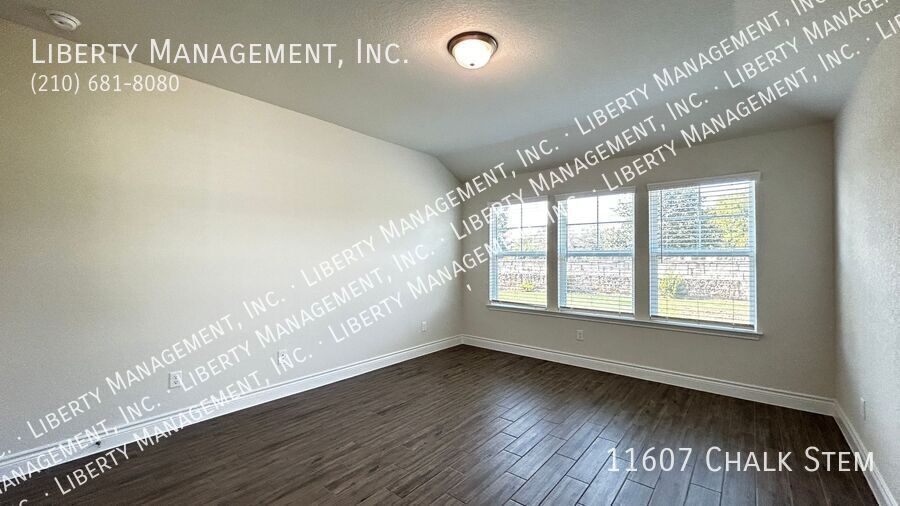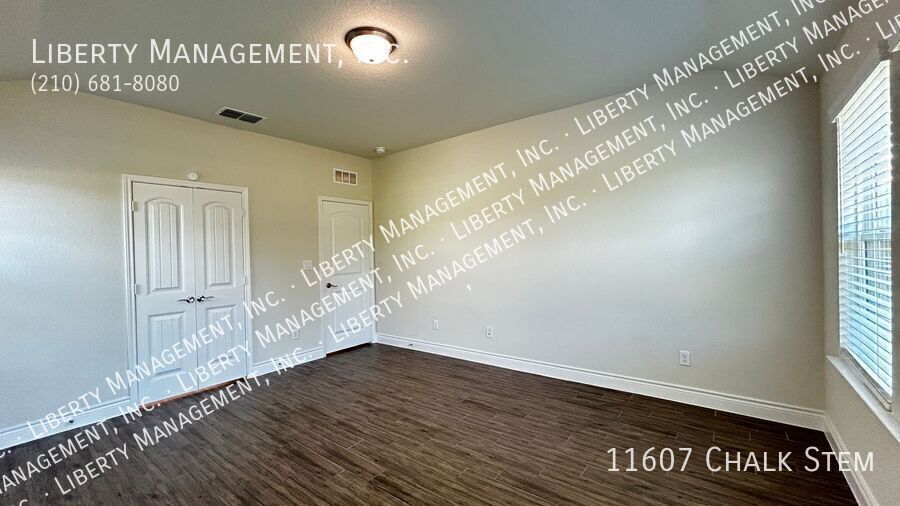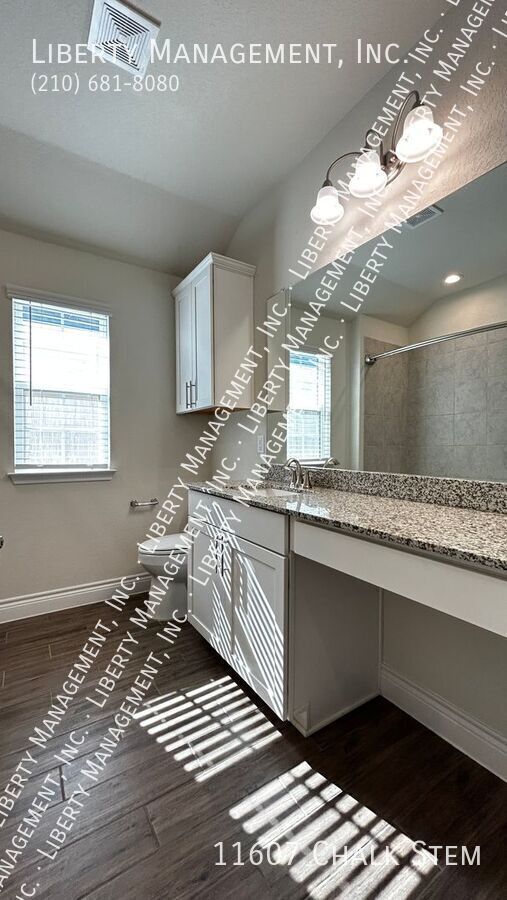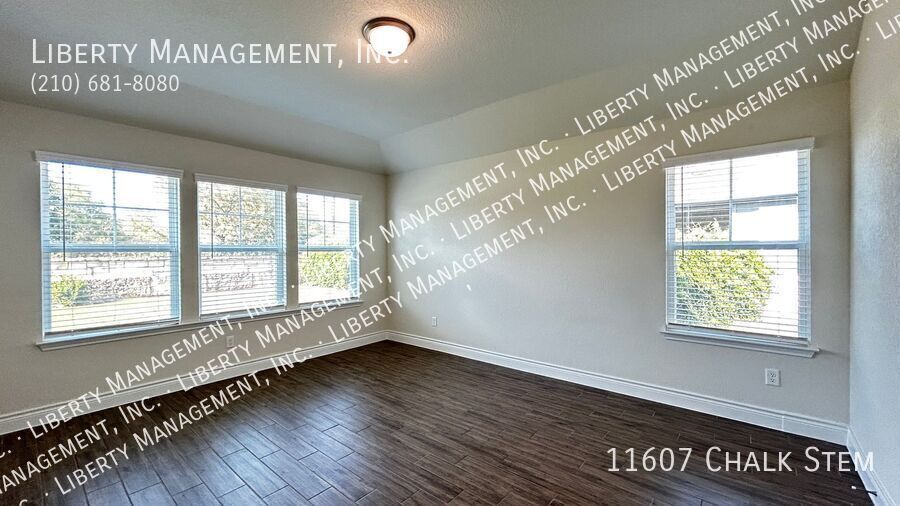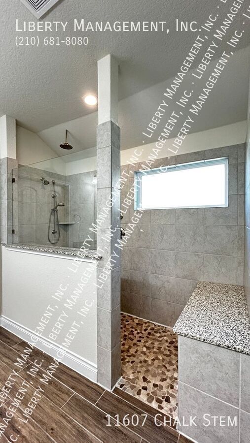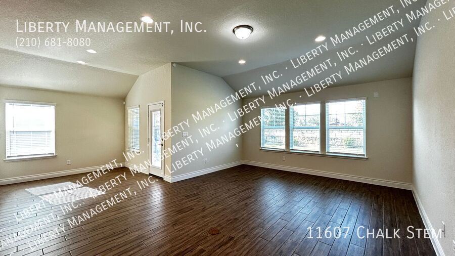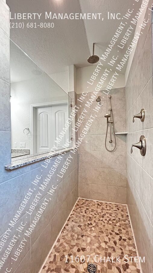 Beautiful 3 Bed 2 Bath 2142 sq ft Single Story home. 10 ft Ceilings, Neutral colors. Wood-like tile in the high-traffic areas. Bonus room that can be used as a formal office, dining, or game room. Open Kitchen with huge granite island and breakfast bar. Stainless appliances include Fridge, Double Oven, Gas Stove, Microwave, and Dishwasher. Additional built-in desk/study area off the Living Room. Primary Bedroom w/Large Walk-in Closet. Primary Bath with Dual Sinks and an oversized walk-in Spa Shower. Covered Patio, fenced backyard. Mud Bench at Garage entry. 2 Car Garage w/Opener. Newer housing community with pools, fishing pond, numerous pocket parks, and walking trails. About 2 minutes to Randolph AFB. Close to The Forum shopping center and convenient to both 1604 and IH-10.
